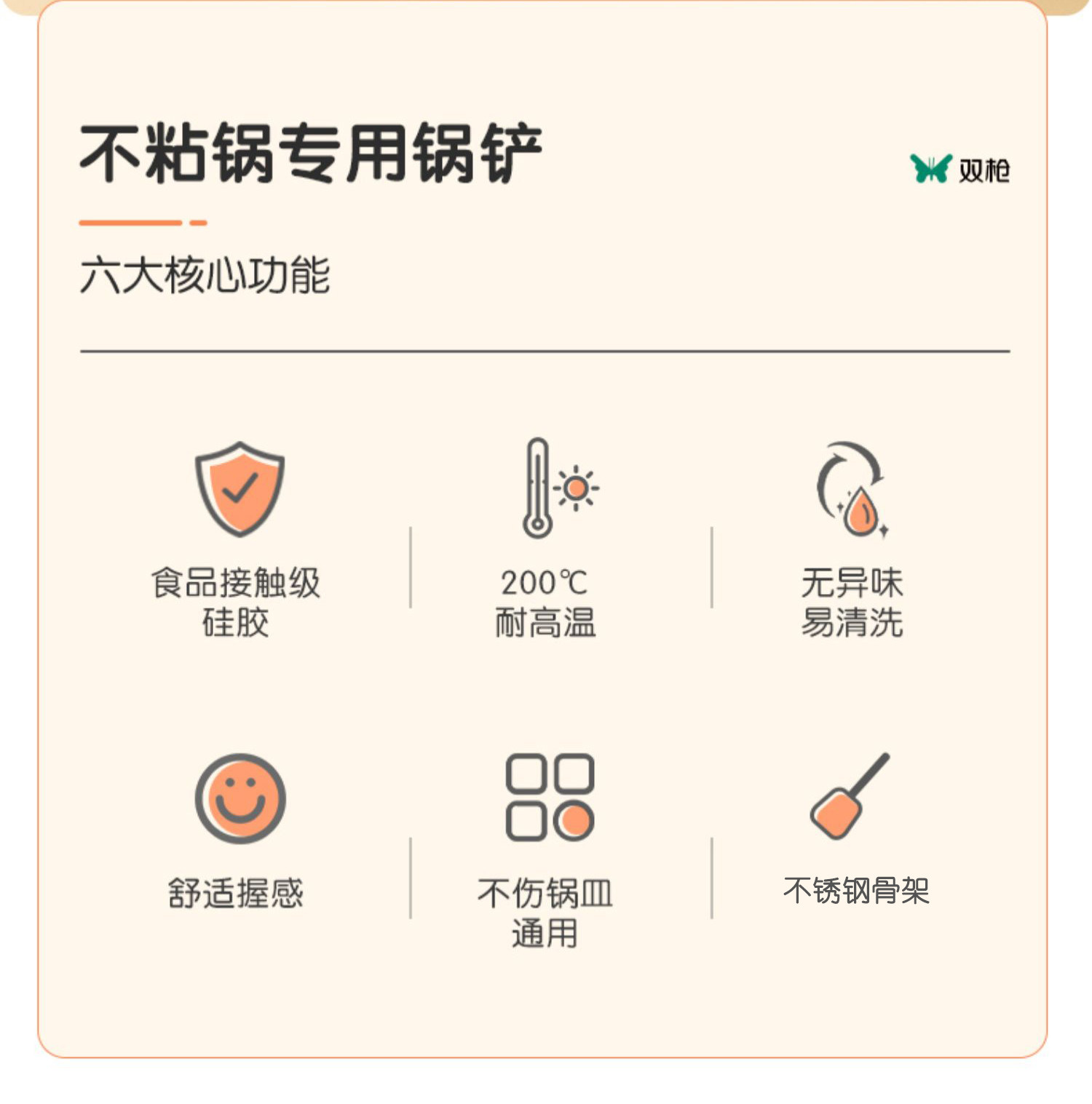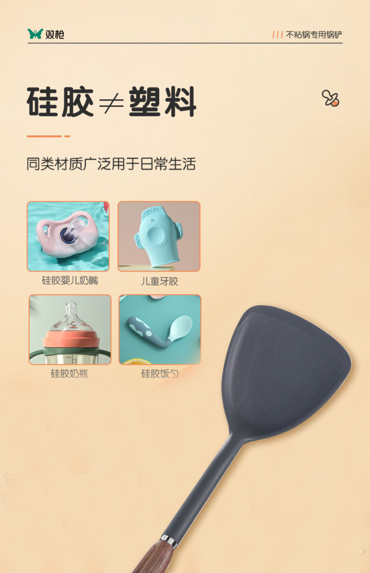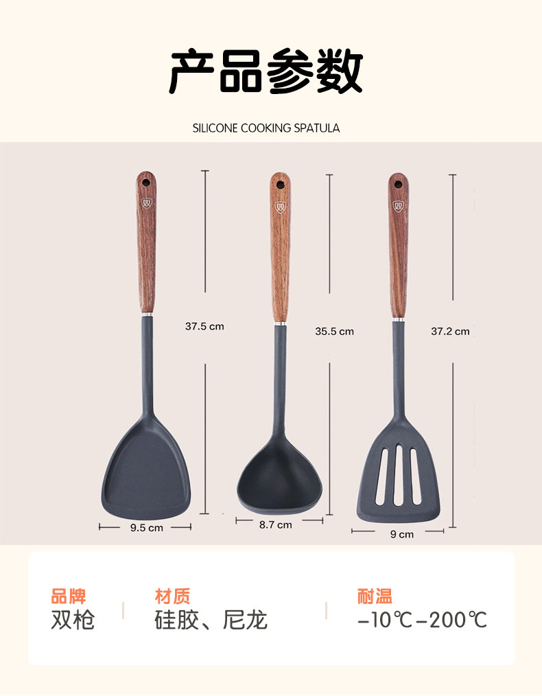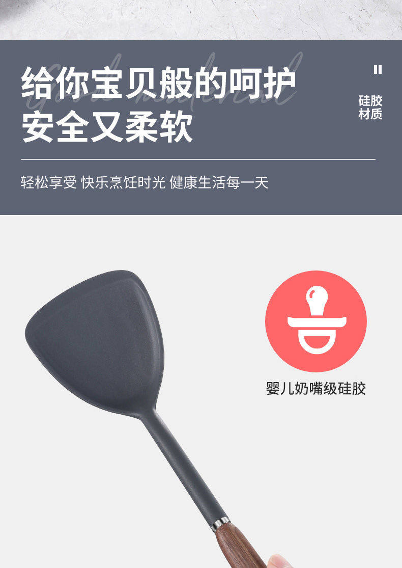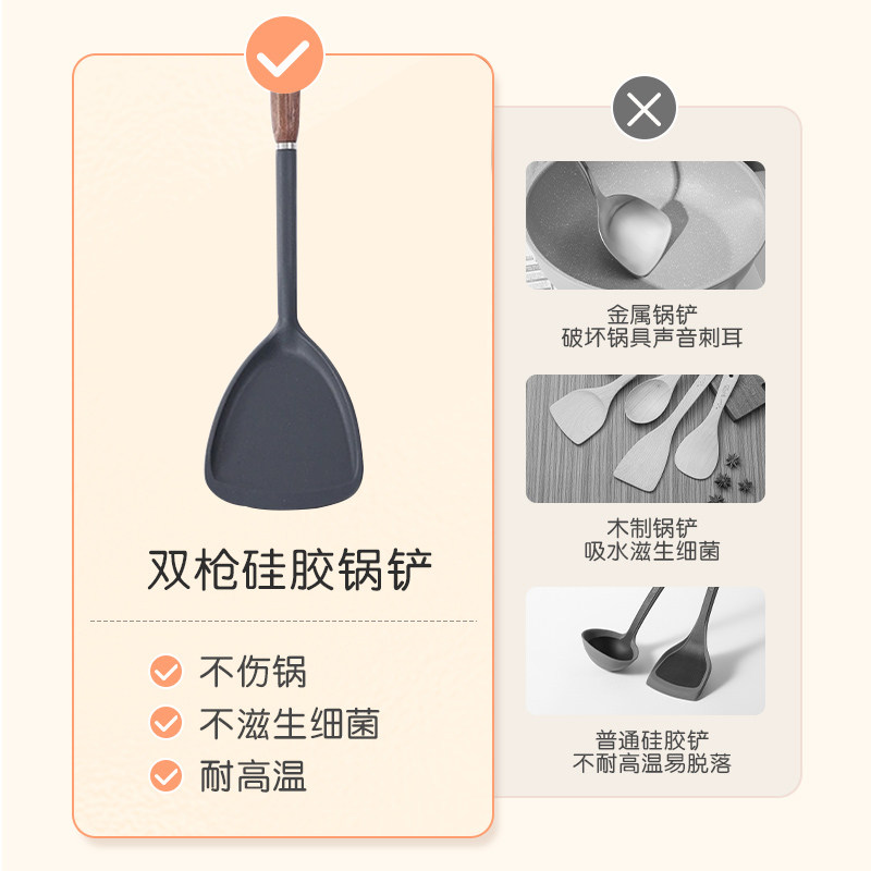 双枪硅胶锅铲不粘锅专用耐高温炒菜铲子家用锅铲煎铲汤勺厨具套装