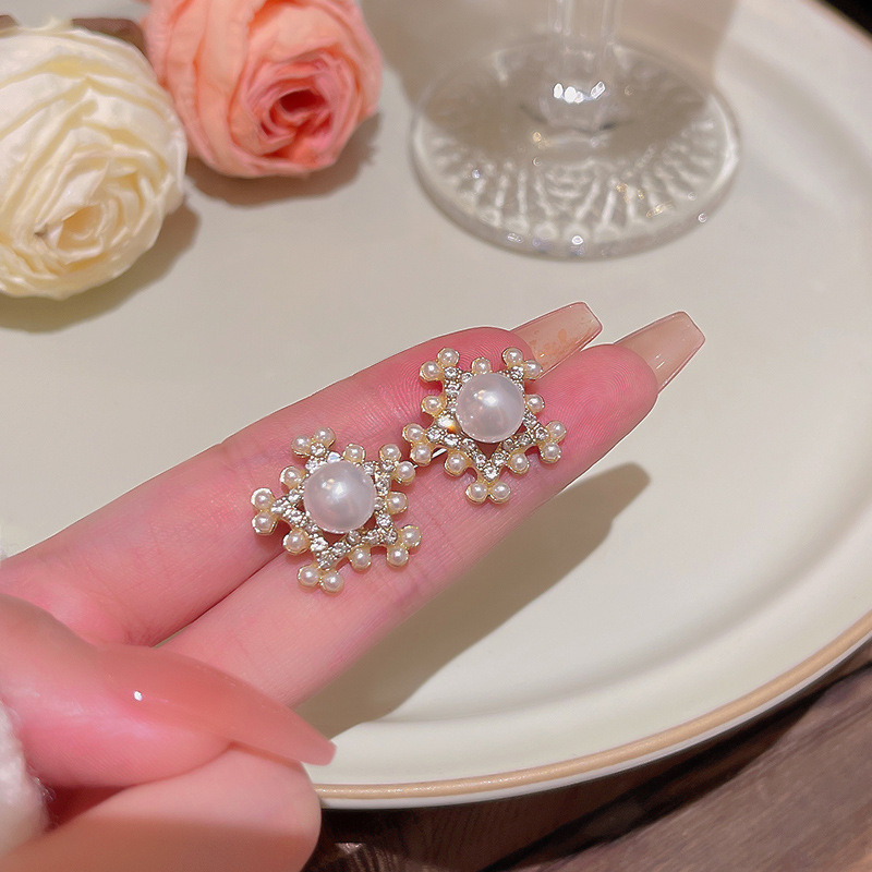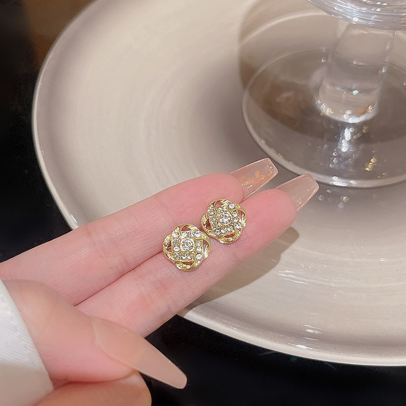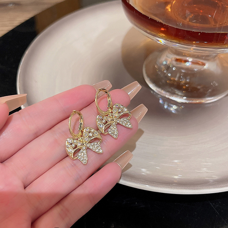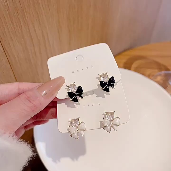 S925银针韩国新款超仙气质栀子花耳钉耳饰品轻奢小众蝴蝶结耳环女