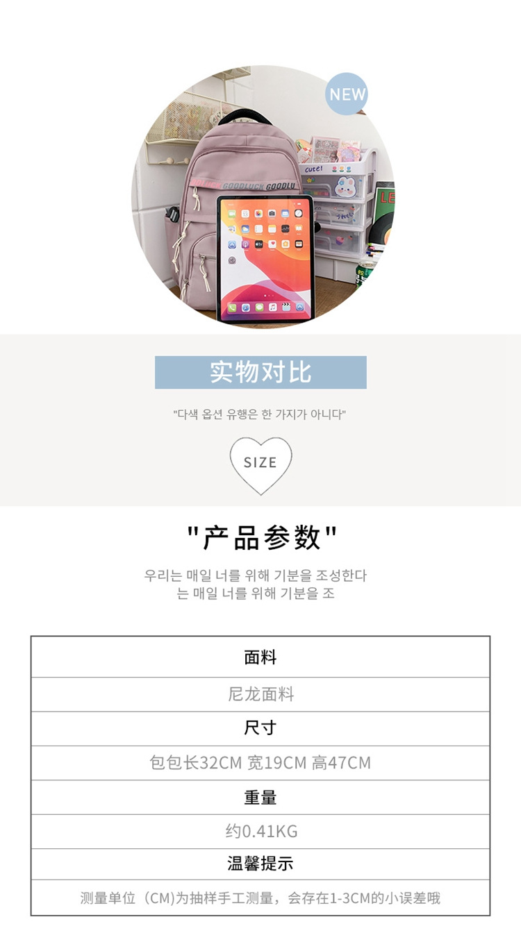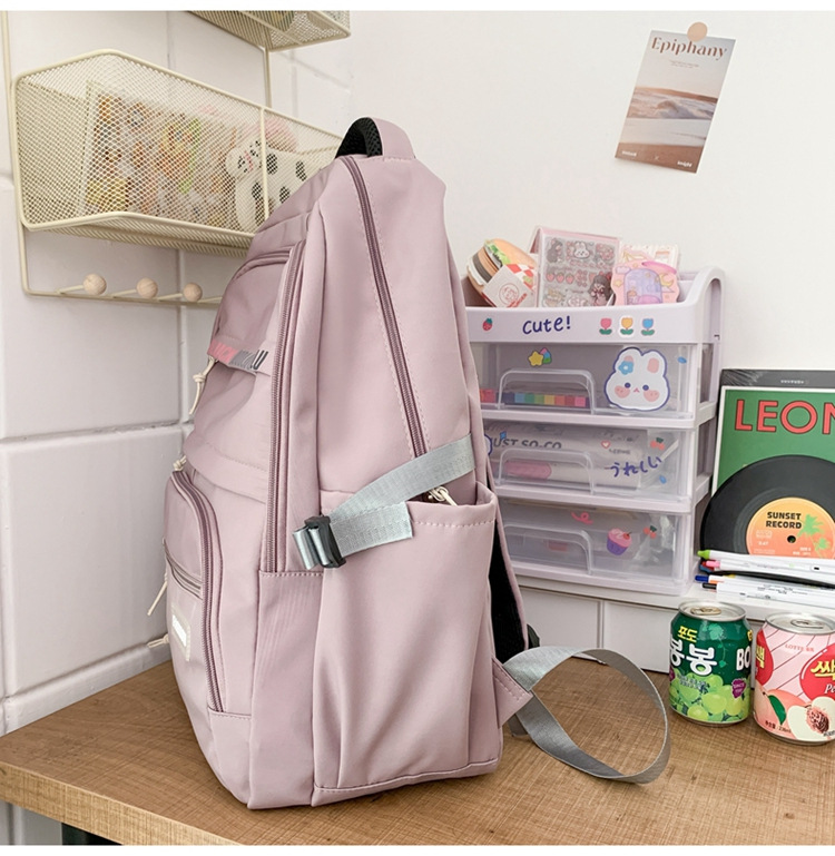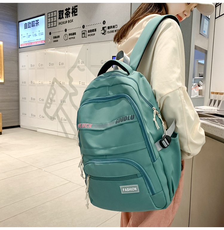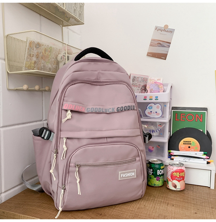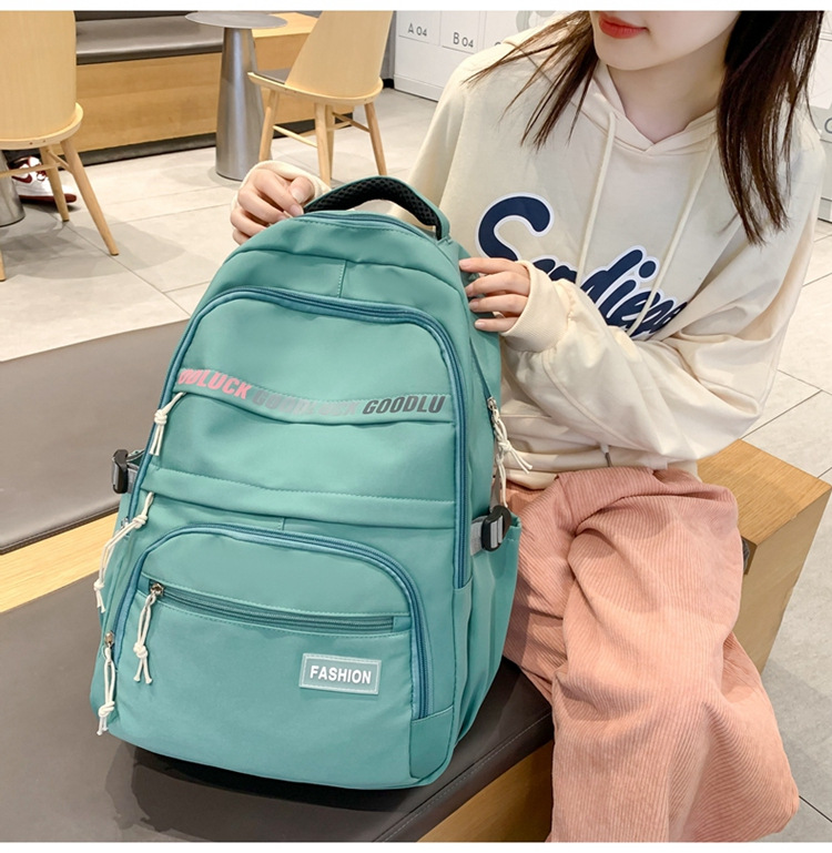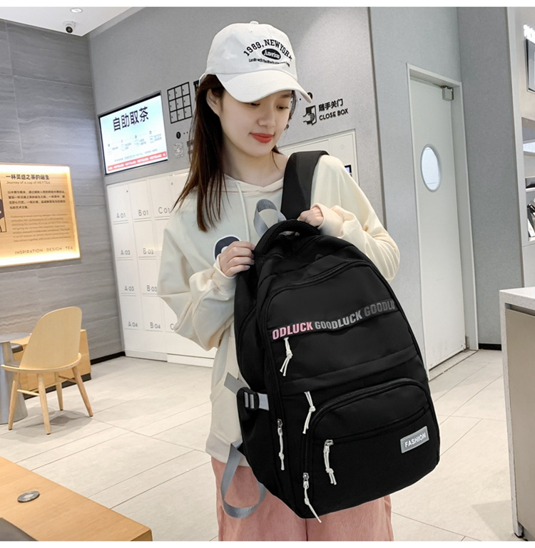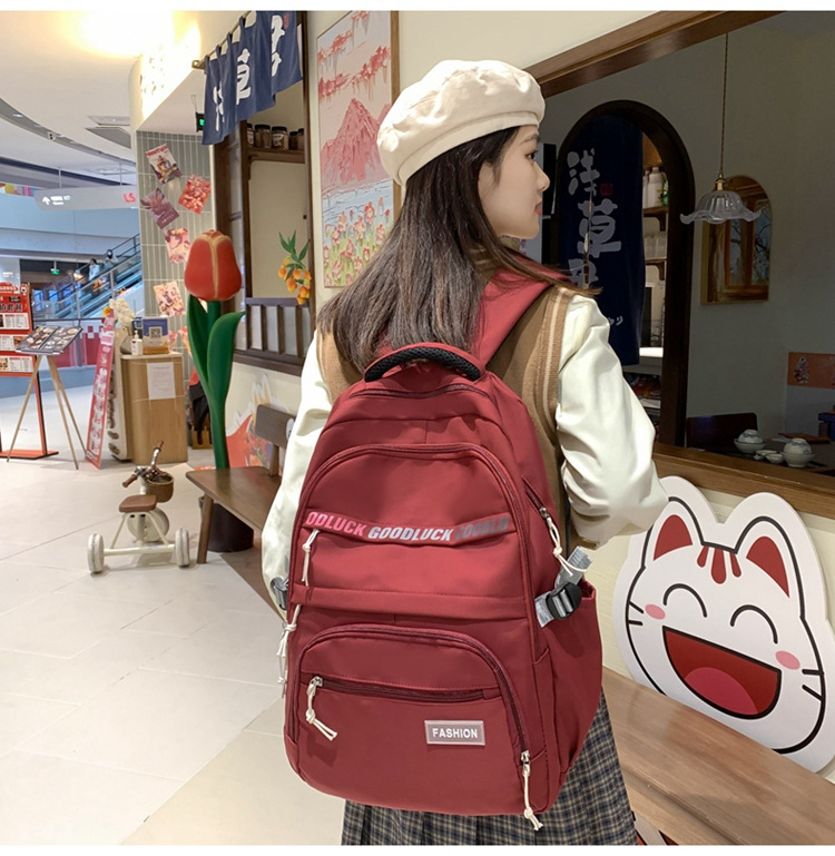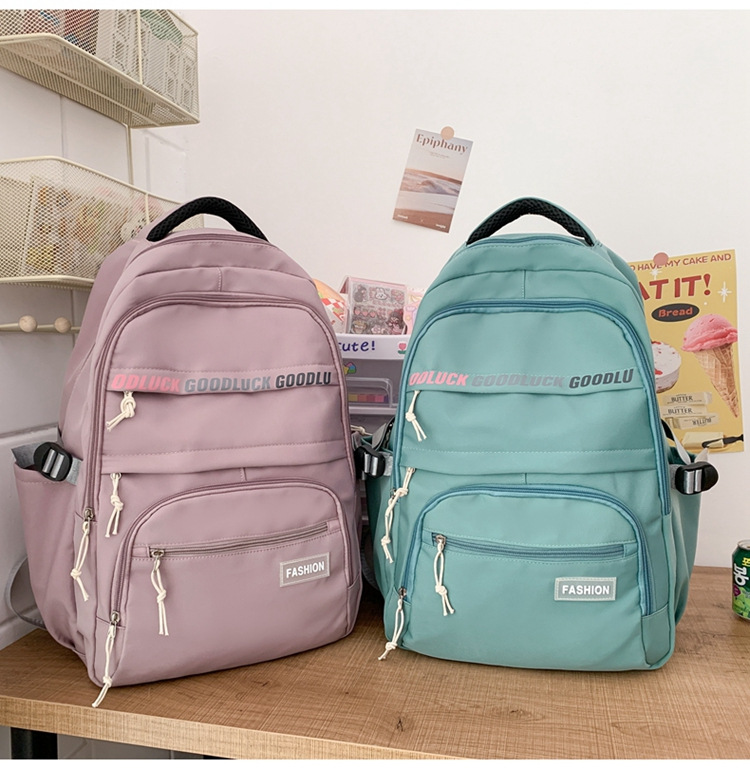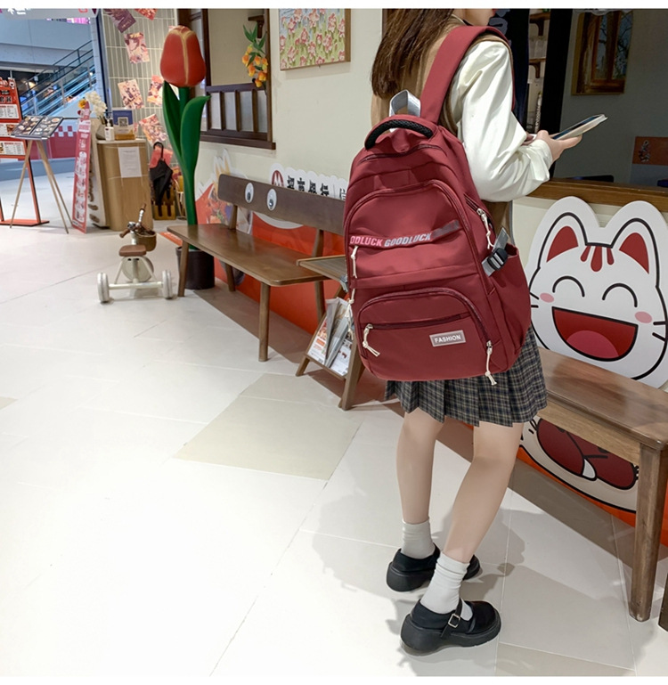 书包女中学生日系尼龙纯色双肩包少女款大容量轻便简约高颜值背包
