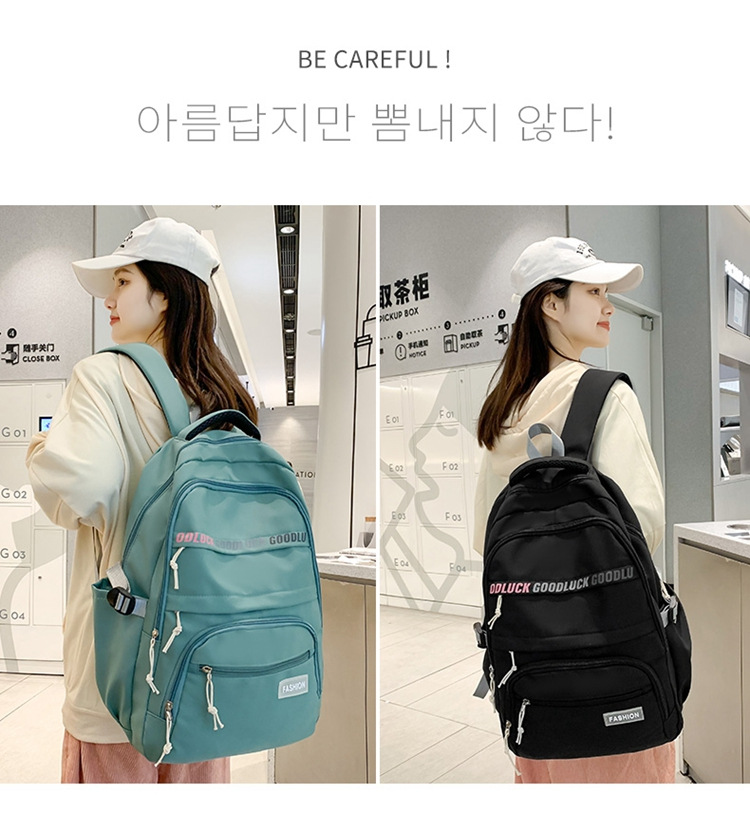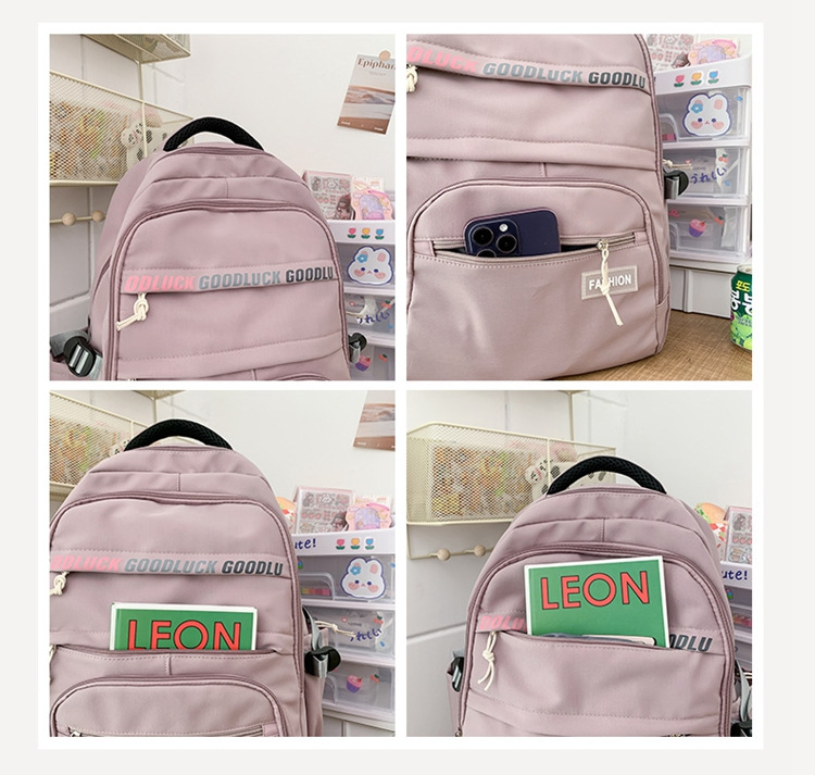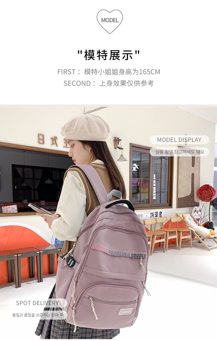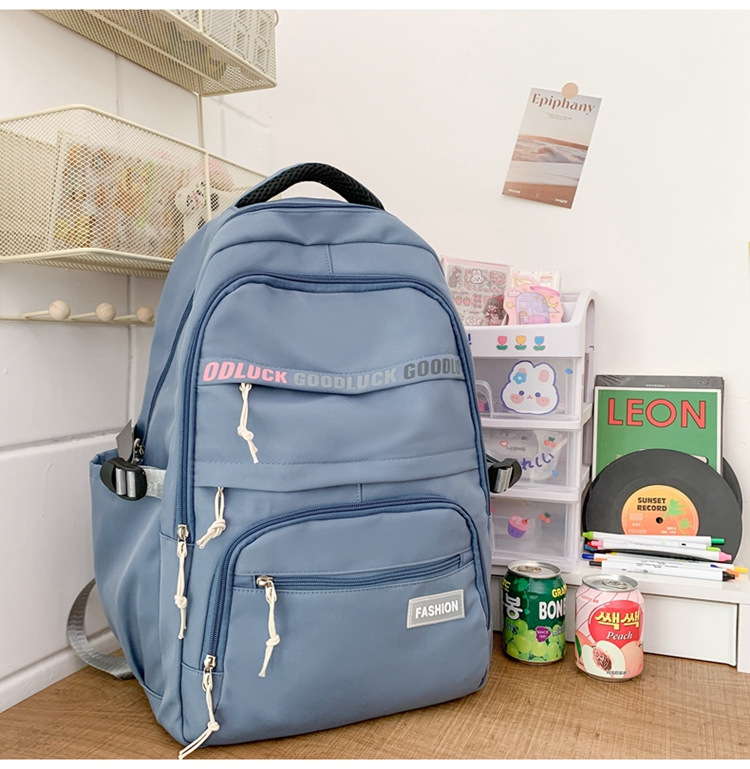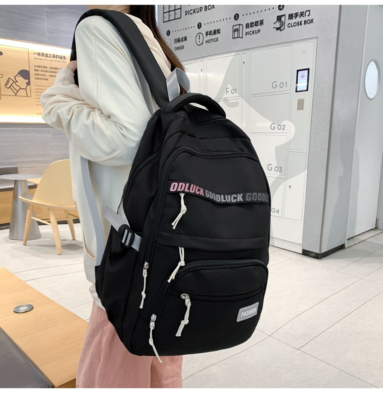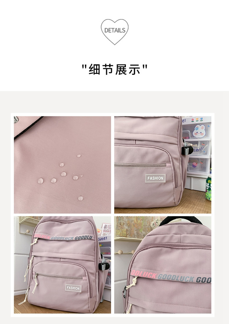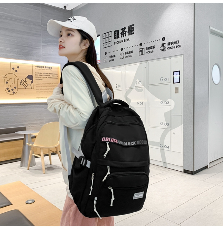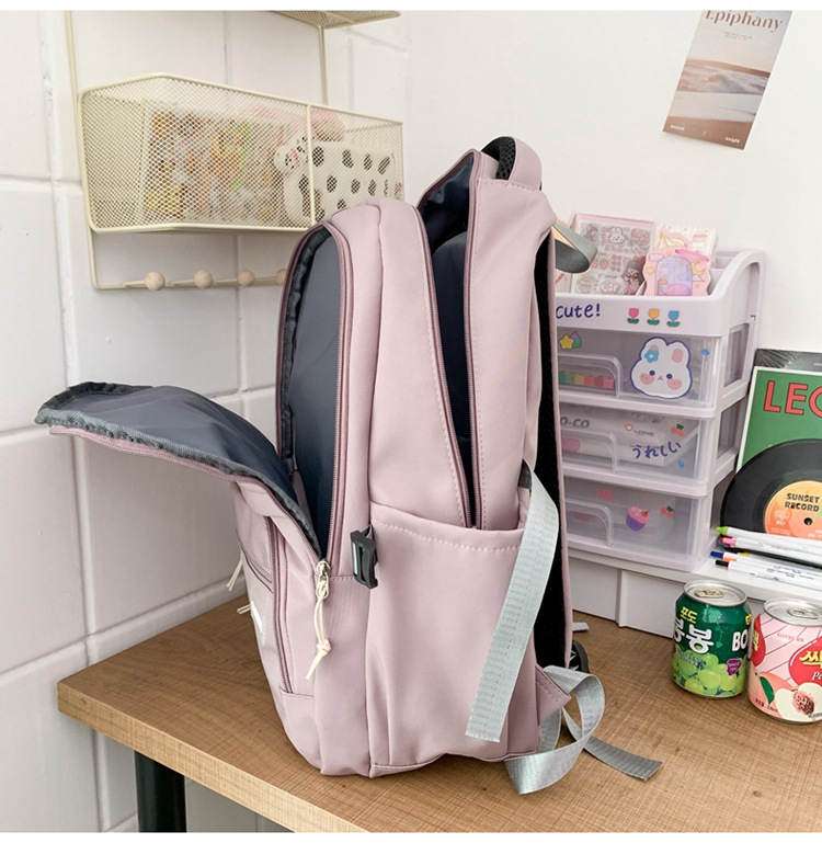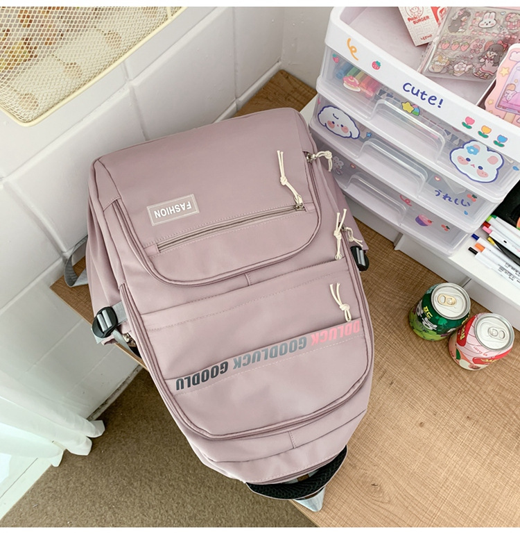 书包女中学生日系尼龙纯色双肩包少女款大容量轻便简约高颜值背包