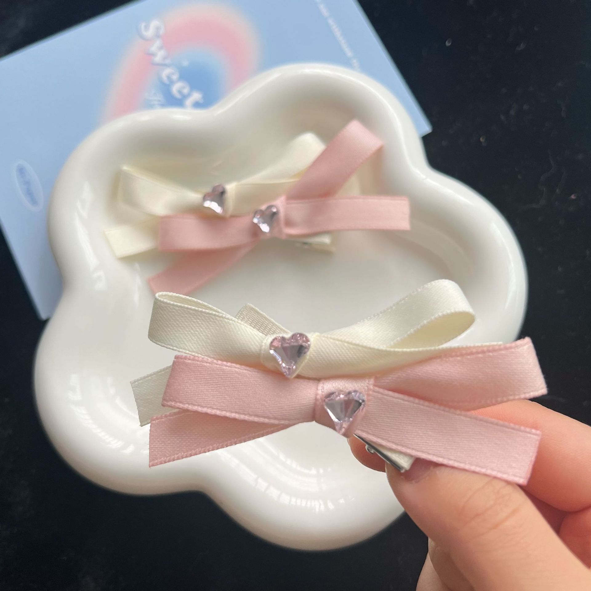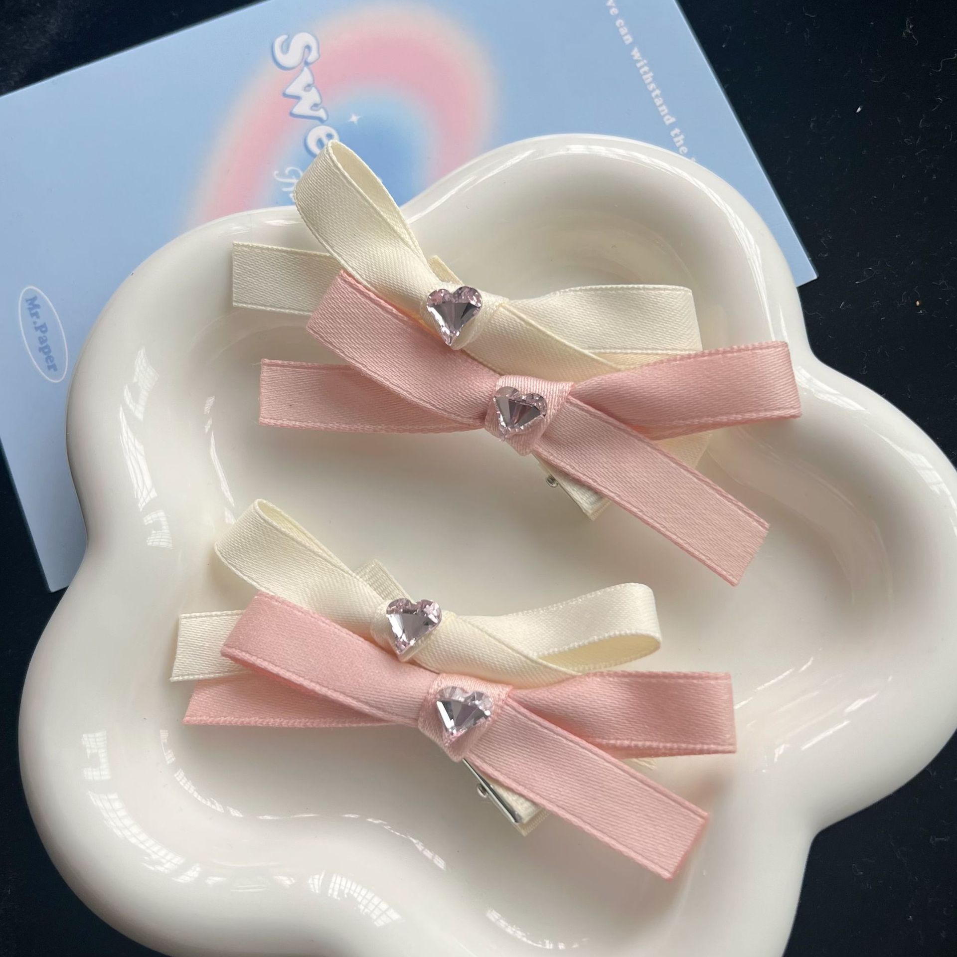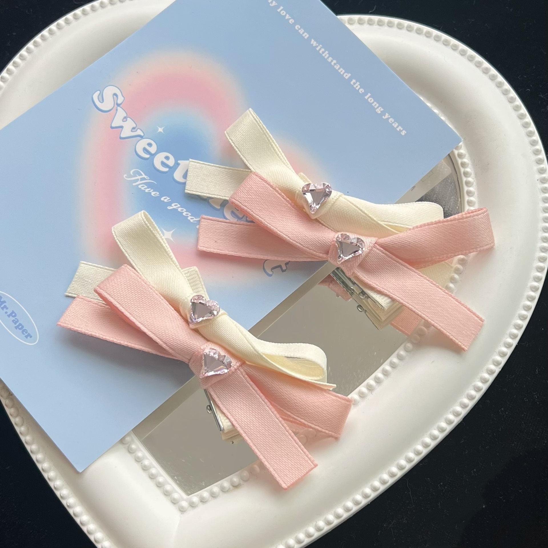 高级感气质爱心双层蝴蝶结发夹韩版东大门甜美简约刘海边夹洋气发