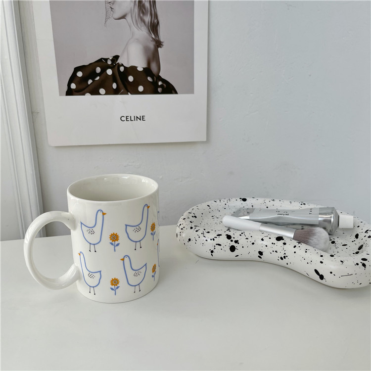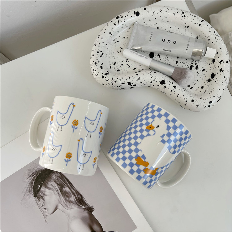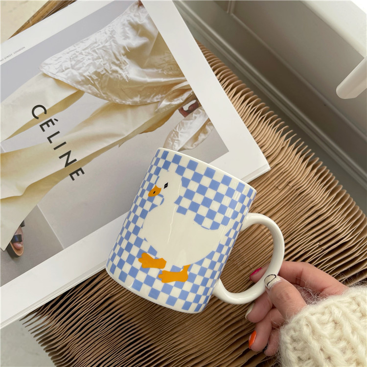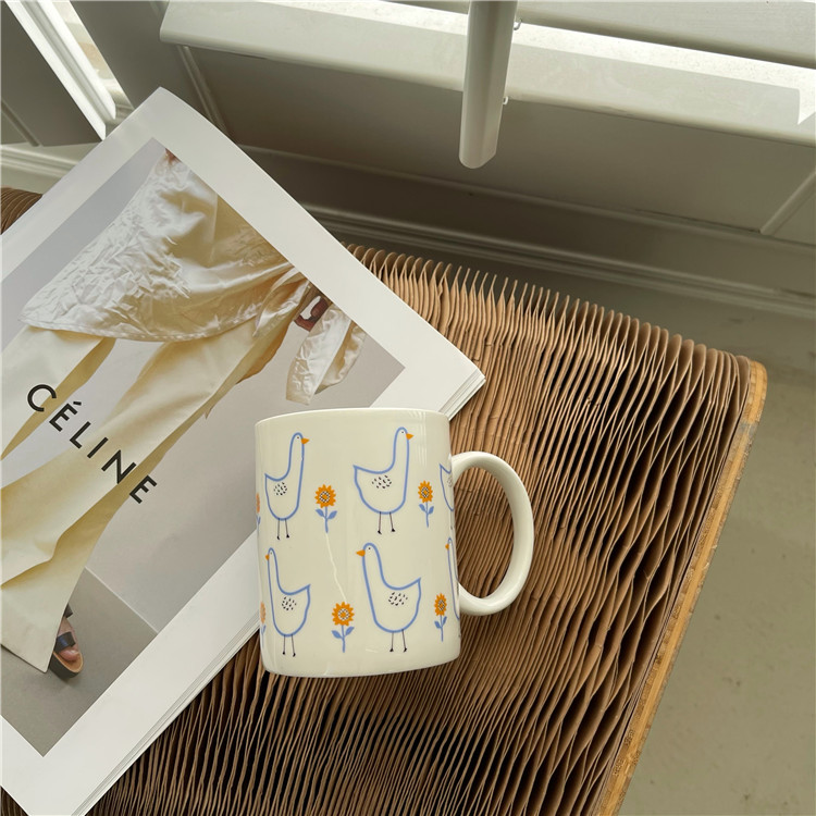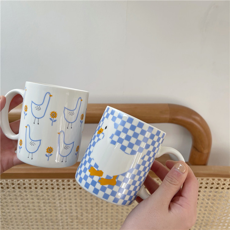 ins风可爱童趣卡通加油鸭陶瓷杯大容量家用牛奶杯早餐杯情侣水杯