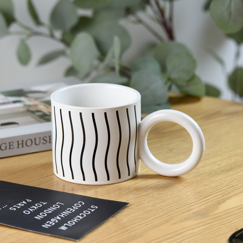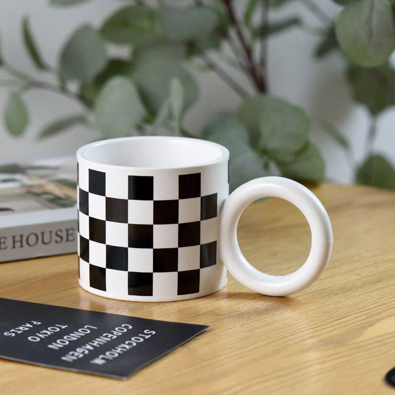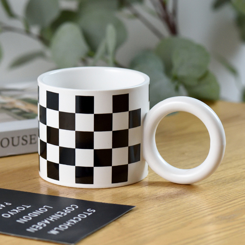 创意棋盘格陶瓷杯礼品杯个性小众陶瓷马克杯高颜值情侣水杯咖啡杯