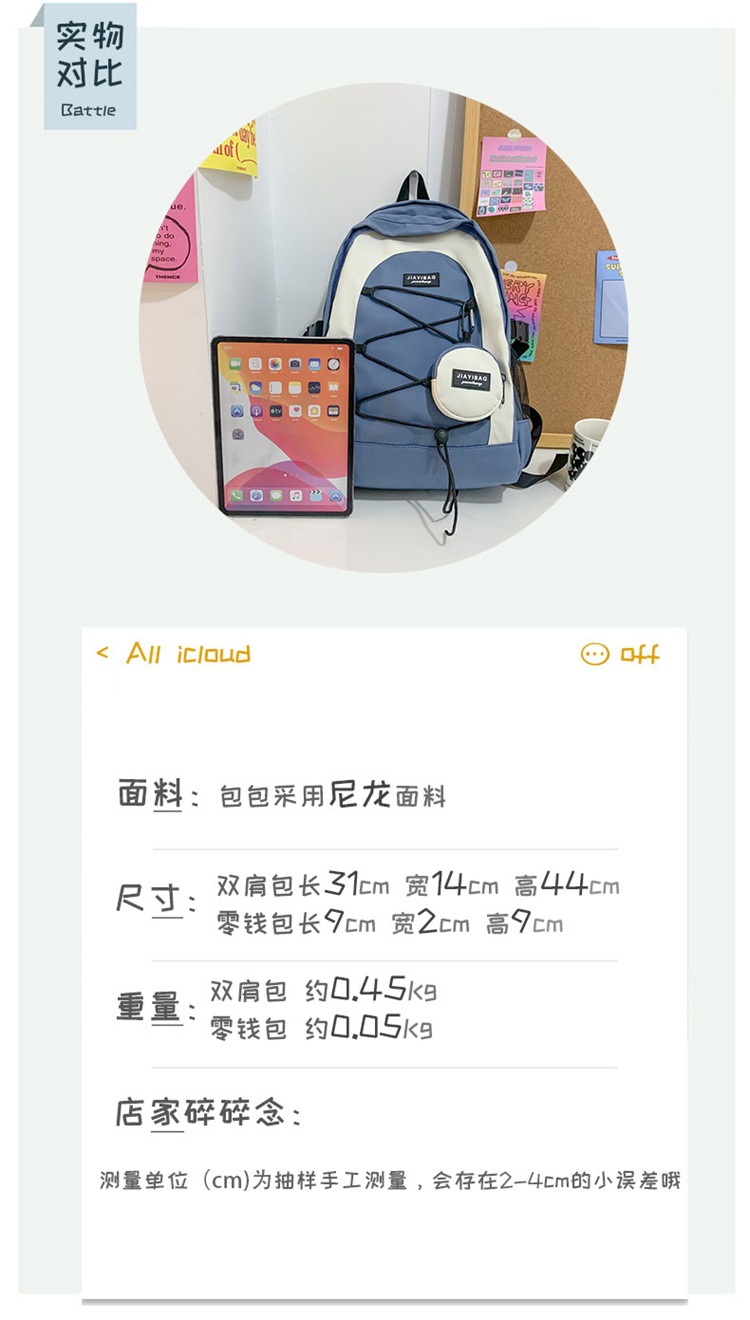 女生包纯色可爱小清新女士双肩包时尚旅行包学生书包轻便电脑包