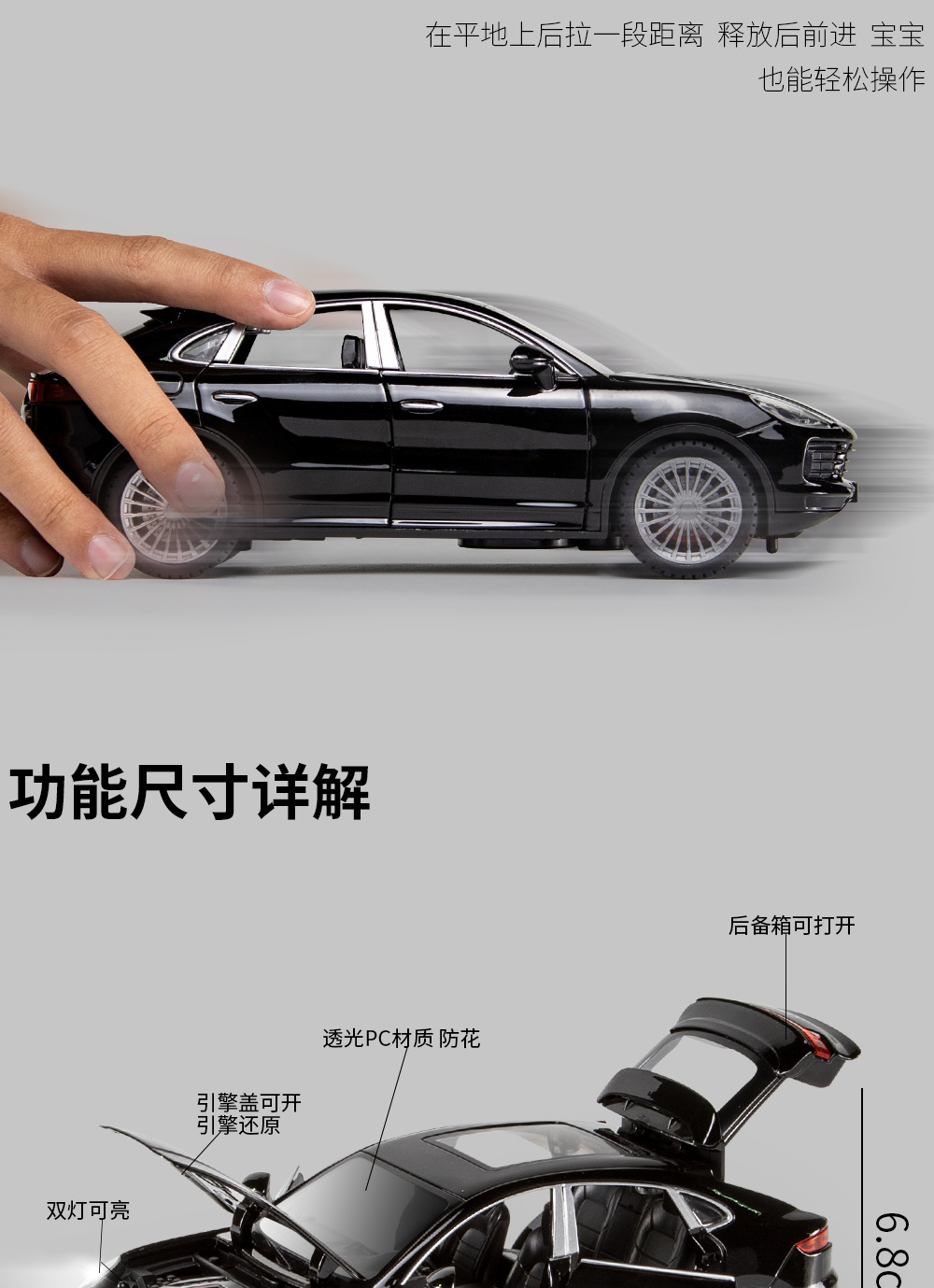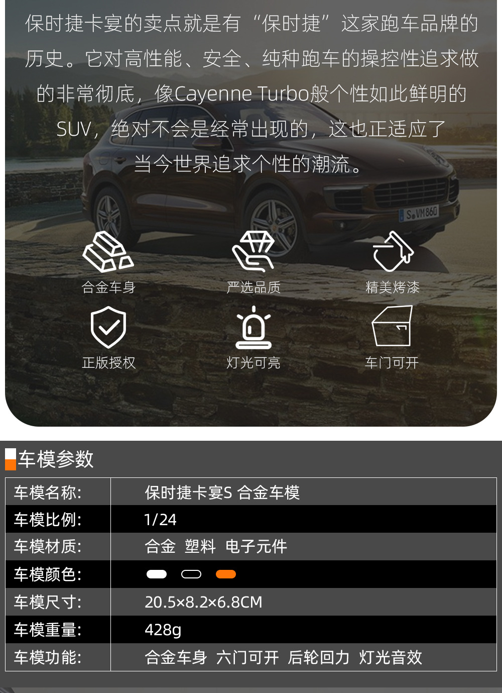 1:24保时捷卡宴合金汽车模型玩具仿真带声光多开门回力礼品