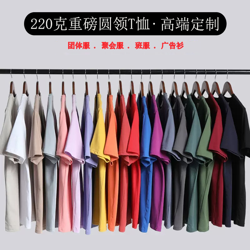 220克重磅圆领纯棉短袖定制logo班服聚会团体工作服广告文化衫T恤
