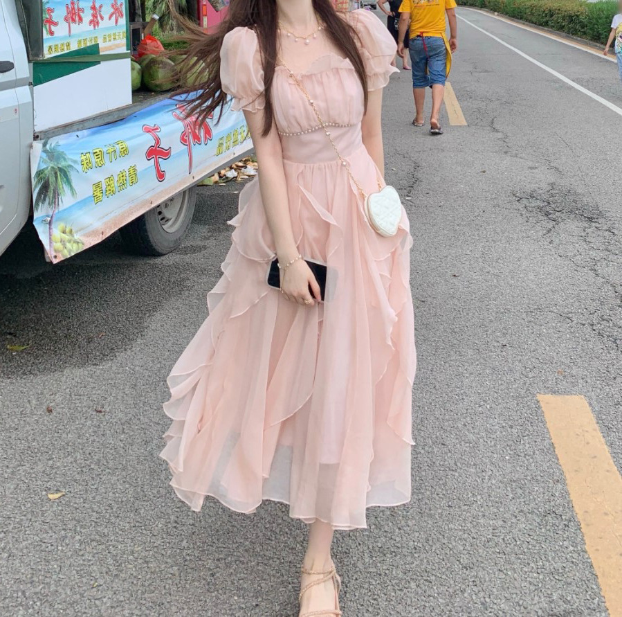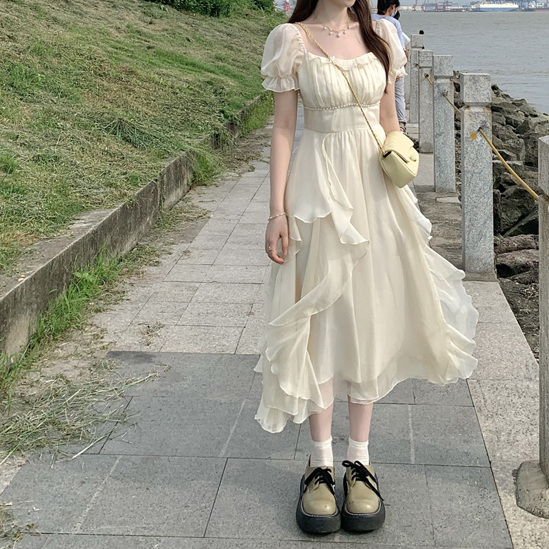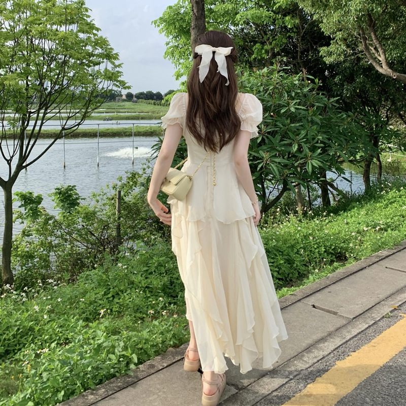 十三行2023新款气质法式方领新款温柔长款连衣裙女装短袖夏季裙子