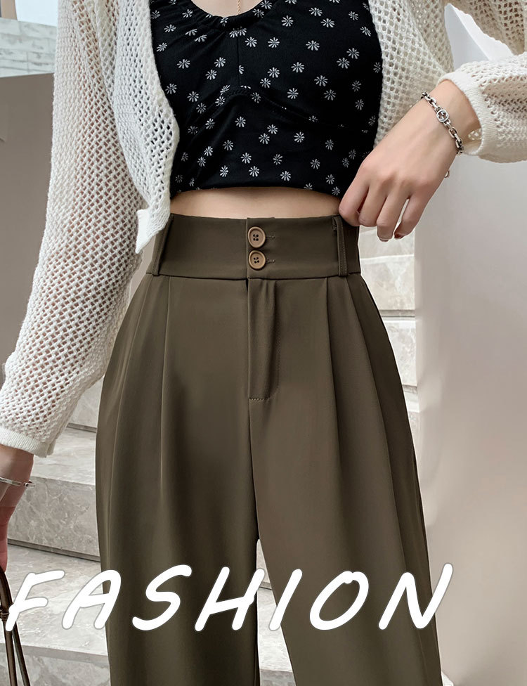 高级感西装阔腿裤女裤子2023夏季高腰垂感直筒宽松休闲小个子西裤