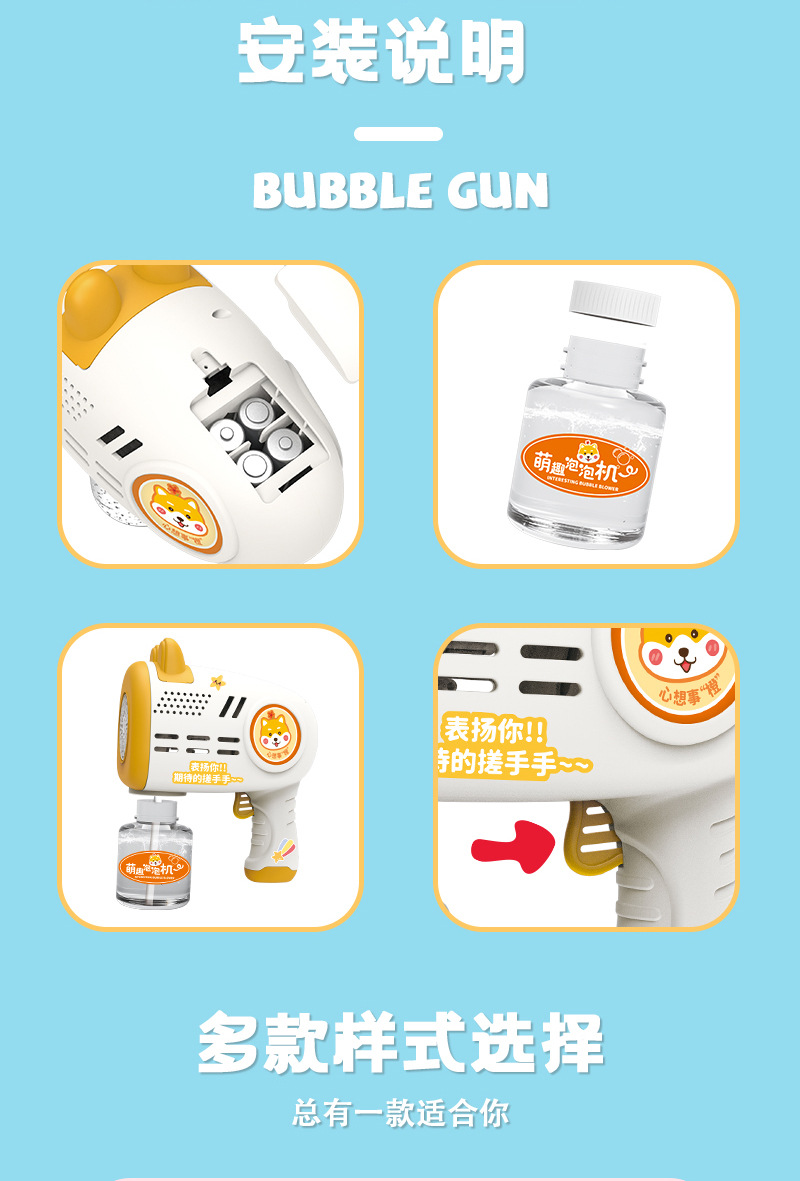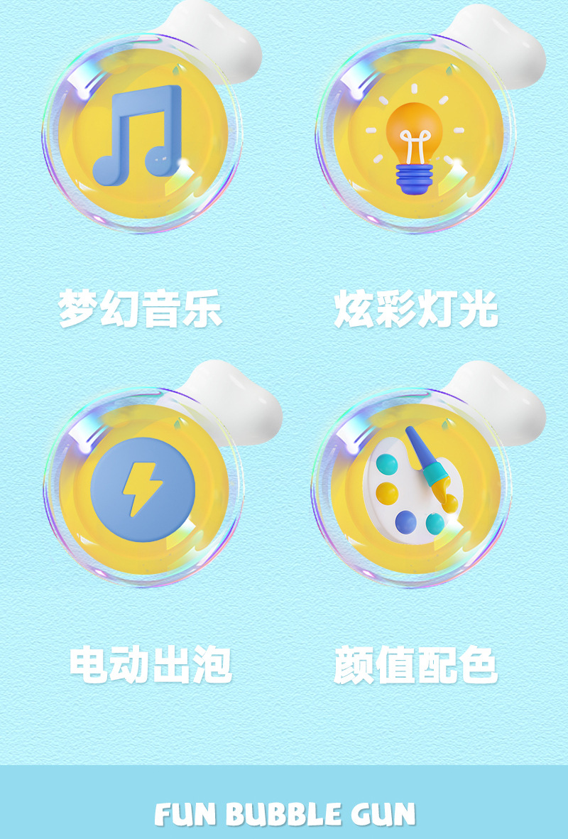 卡通萌娃灯光泡泡机手持全自动加特林32孔泡泡枪电动儿童玩具批发