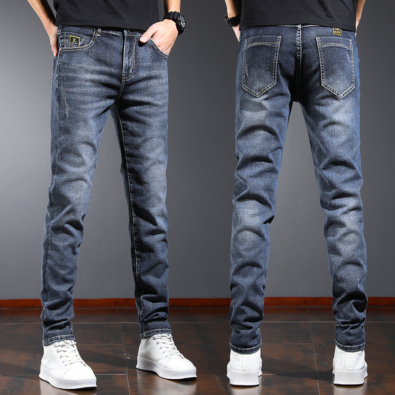 男士牛仔裤春夏季小直筒长裤男韩版时尚修身小脚裤简约百搭休闲裤