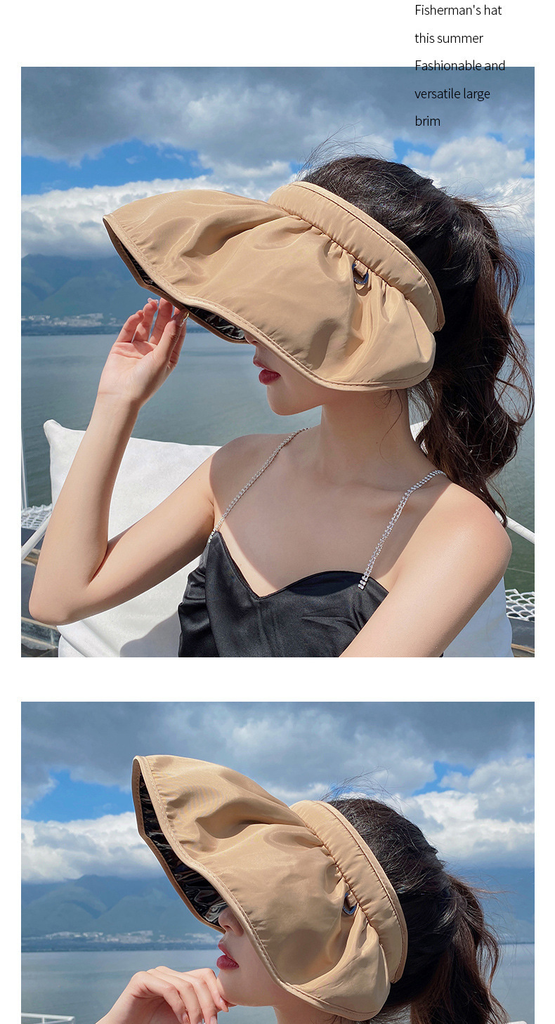 防晒帽女夏季防紫外线黑胶遮阳帽空顶户外贝壳帽大檐遮脸太阳帽子