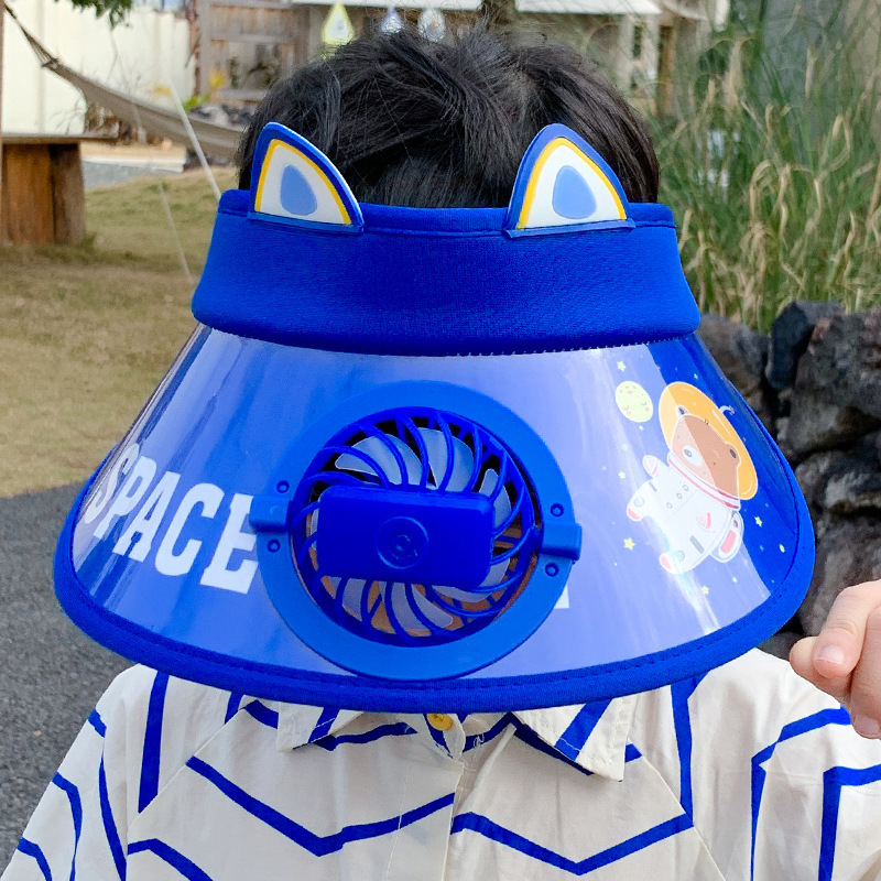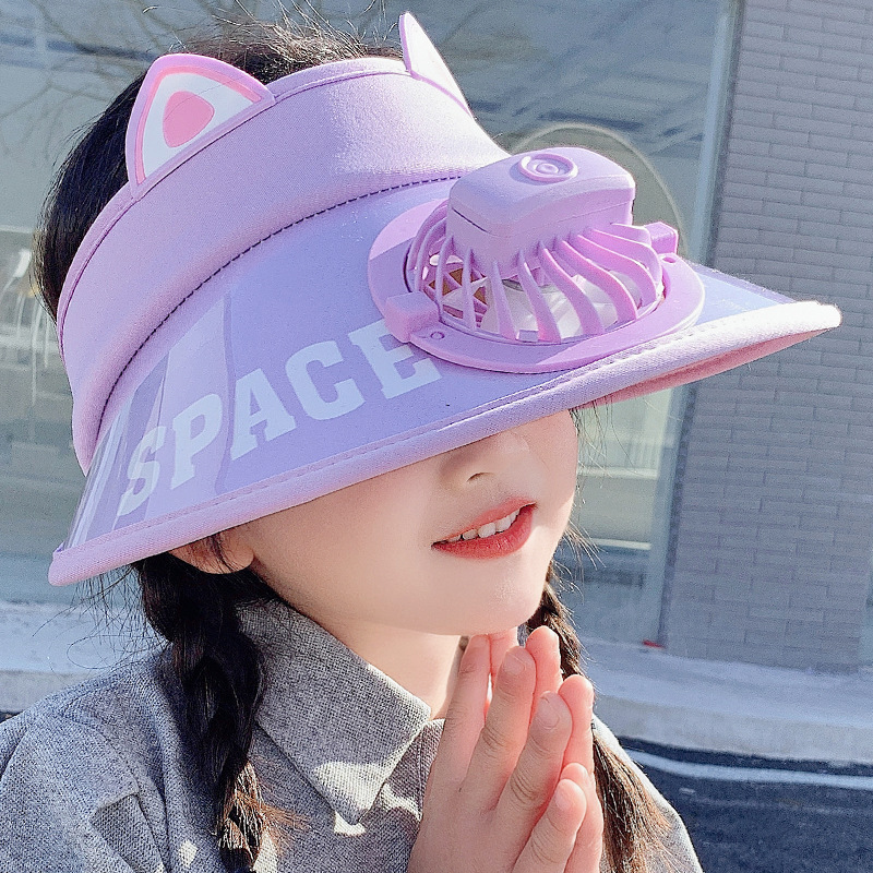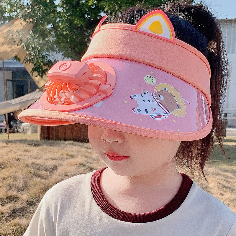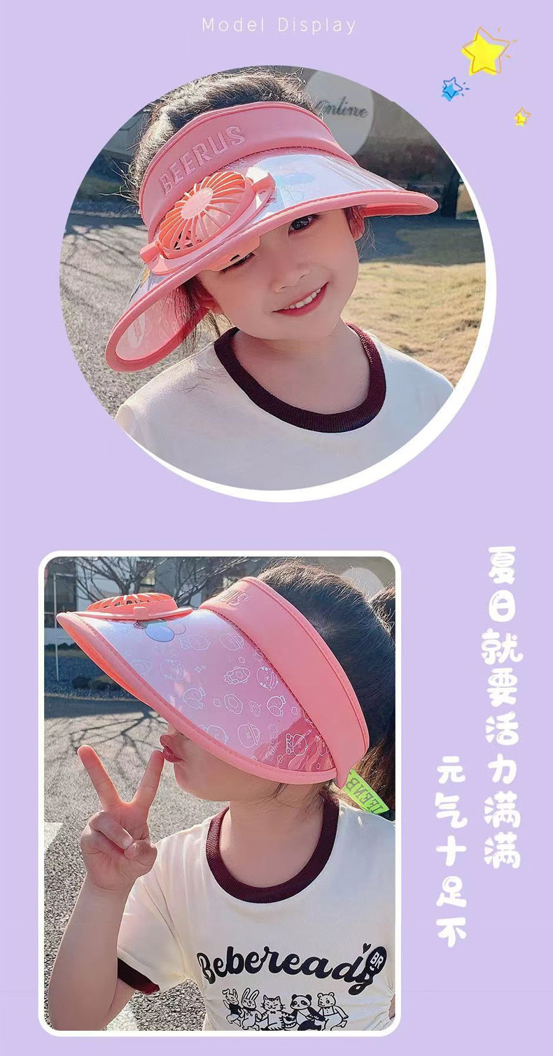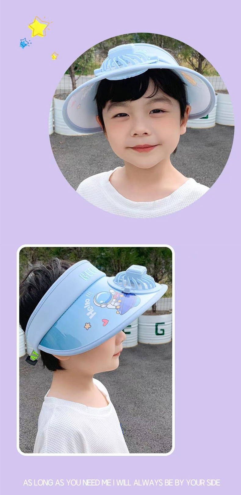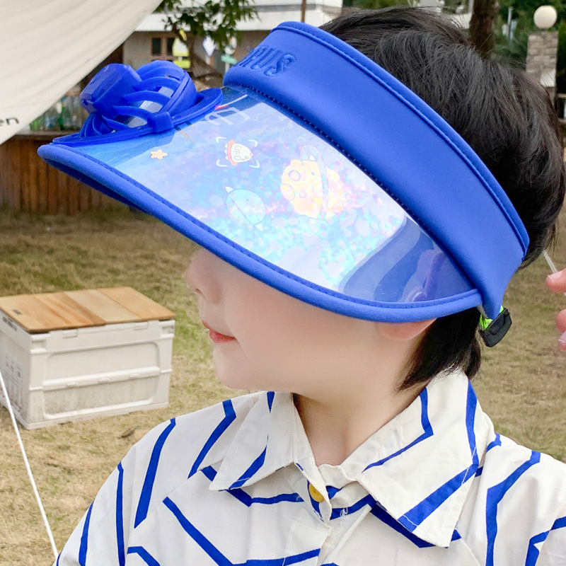 儿童夏季新款风扇空顶帽男女童户外防晒大檐帽遮阳防晒沙滩太阳帽