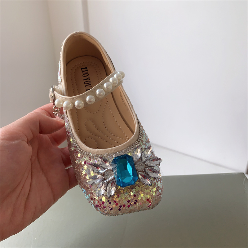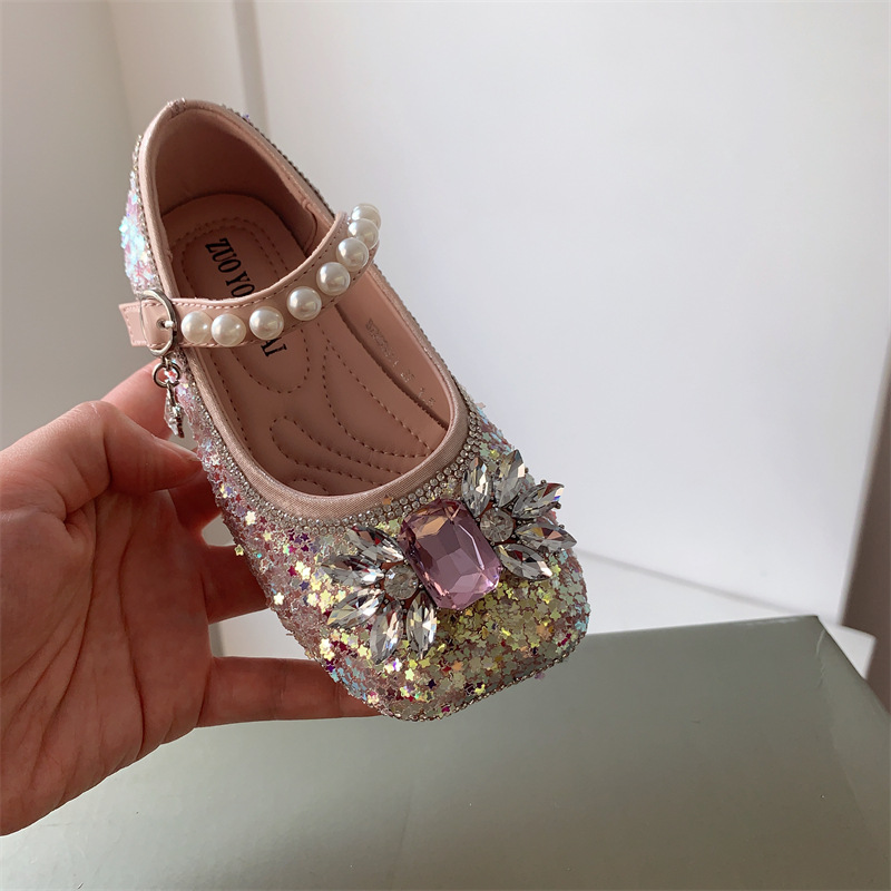 时尚水钻亮片女童单鞋2023夏季新款浅口儿童公主鞋子宝宝水晶鞋潮