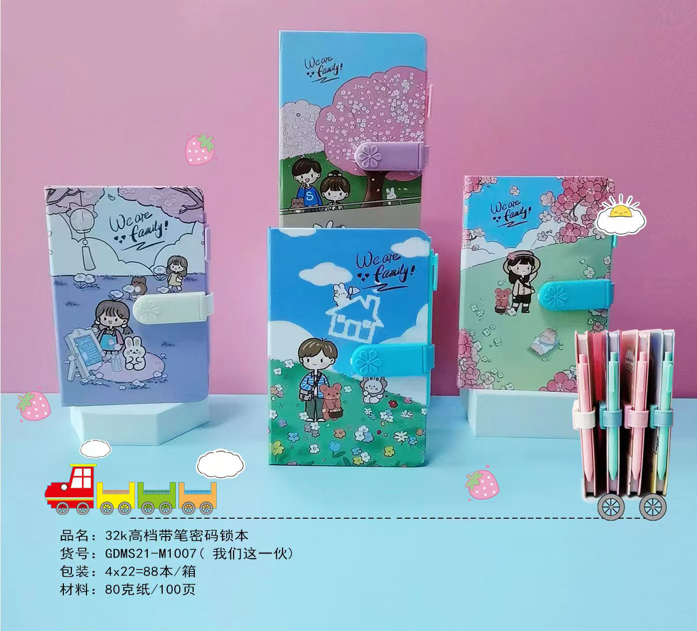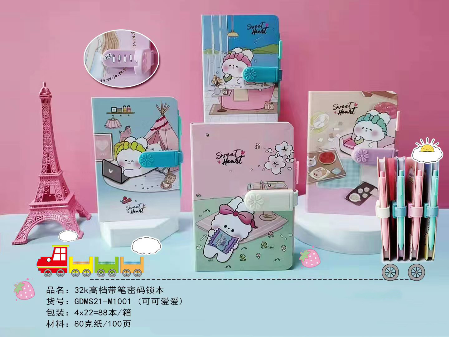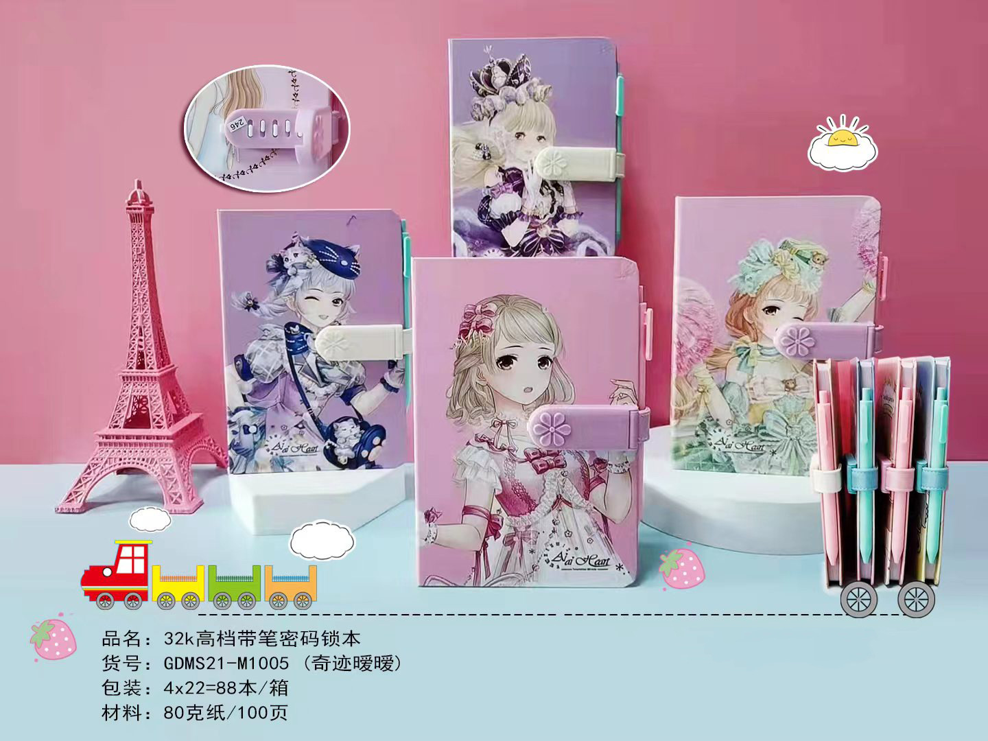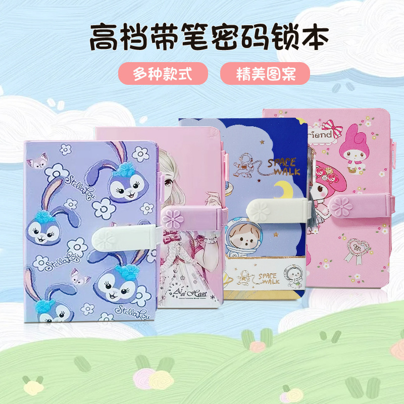 儿童密码锁本卡通创意文具少女日记本学生高档笔记本记事本批发