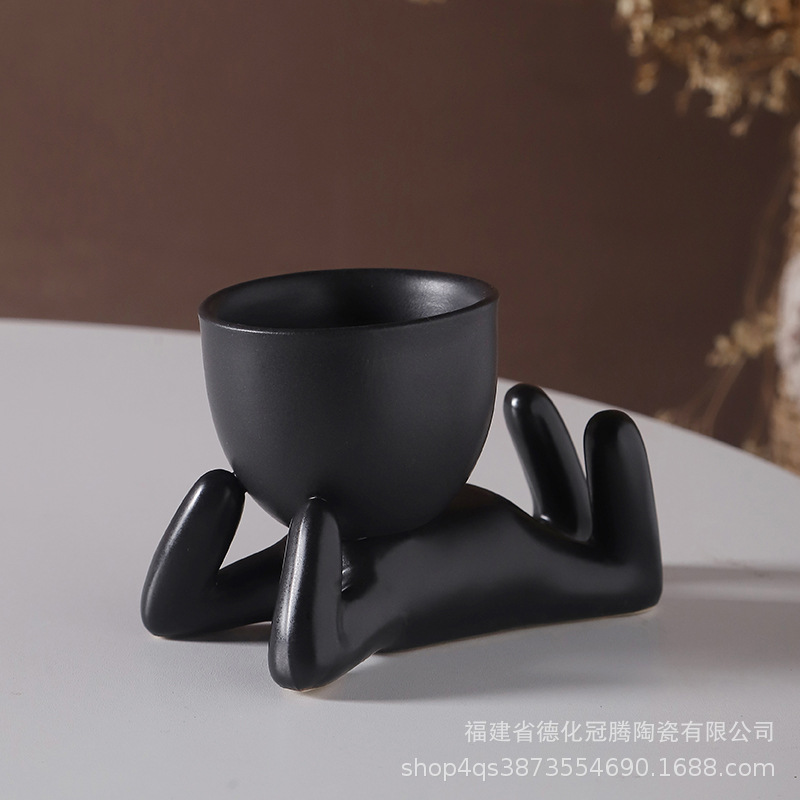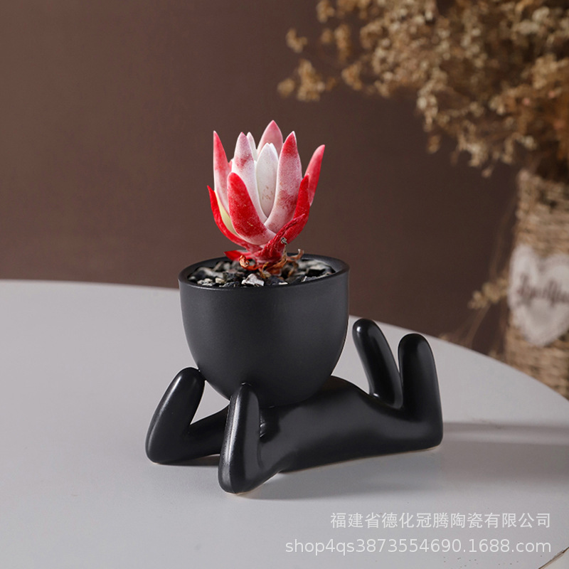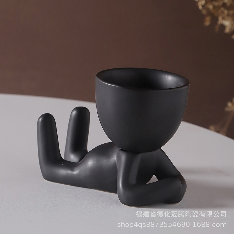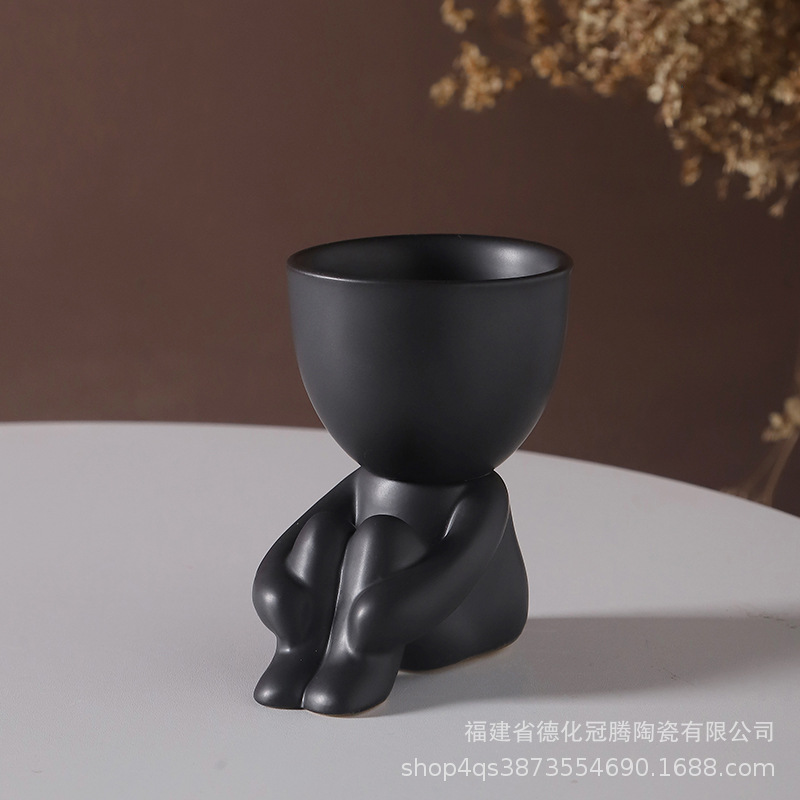 ins北欧现代陶瓷小人物多肉花盆 创意绿植盆栽家居桌面工艺品摆件