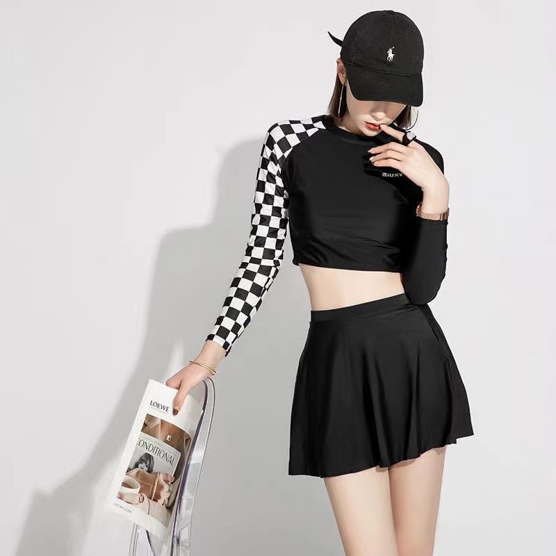2023新款运动连体泳衣女保守新款温泉度假游泳衣长短袖成人泳衣女