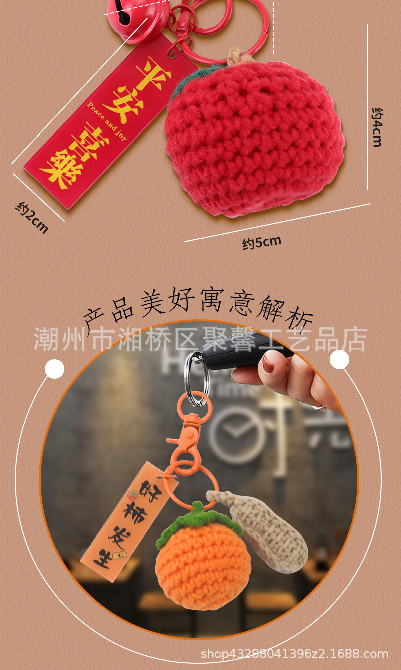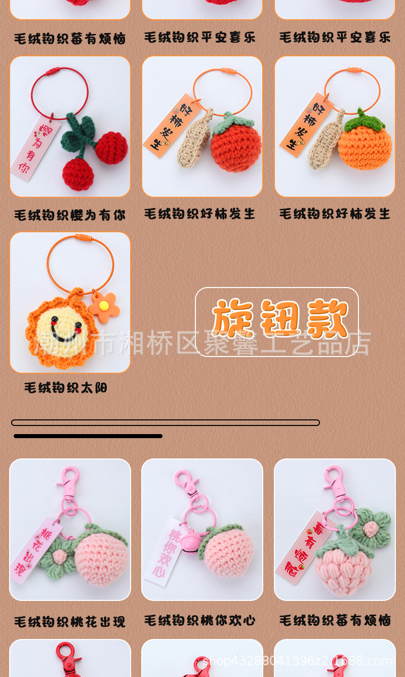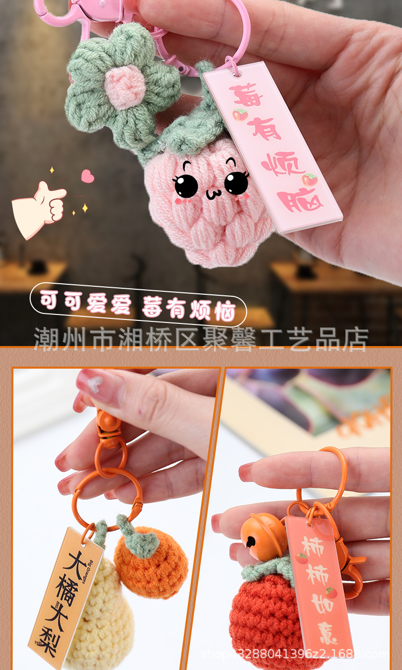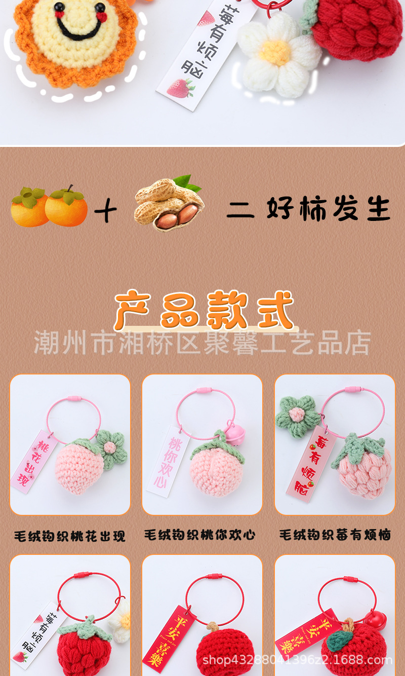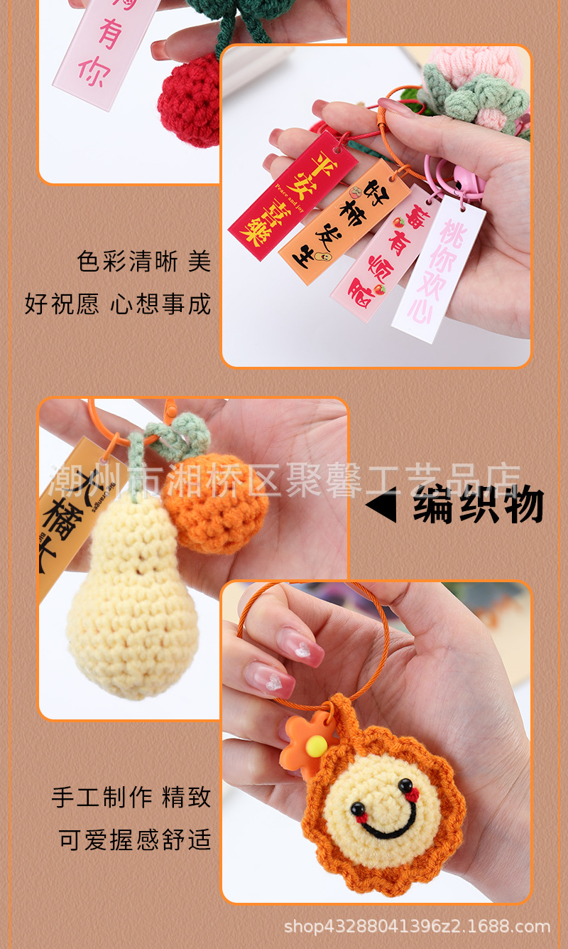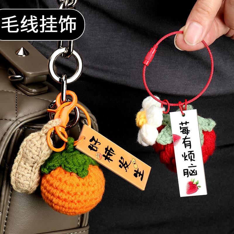 毛线针织挂件好事发生钥匙扣手工编织挂件没有烦恼钥匙扣厂家批发