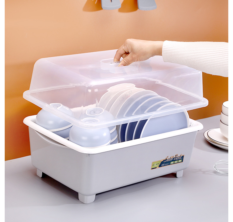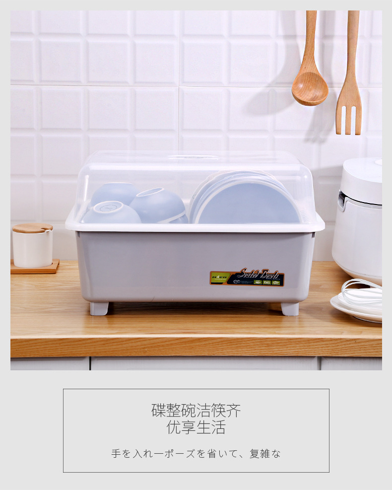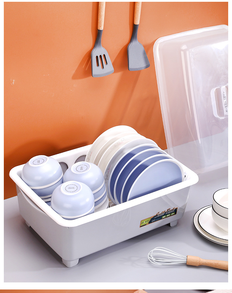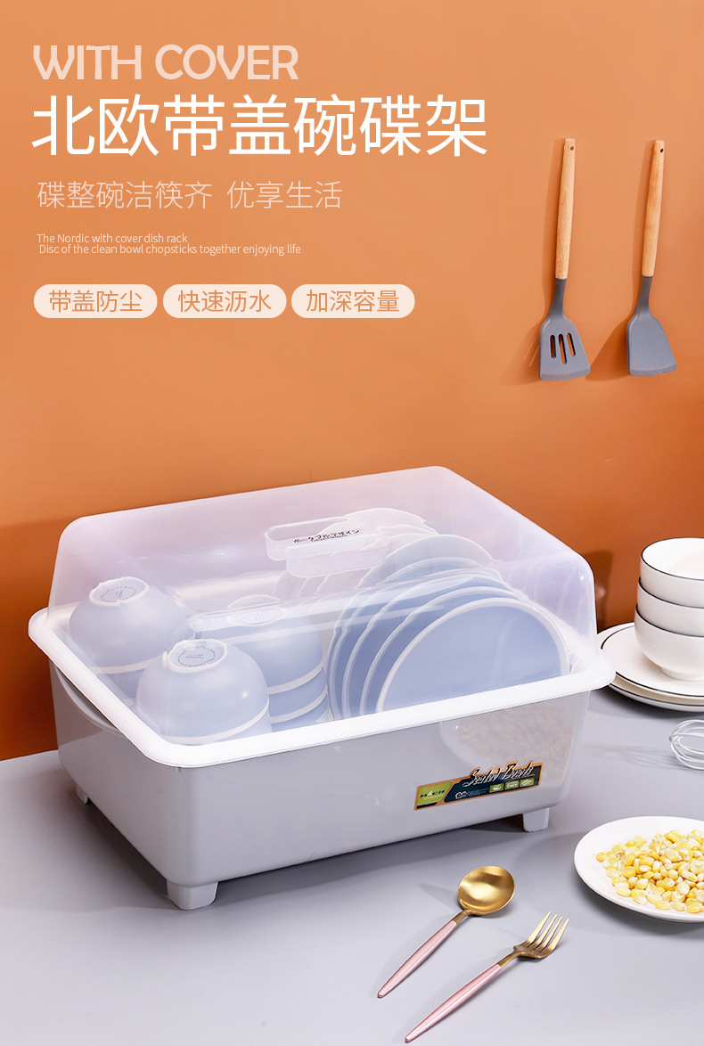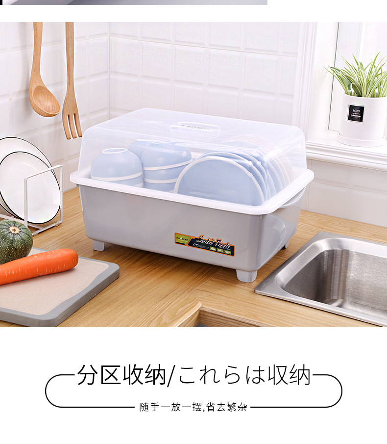 塑料碗柜厨房沥水碗架带盖餐具收纳盒放碗碟架滴水碗盘置物架0594