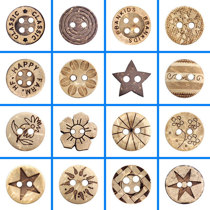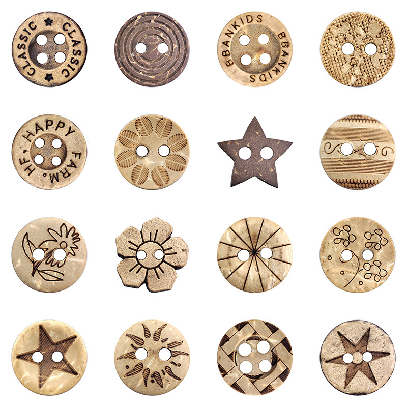 椰子扣激光花纹复古镂空椰壳纽扣宽边彩色圆形衬衫点油扣子定制