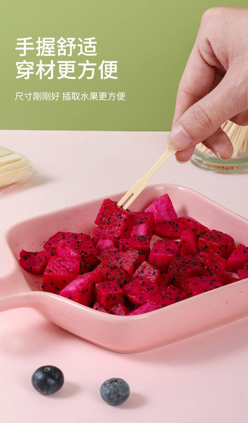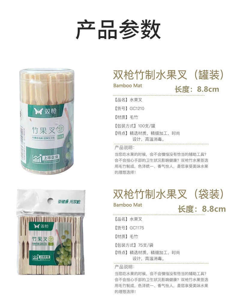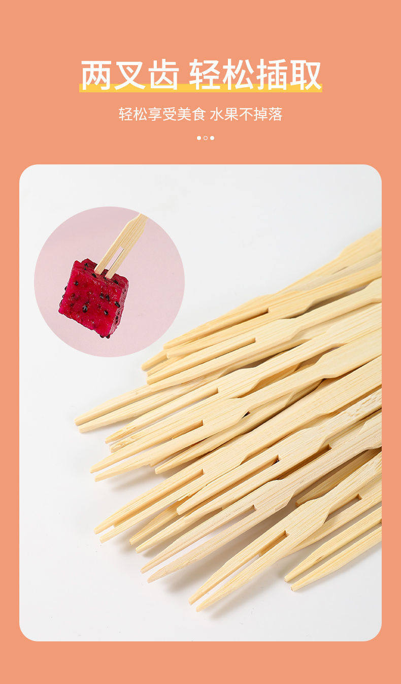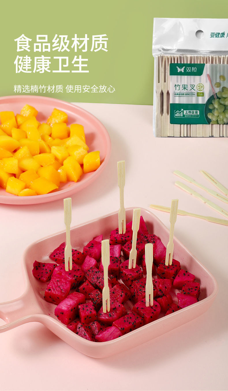 双枪一次性水果叉家用水果签竹制竹子叉蛋糕叉甜品叉寿司点心叉子