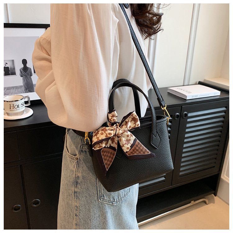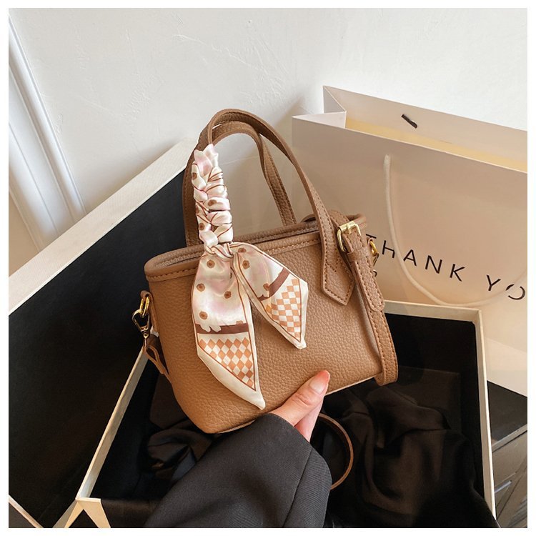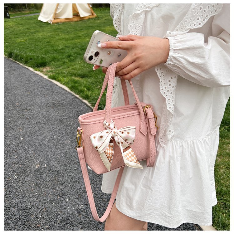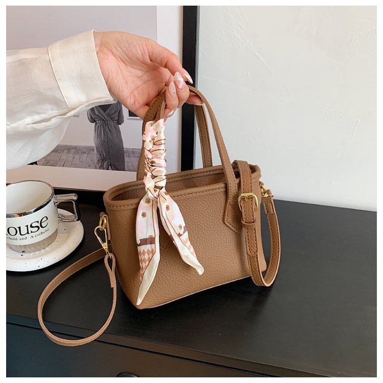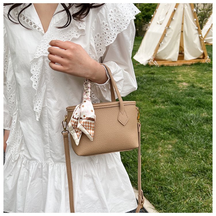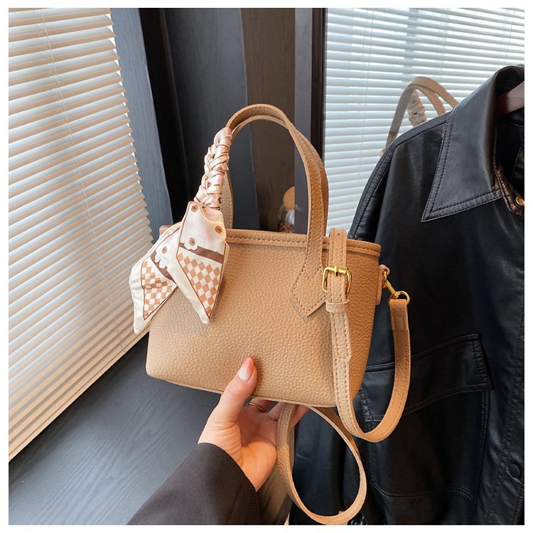 小众时尚手提饭盒包2023新款简约气质单肩包软面纯色大容量斜挎包