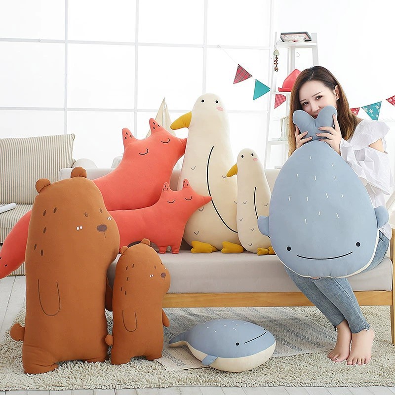 ins软体森林抱枕批发海鸟鲸鱼家居靠垫毛绒玩具精品玩偶一件代发