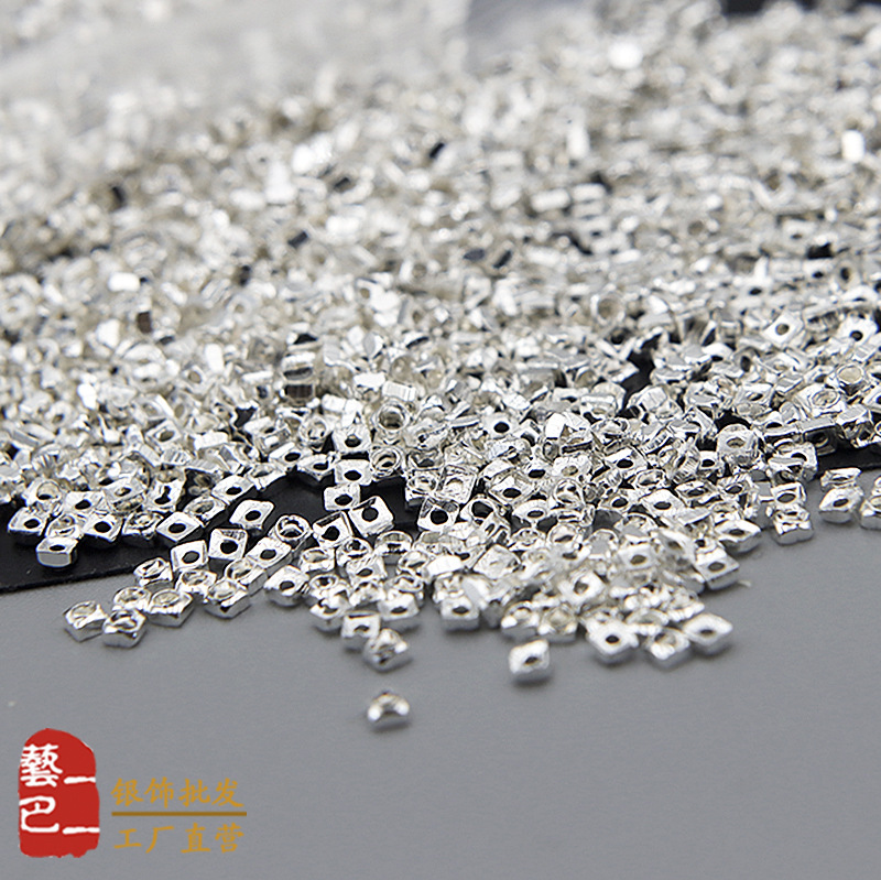 s925纯银迷你碎银子小方形隔片散珠DIY手链项链串珠编绳饰品配件