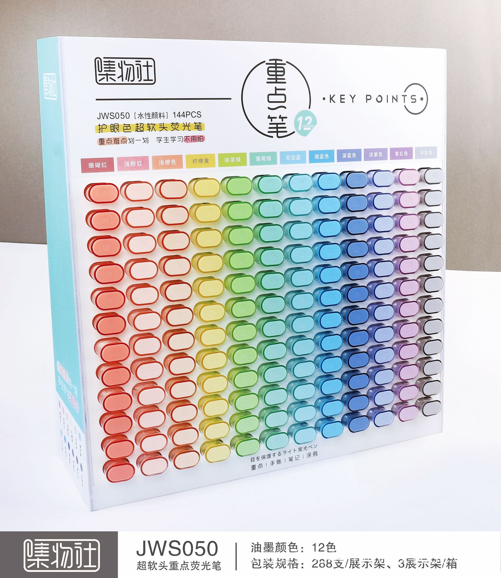 集物社超软头荧光笔护眼色标记笔架装彩色手账笔划重点记号笔批发