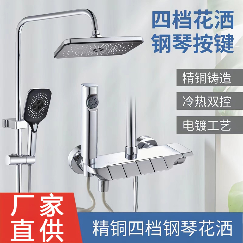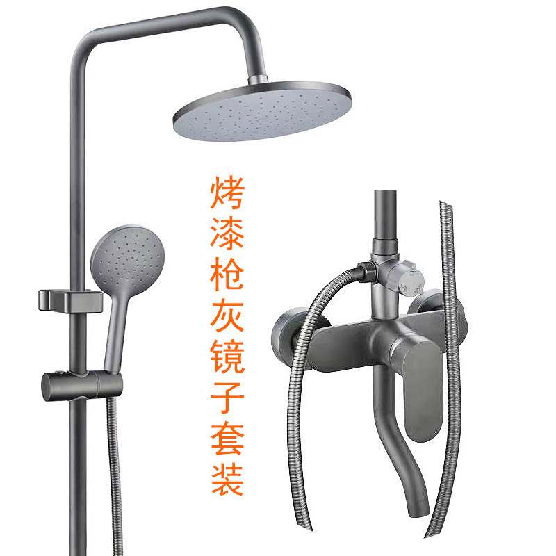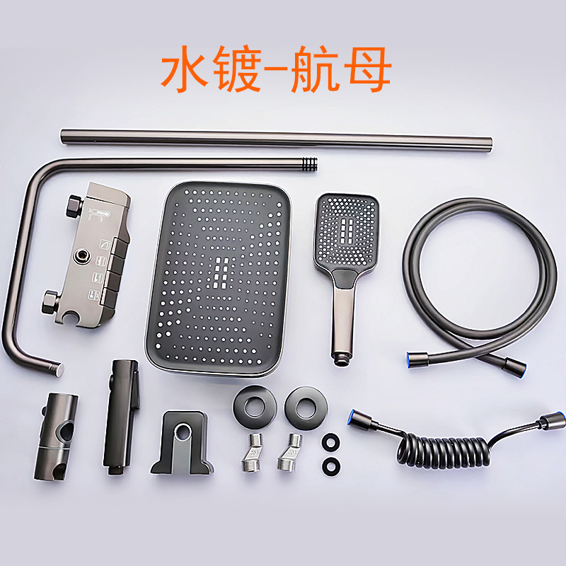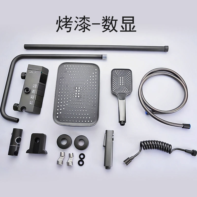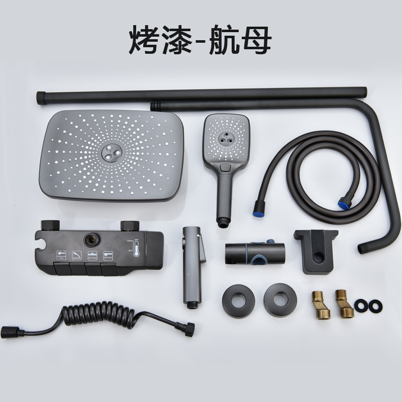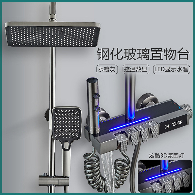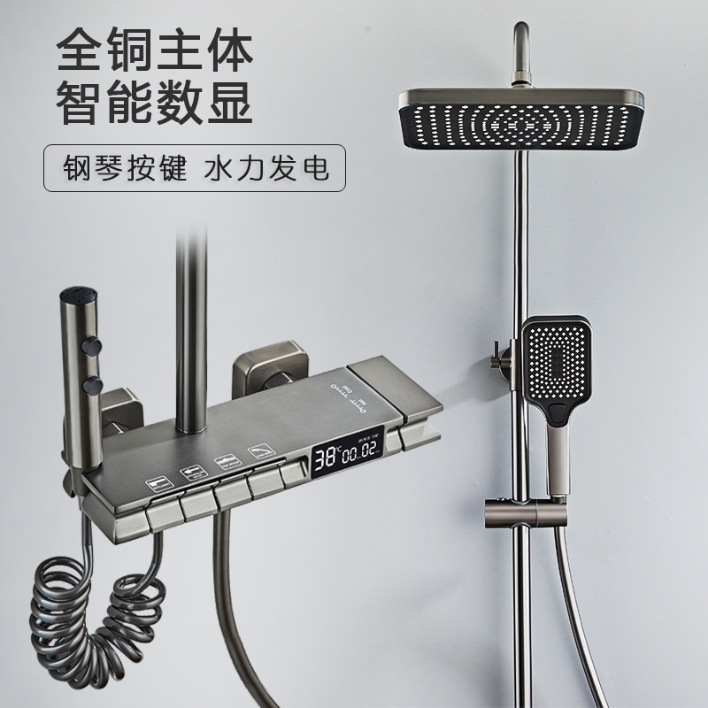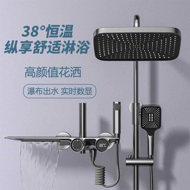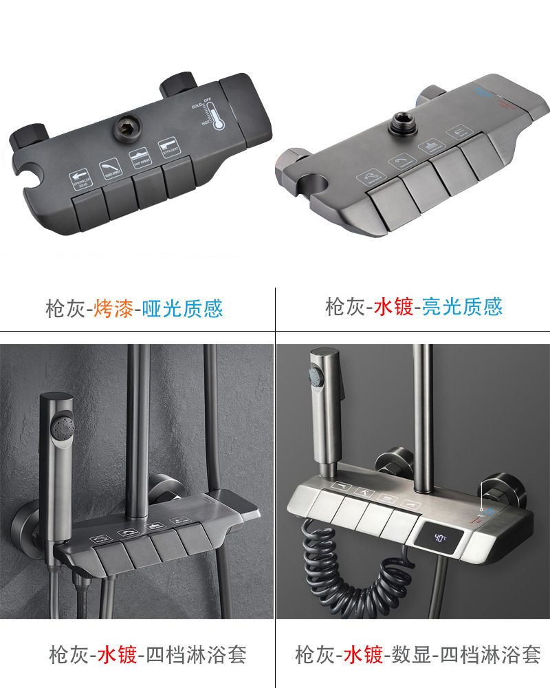 枪灰色淋浴花洒套装家用全铜四档恒温数显花洒浴室增压喷头淋浴器