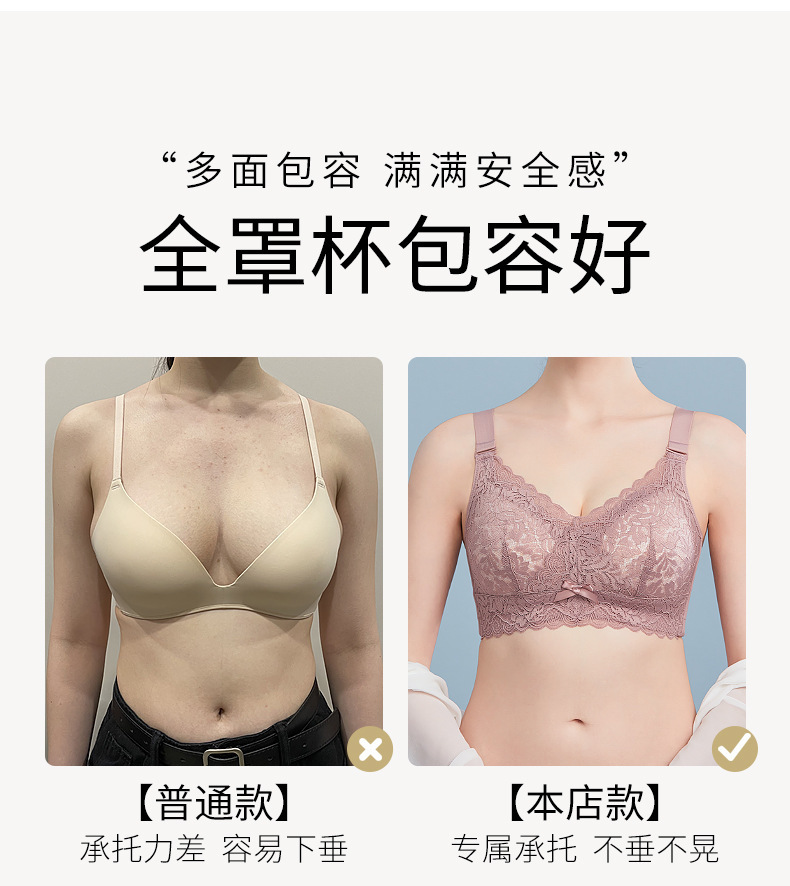 大胸显小内衣女薄款大码无钢圈聚拢上托防下垂收副乳全罩杯文胸罩