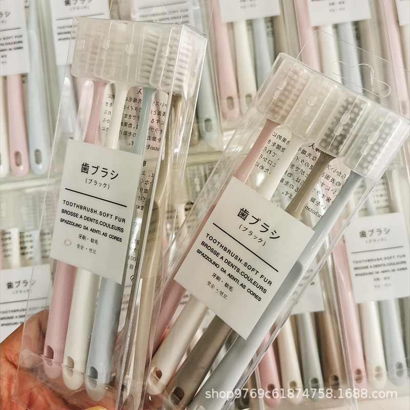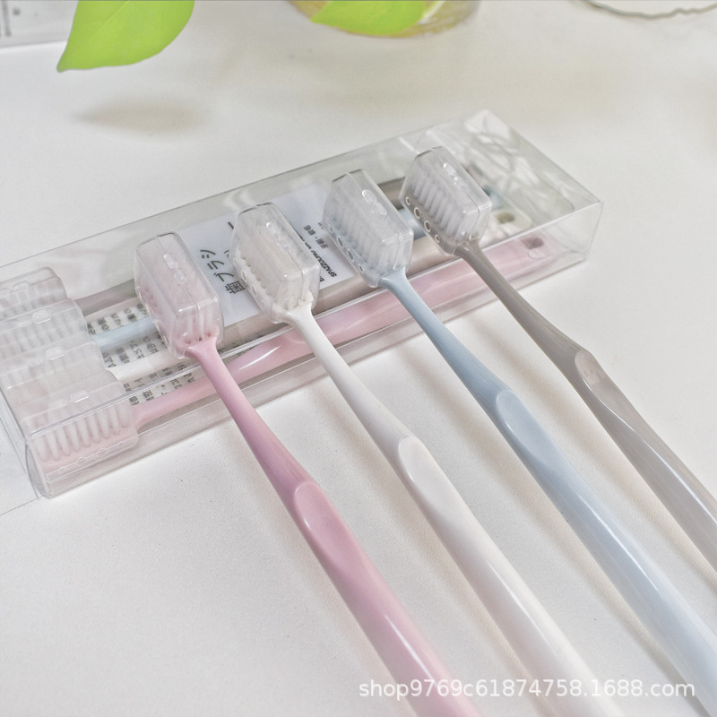 4支装日系马卡龙软毛牙刷成人家用家庭装 牙刷批发带保护套便携式