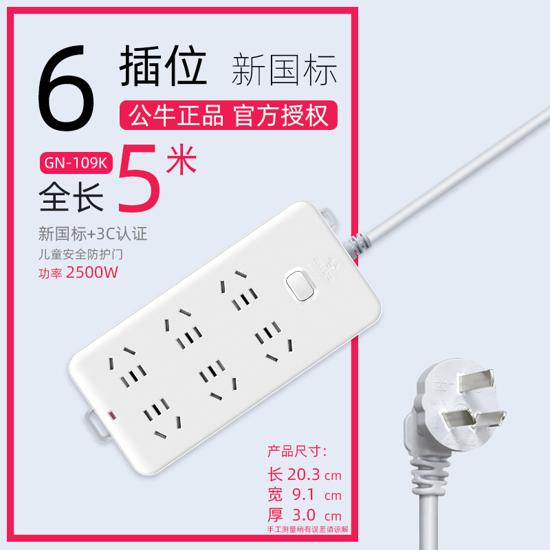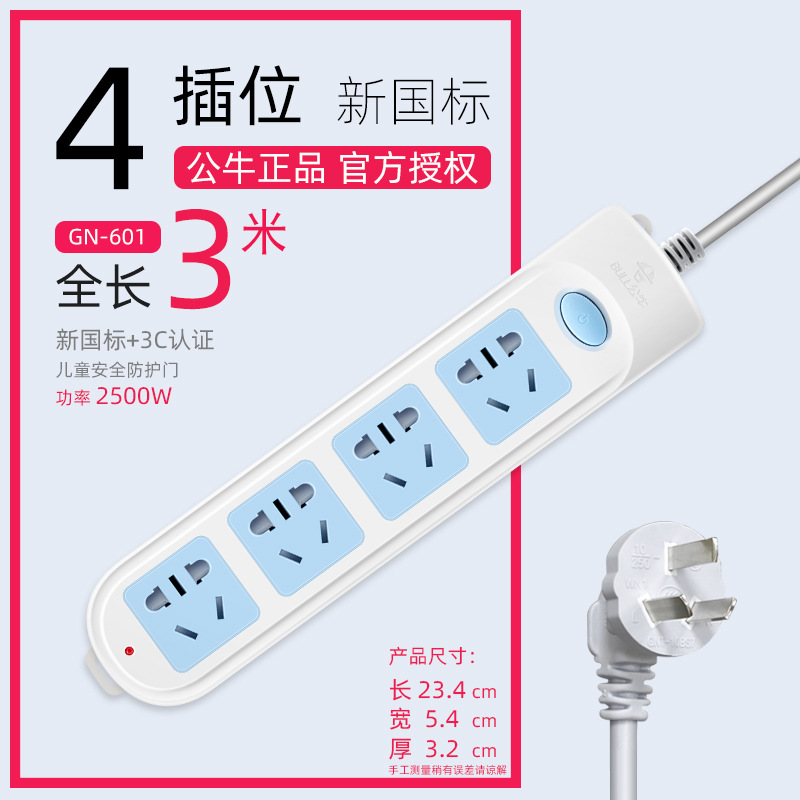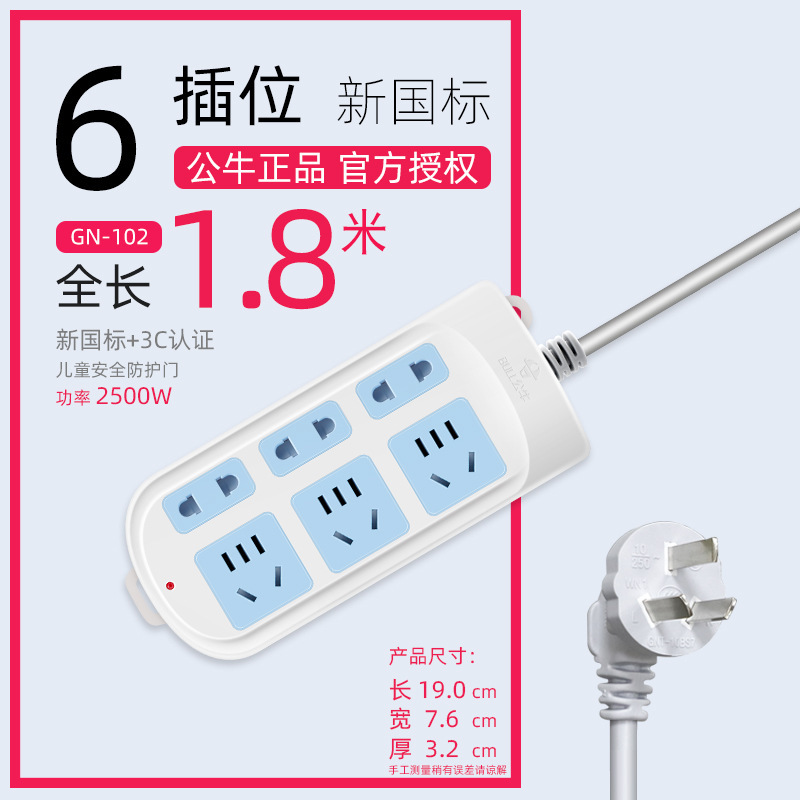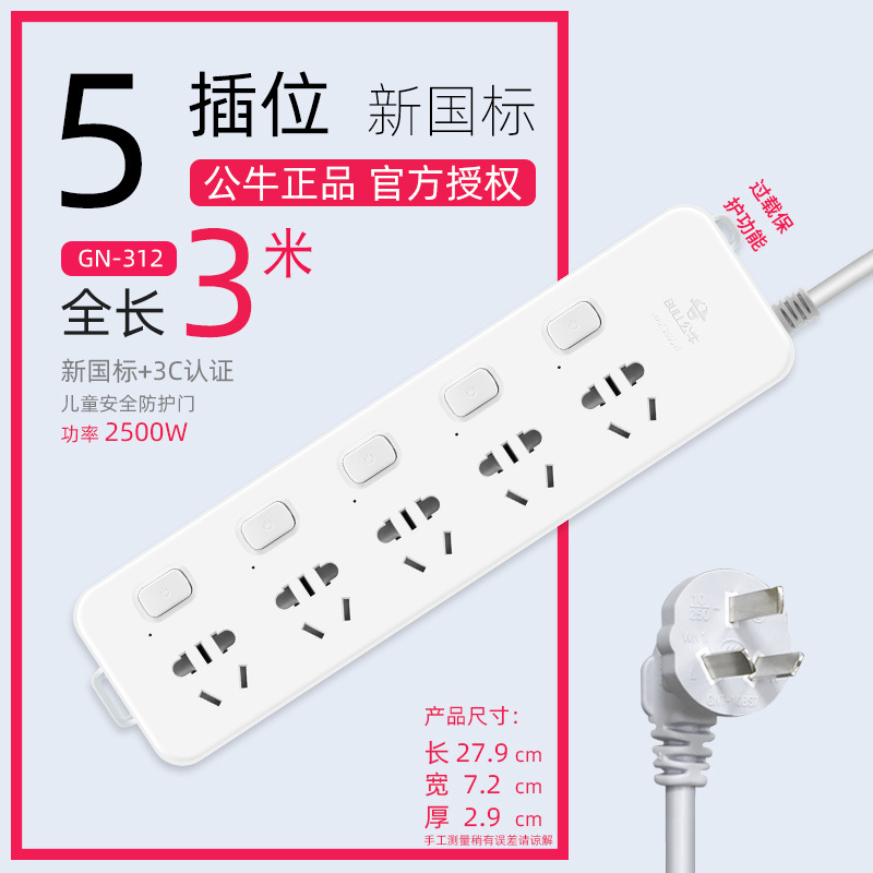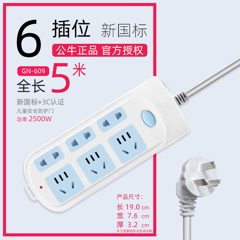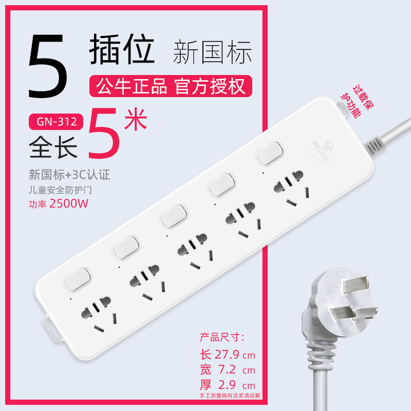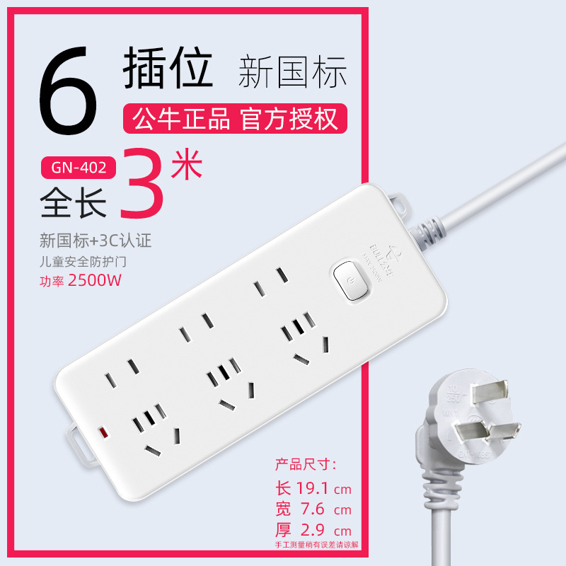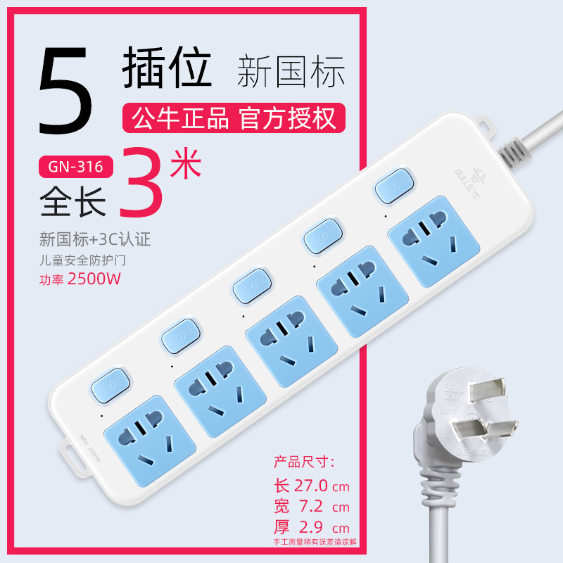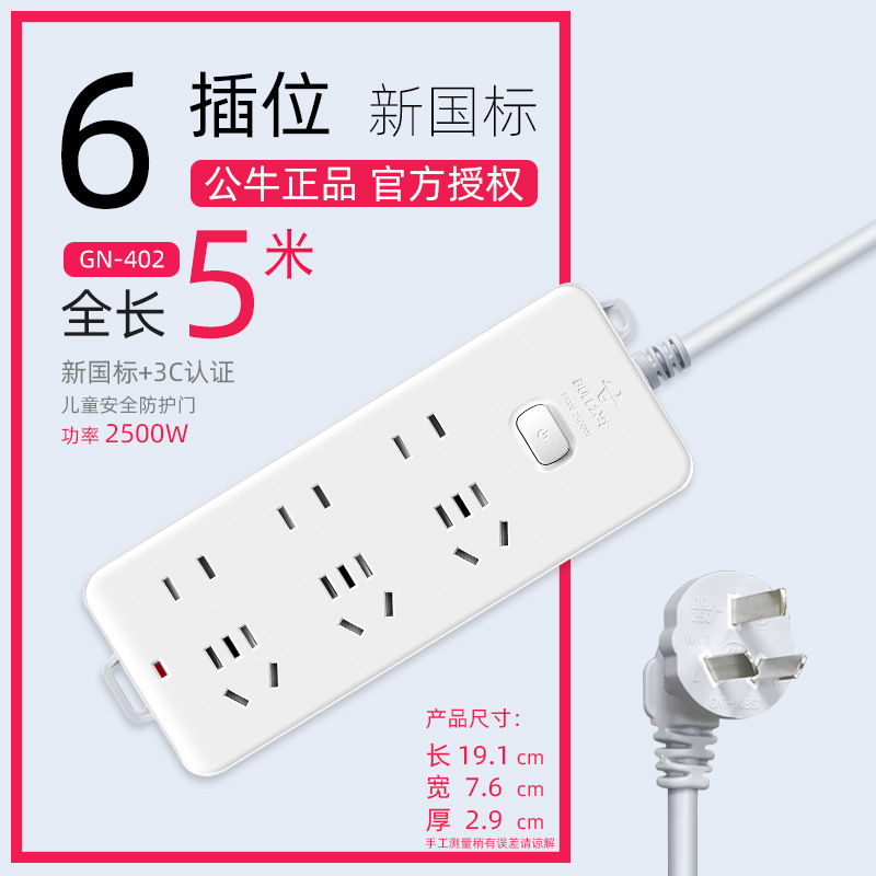 公牛插座面板多孔插排插长线多用功能家用宿舍拖接线板电插