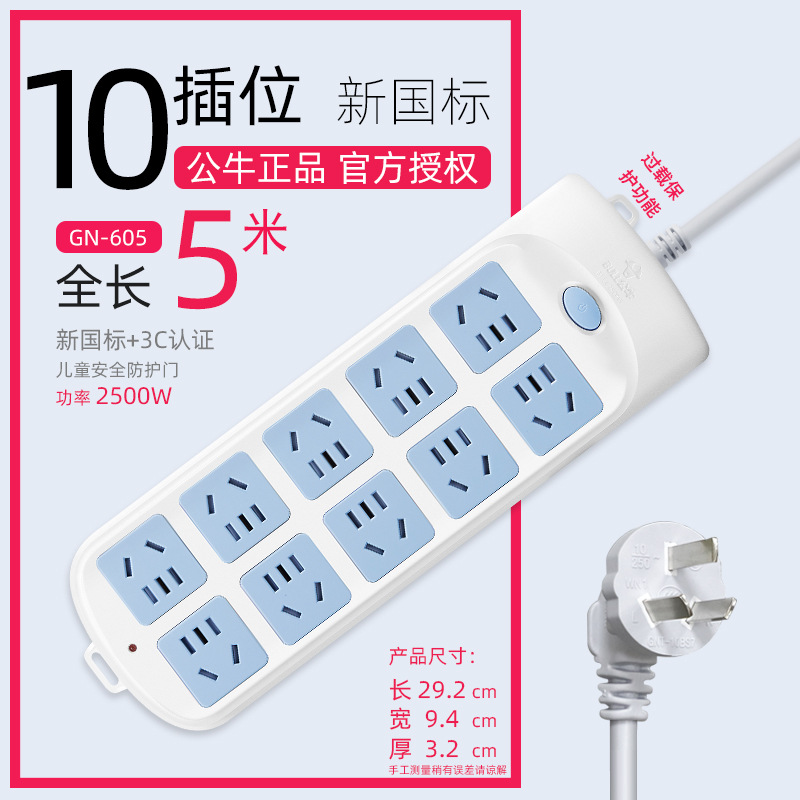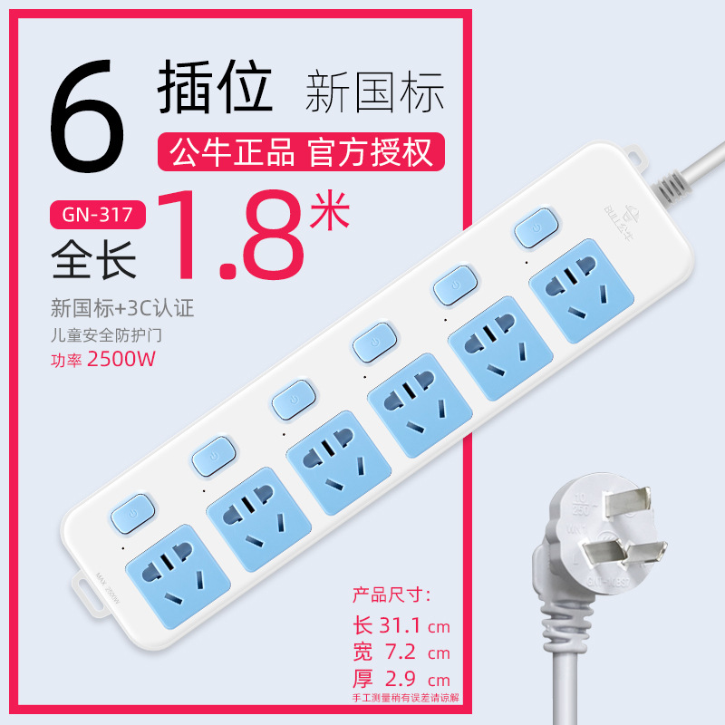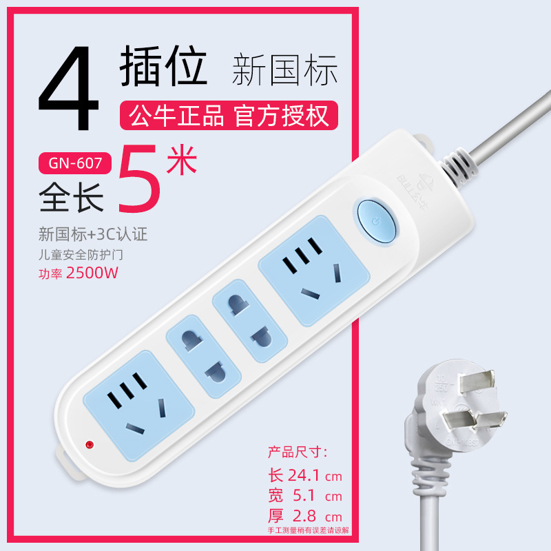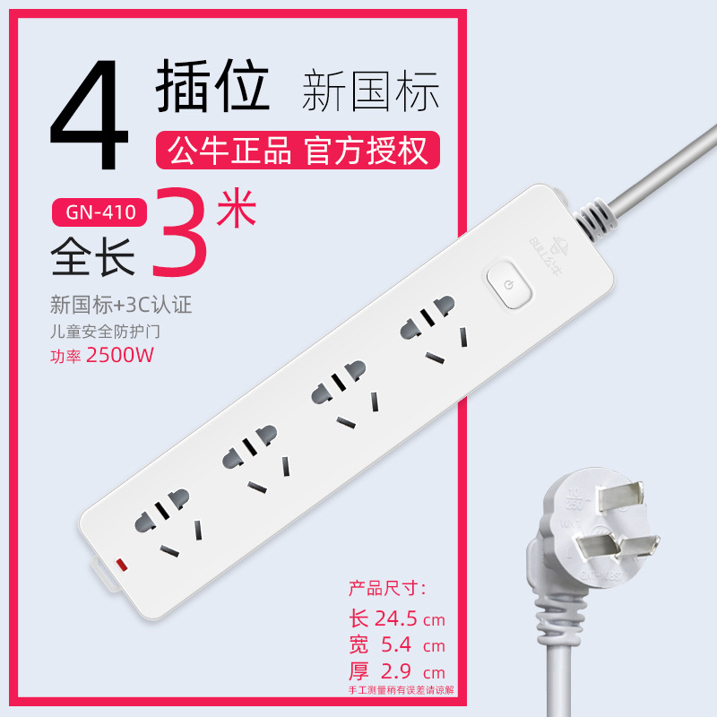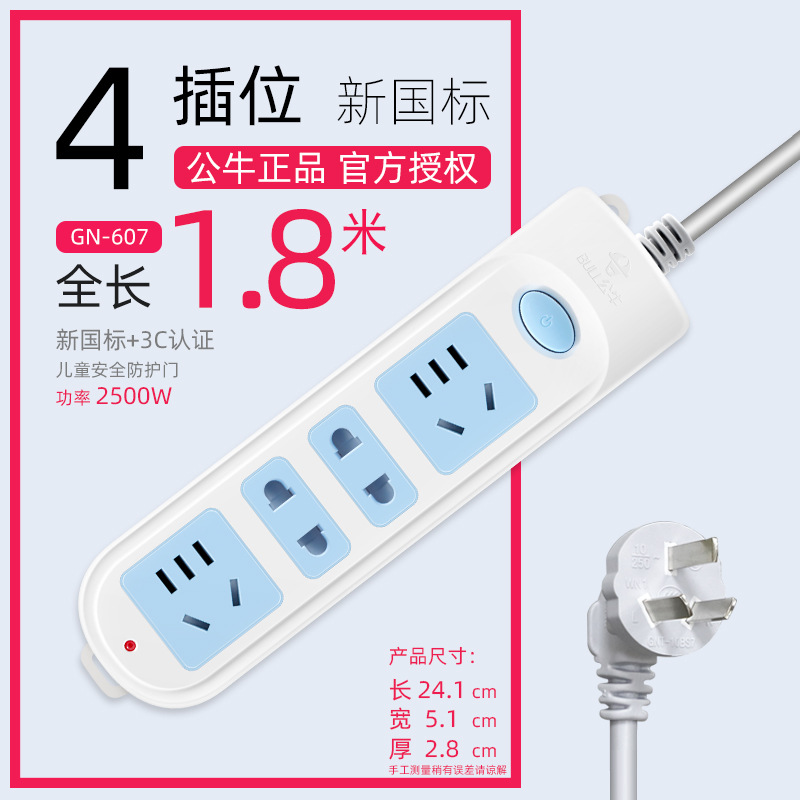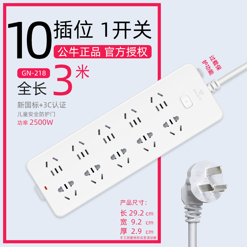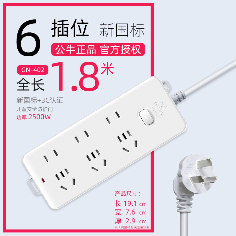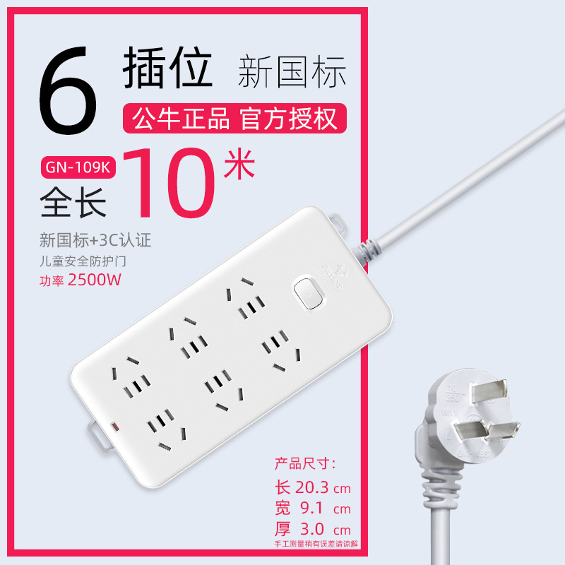 公牛插座面板多孔插排插长线多用功能家用宿舍拖接线板电插