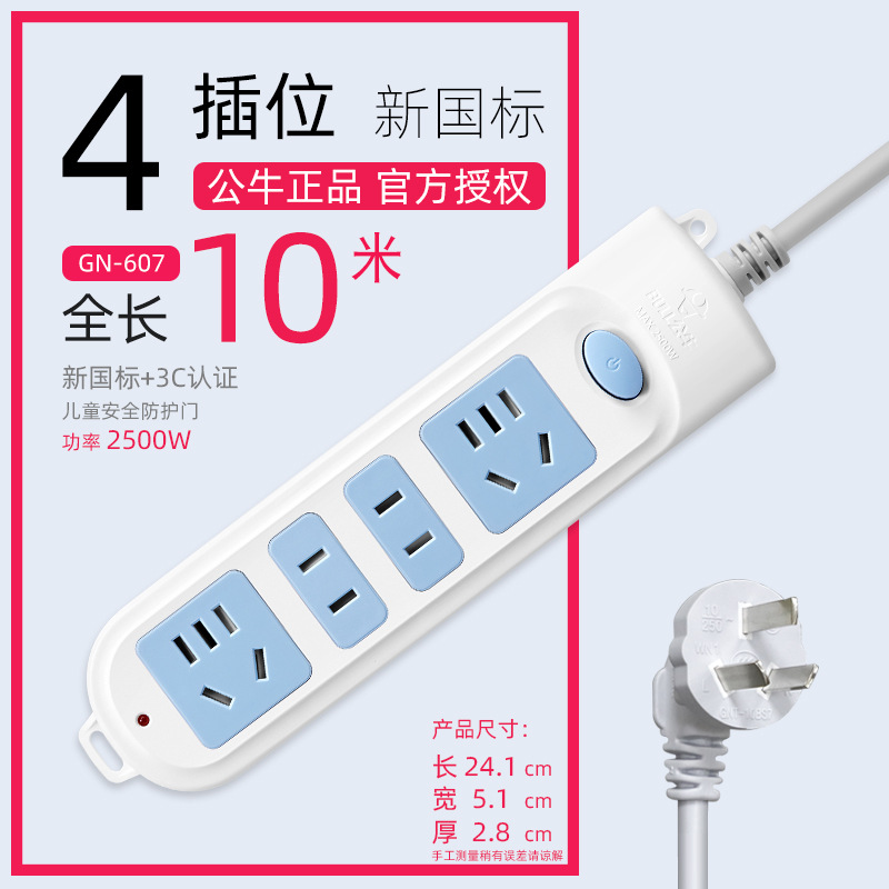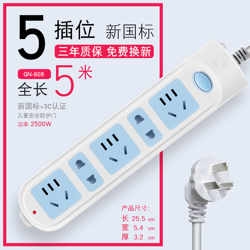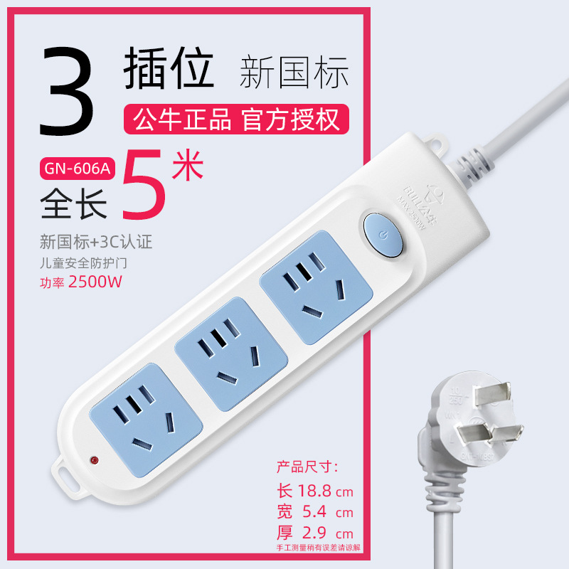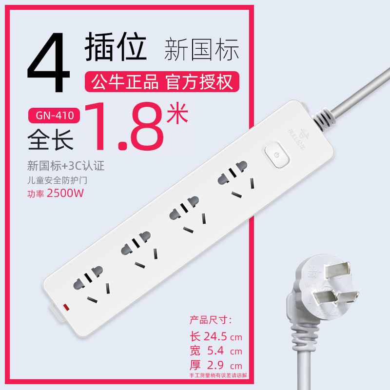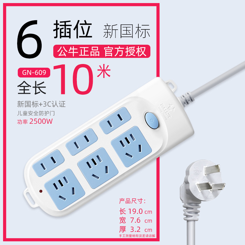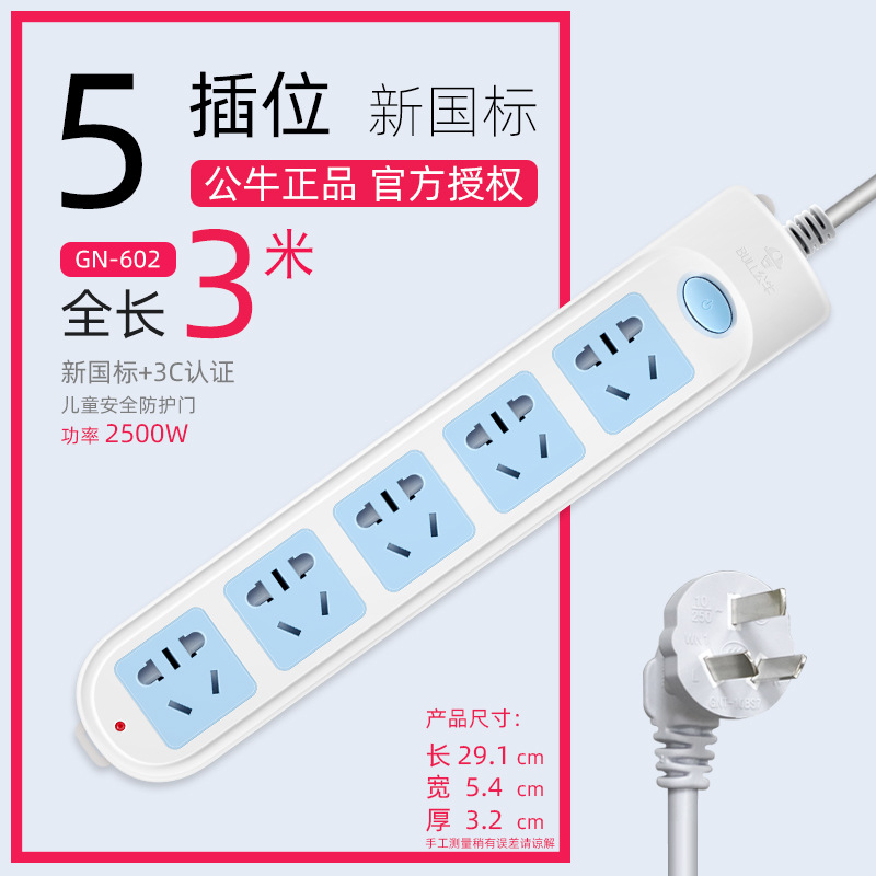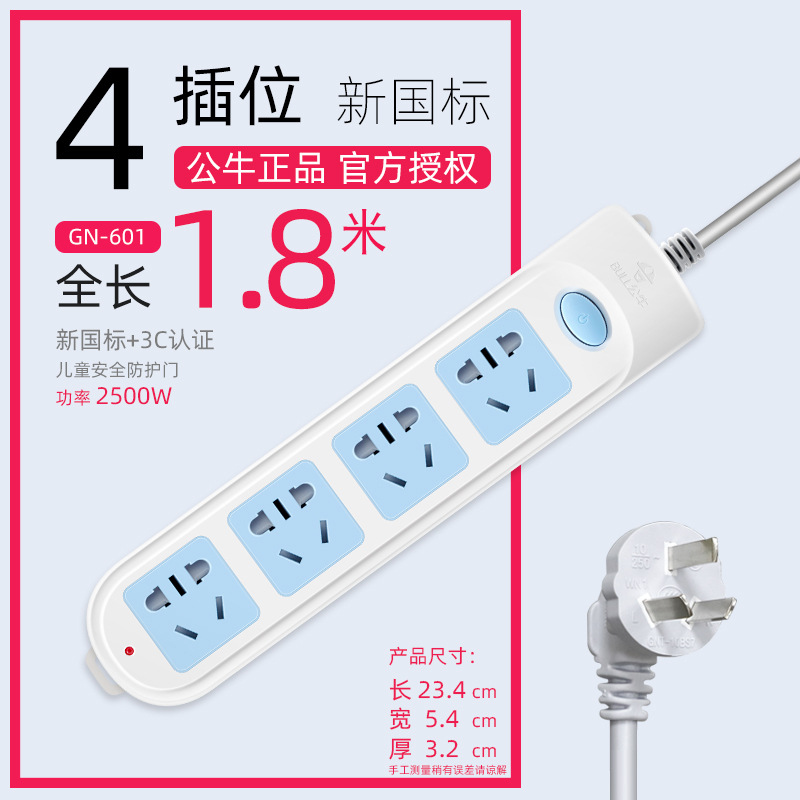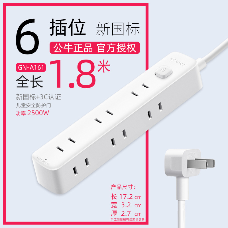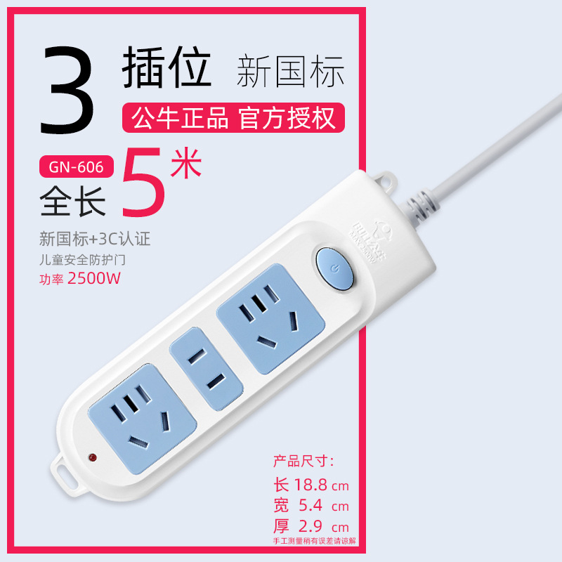 公牛插座面板多孔插排插长线多用功能家用宿舍拖接线板电插