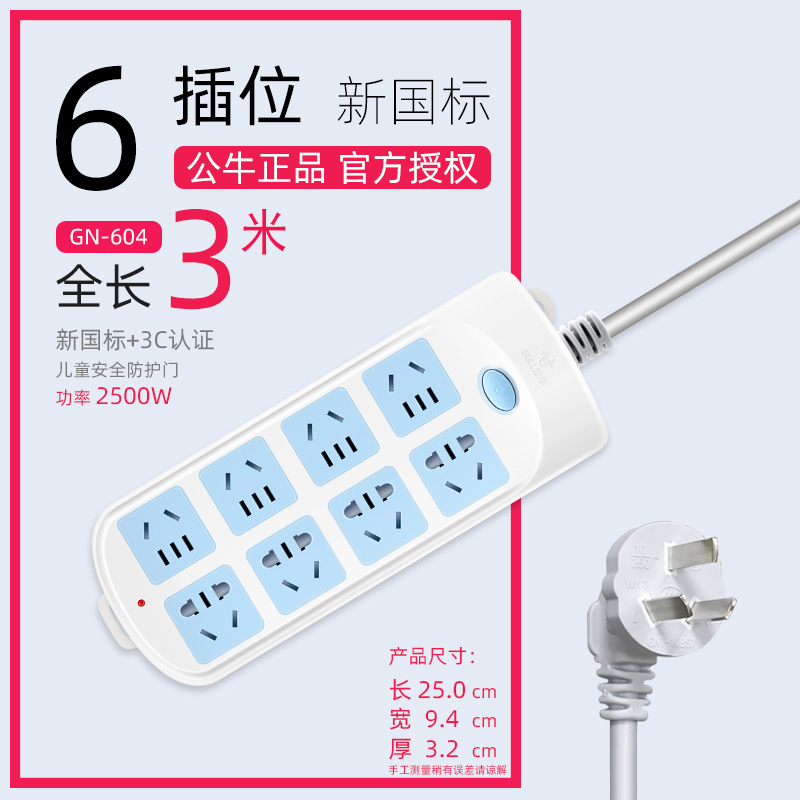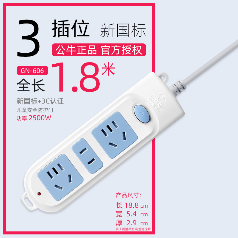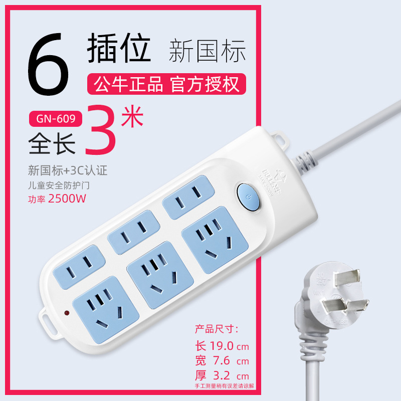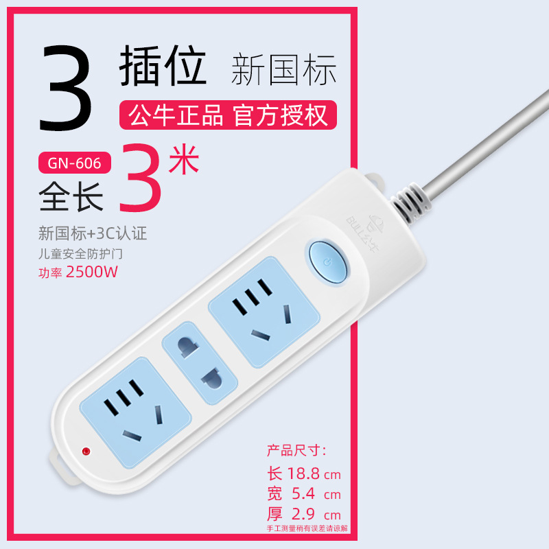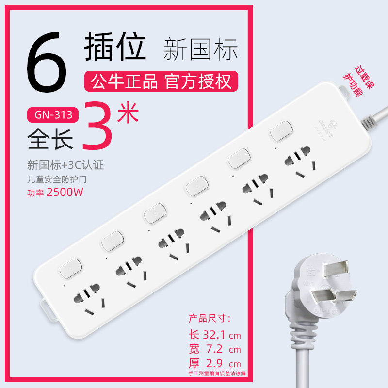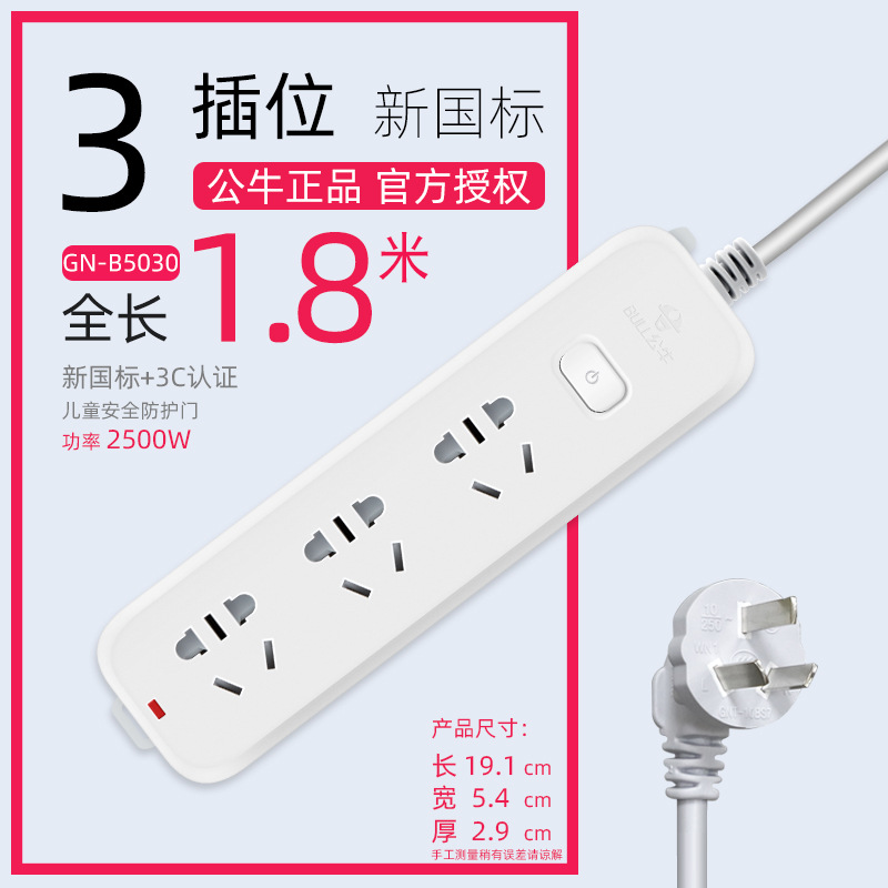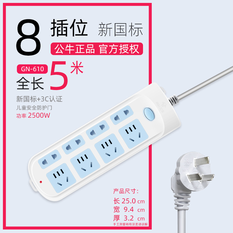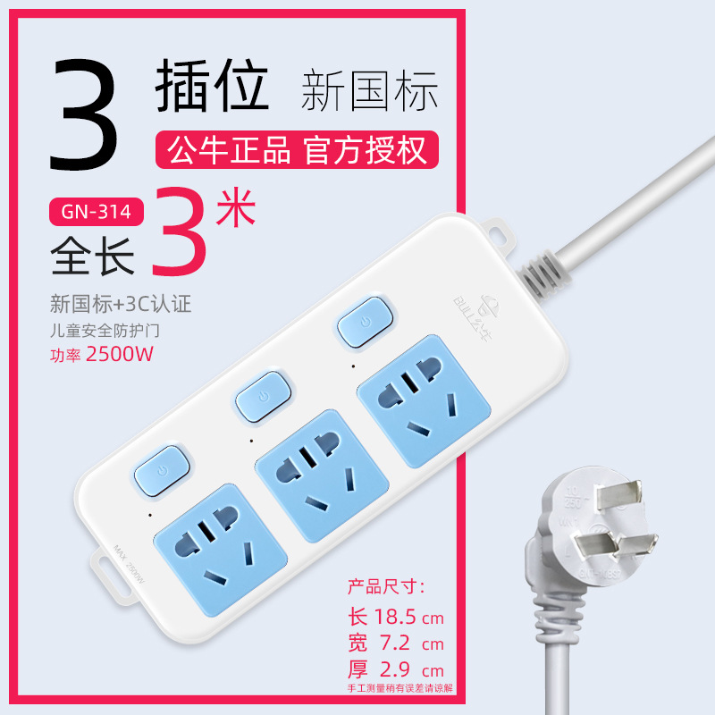 公牛插座面板多孔插排插长线多用功能家用宿舍拖接线板电插