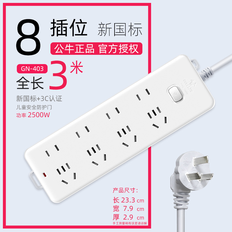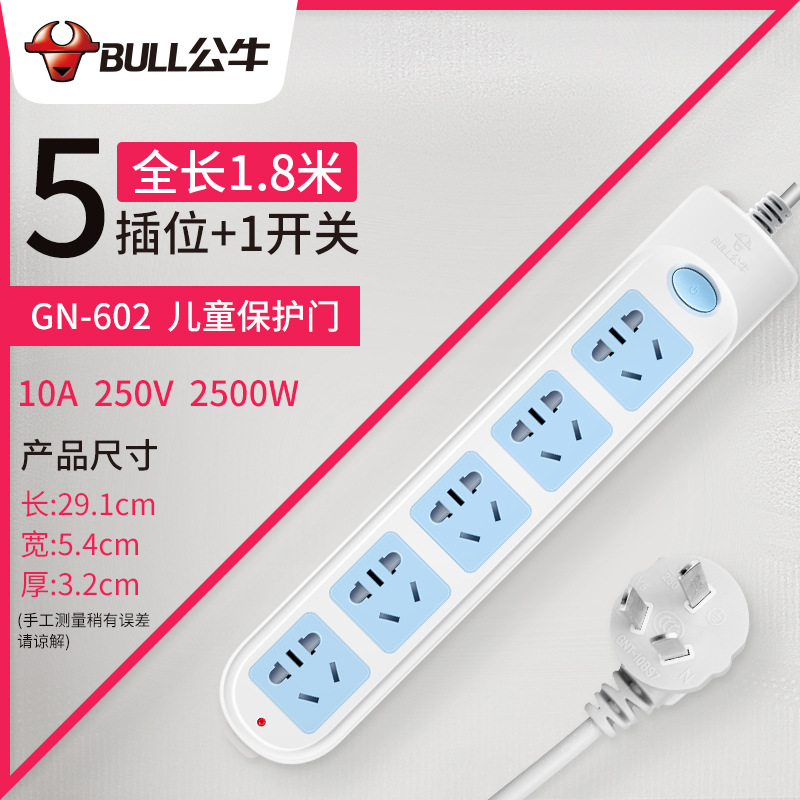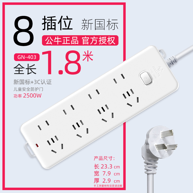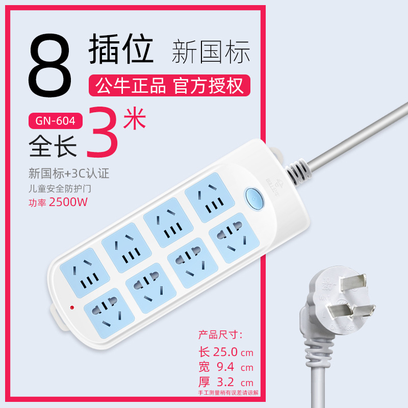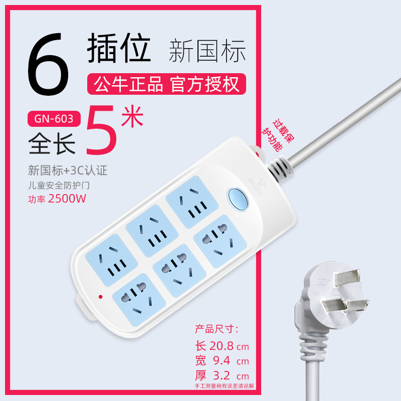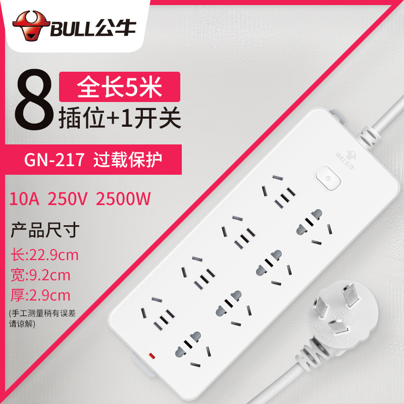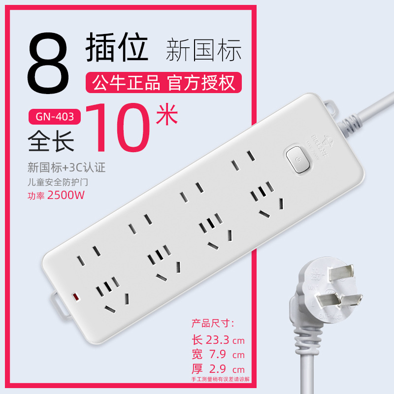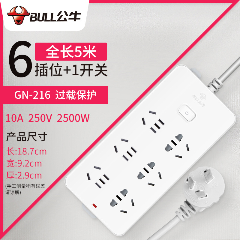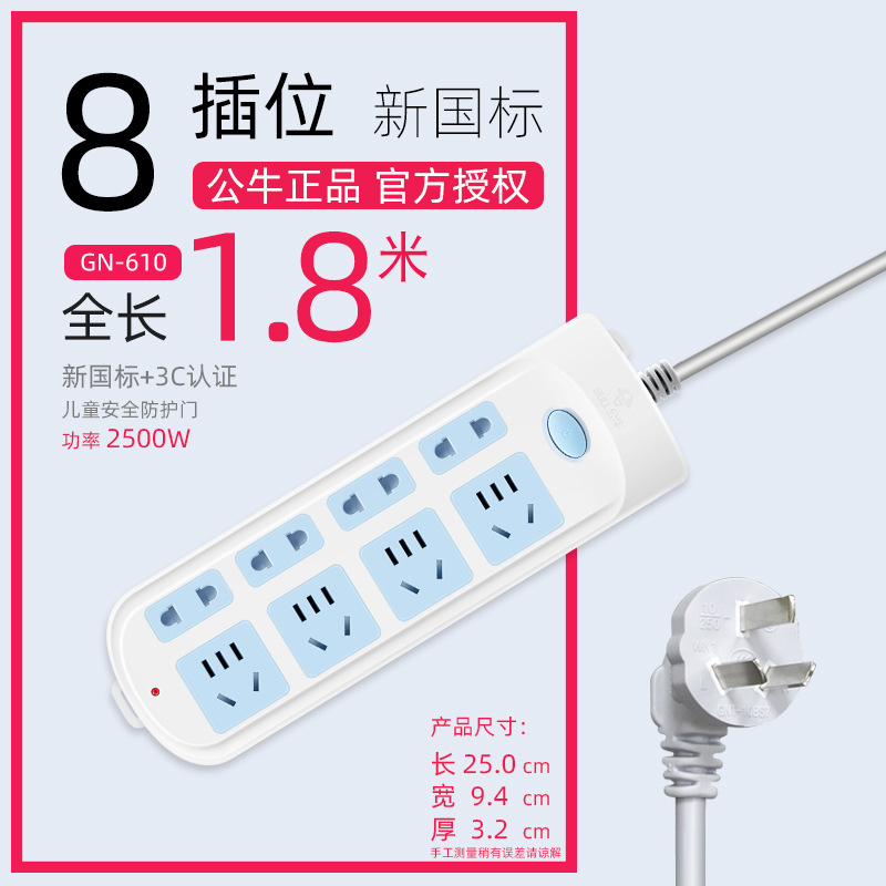 公牛插座面板多孔插排插长线多用功能家用宿舍拖接线板电插