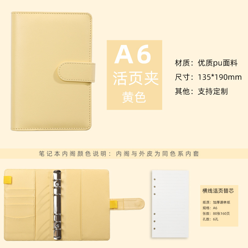 a6活页笔记本子ins马卡龙手账本PU记事本草稿本作业本日记本pu批