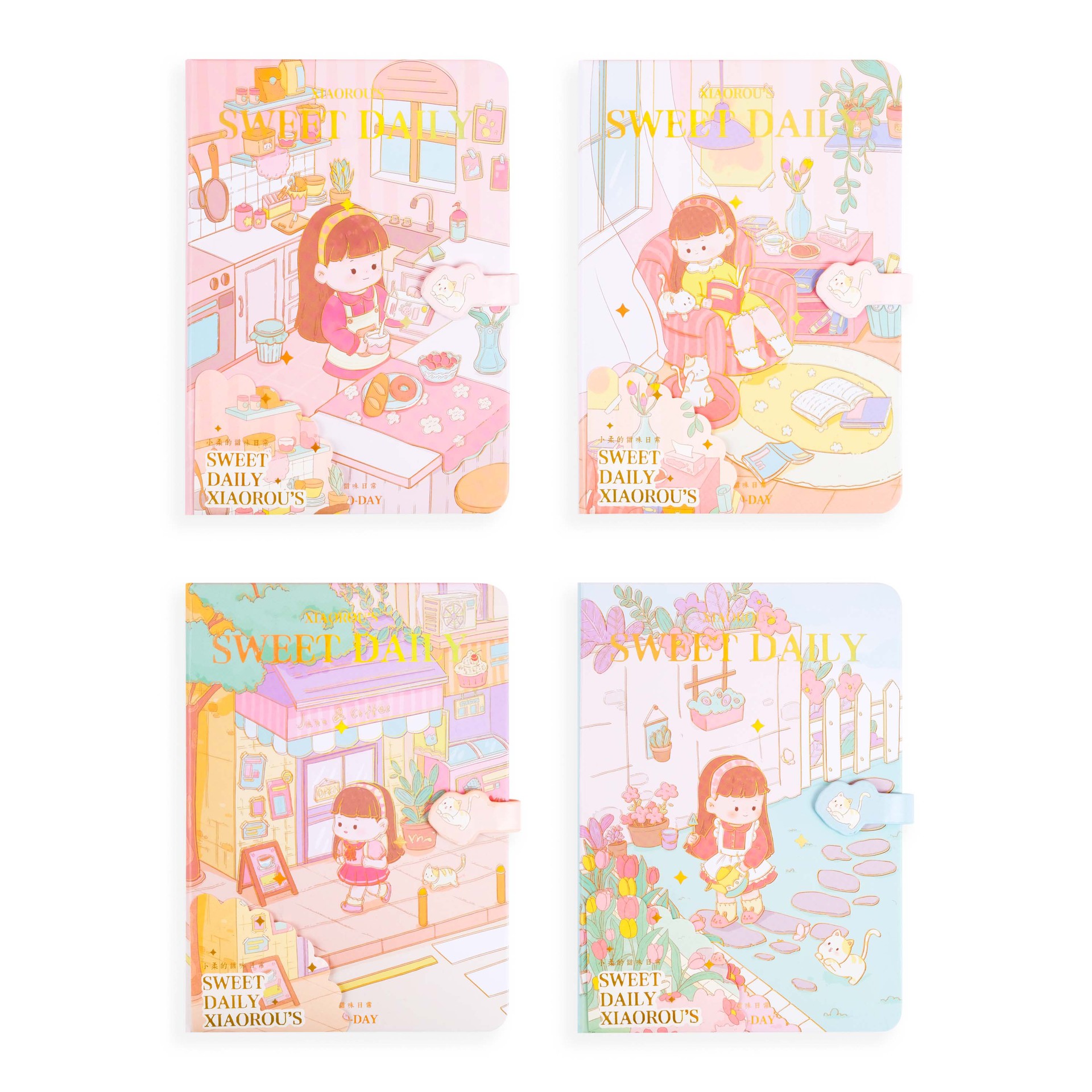 批发 32k磁扣本子学生笔记本可爱手帐本卡通手账本简约记事本日记