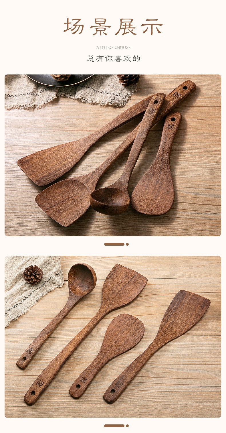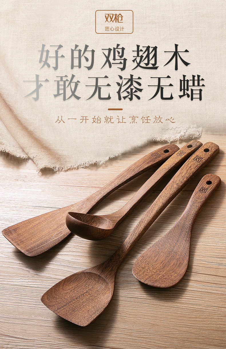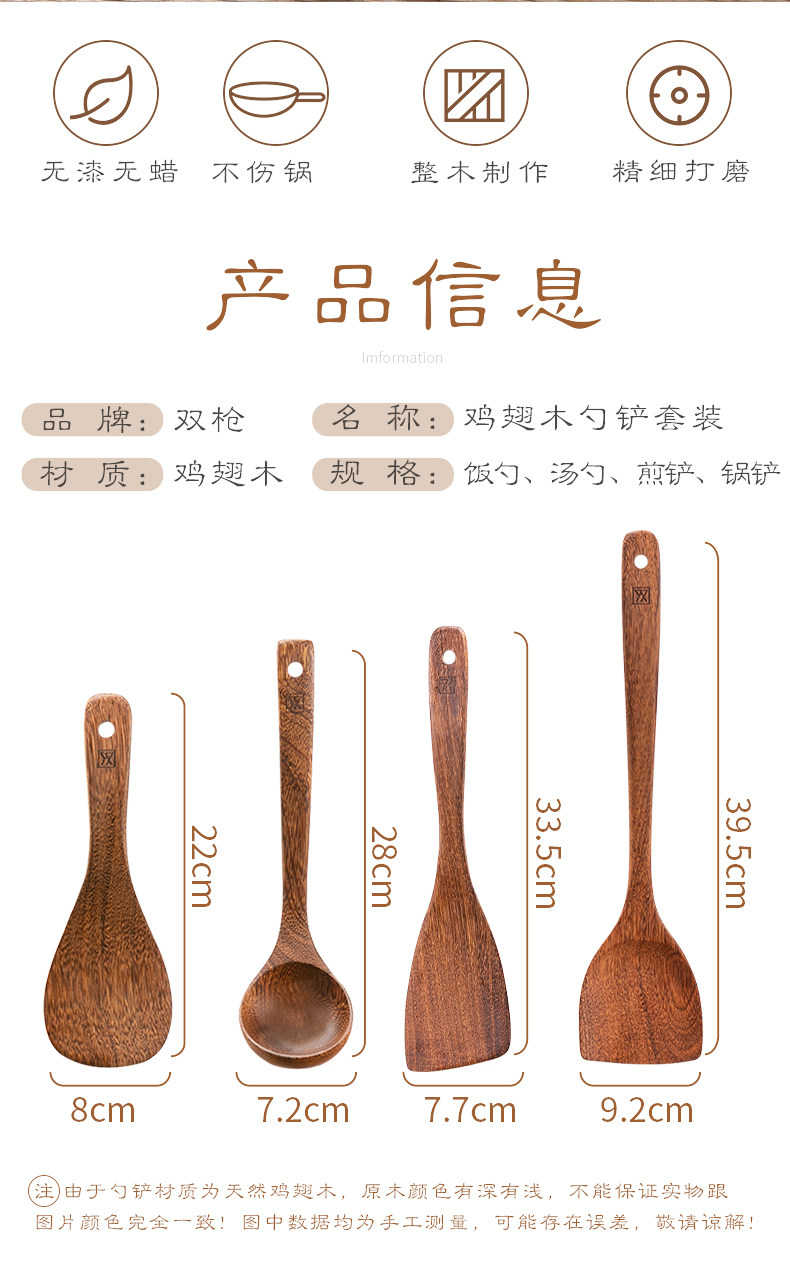双枪木勺铲家用炒菜锅铲子不粘锅专用木质加厚汤勺鸡翅木厨具套装