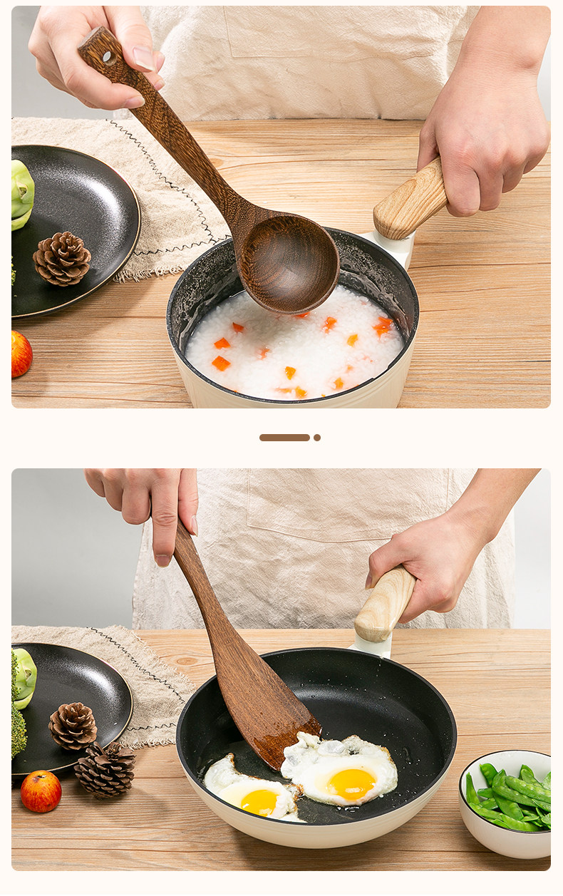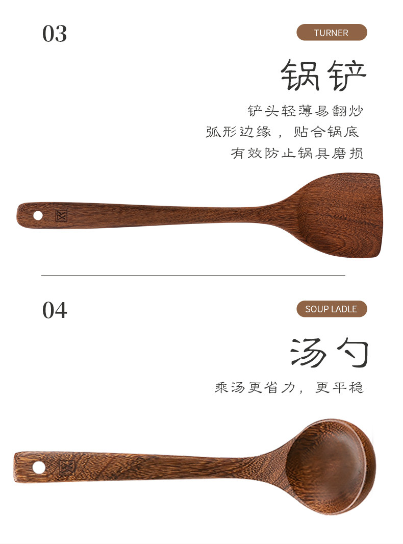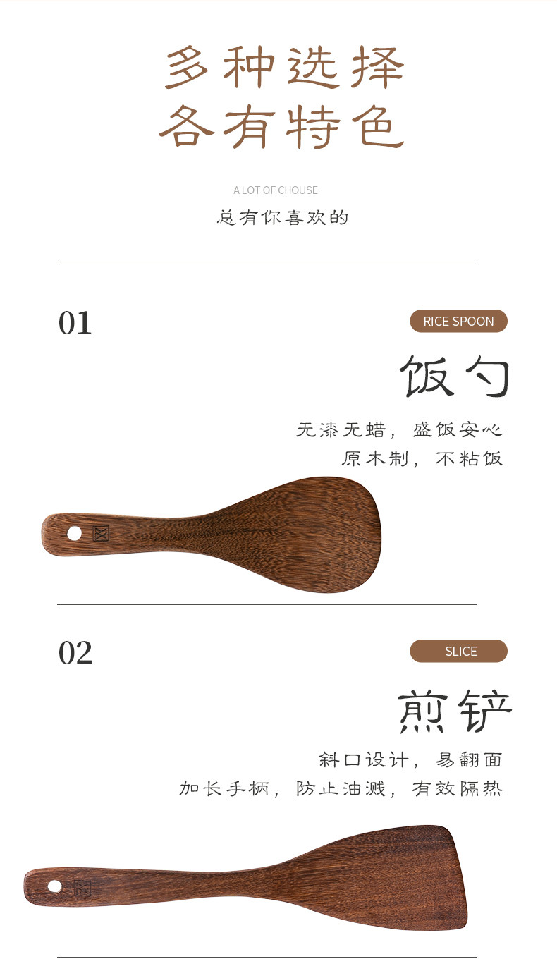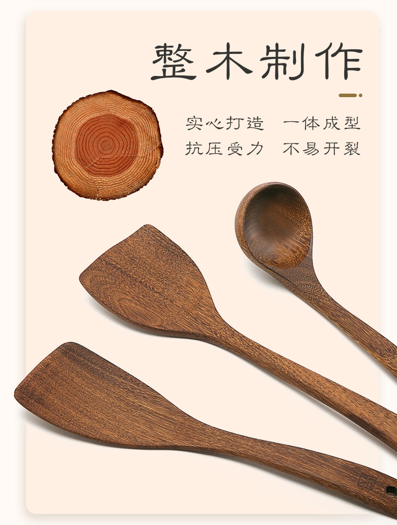 双枪木勺铲家用炒菜锅铲子不粘锅专用木质加厚汤勺鸡翅木厨具套装