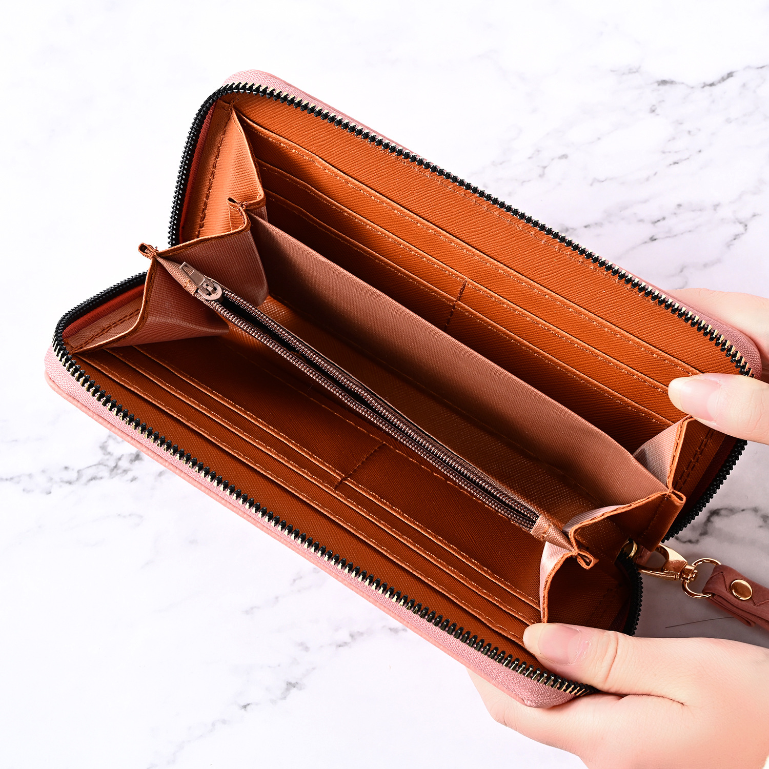 韩版时尚简约单拉链手拿钱包女士长款大容量钱夹手机小包现货批发