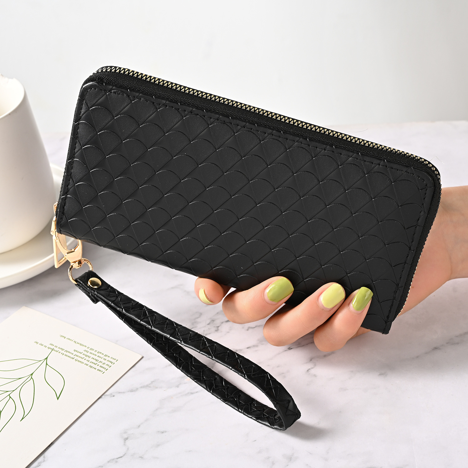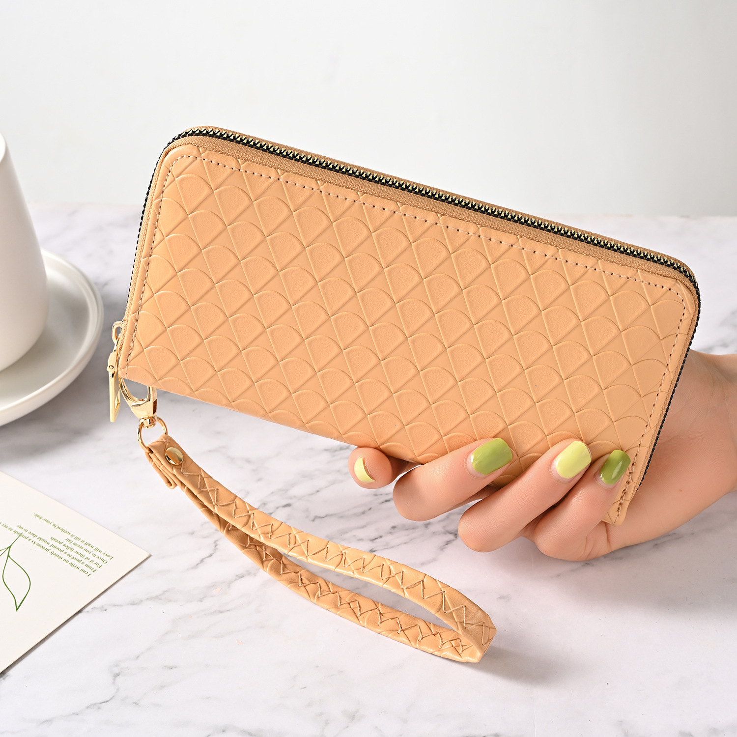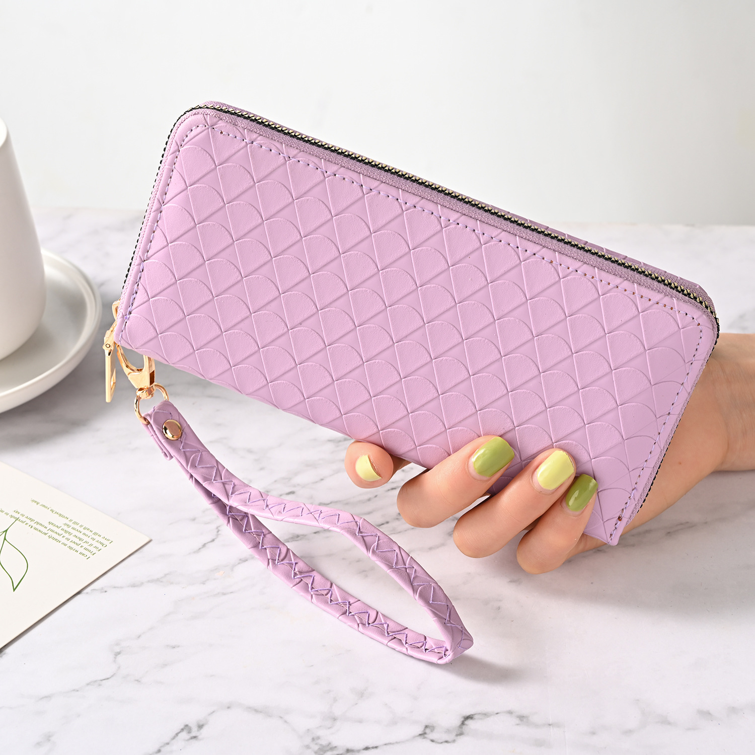 新款女士钱包长款时尚单拉链大容量手拿包钱夹手机包鱼鳞印花卡包