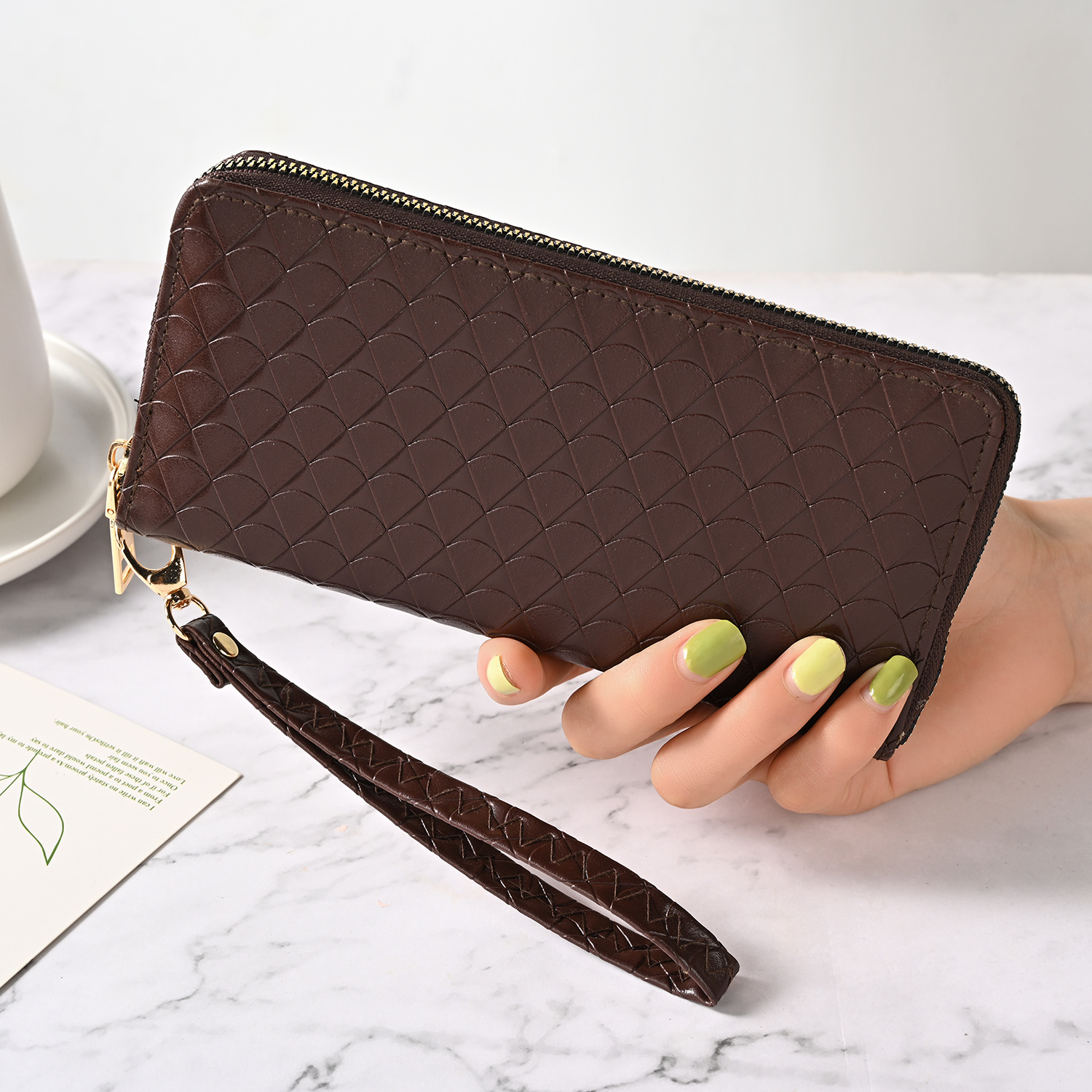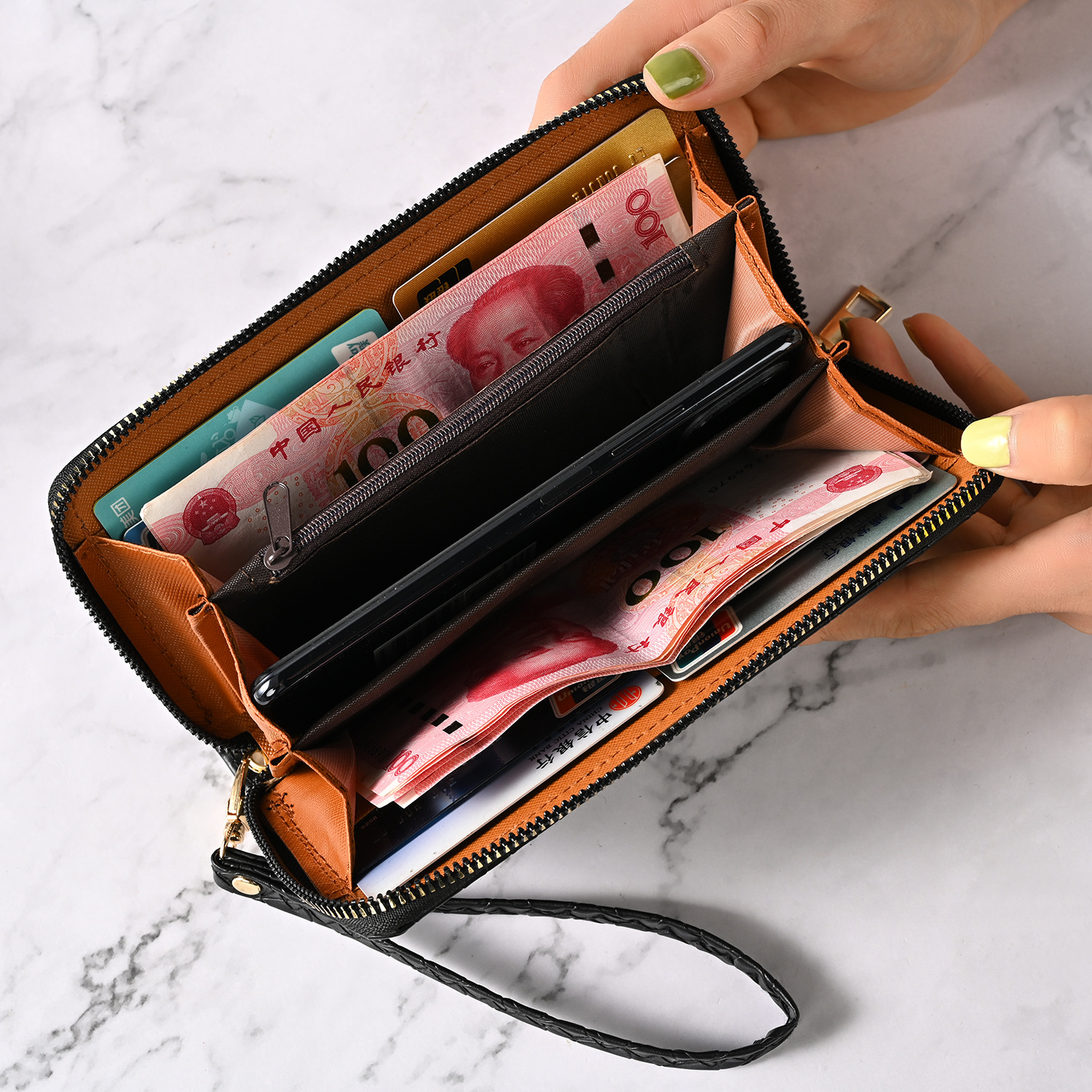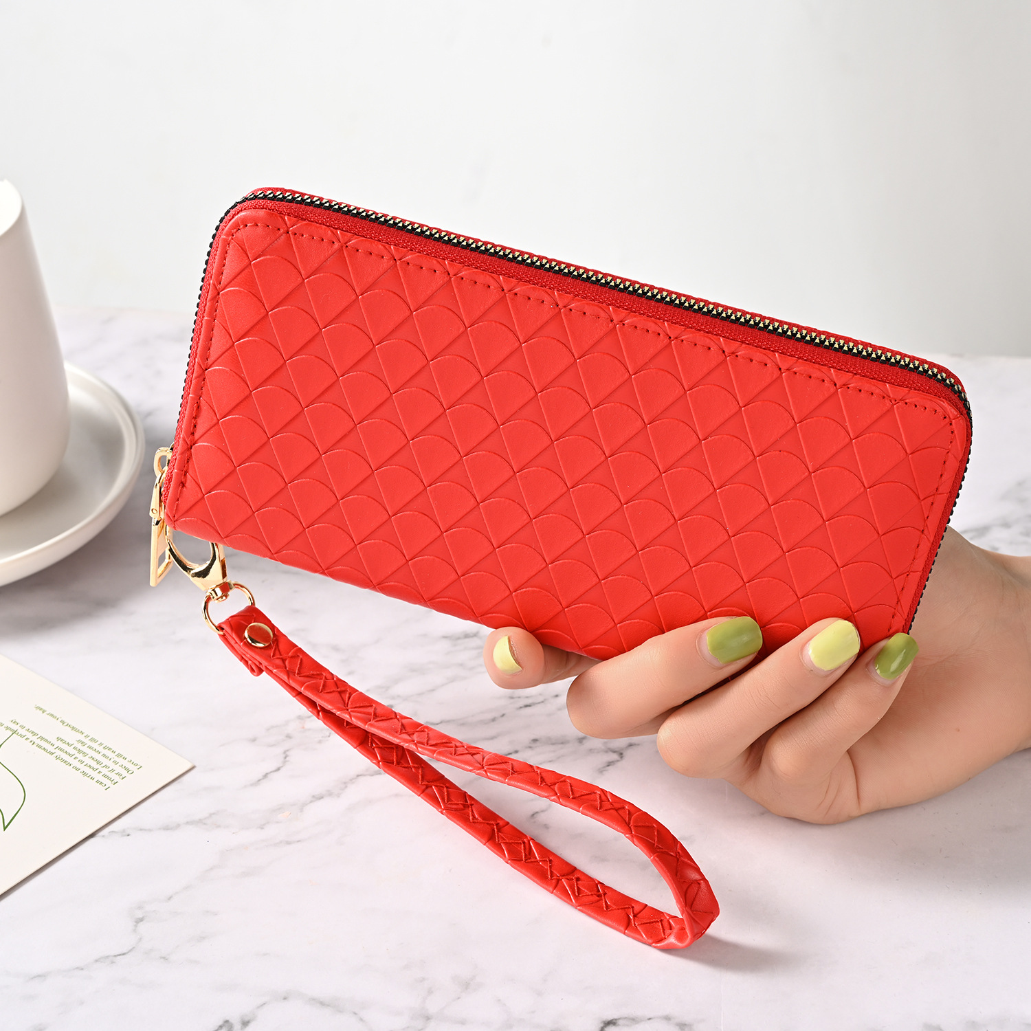 新款女士钱包长款时尚单拉链大容量手拿包钱夹手机包鱼鳞印花卡包