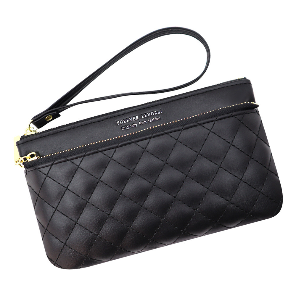 跨境新款女士手拿包双拉链长款菱格钱包简约时尚大容量零钱包现货