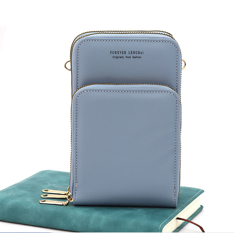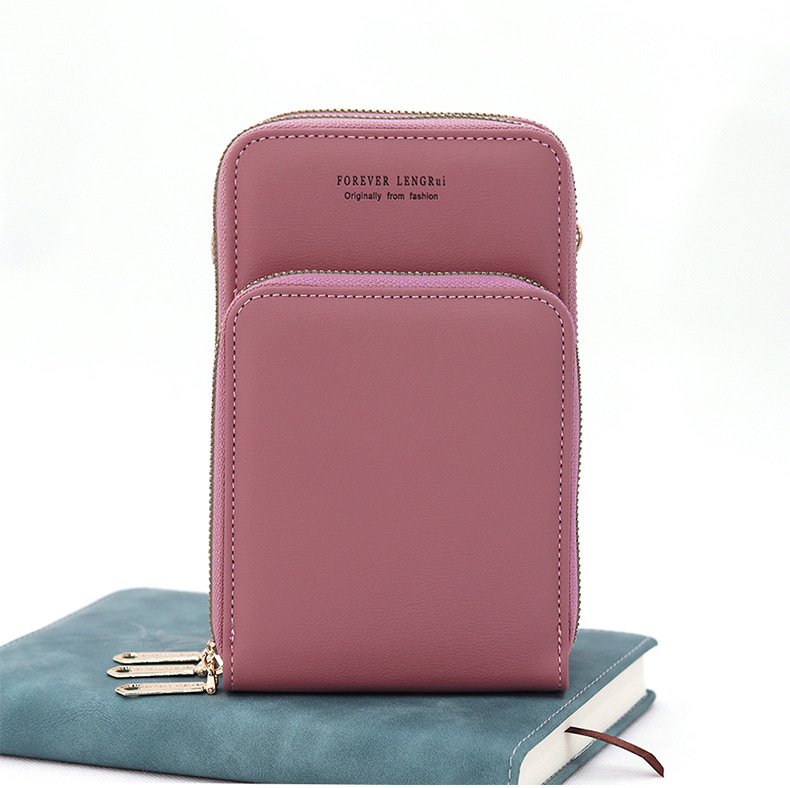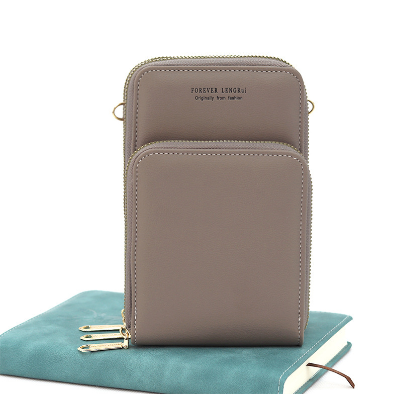 大容量手机包新款纯色斜挎包三拉链PU皮时尚单肩包迷你小包包现货