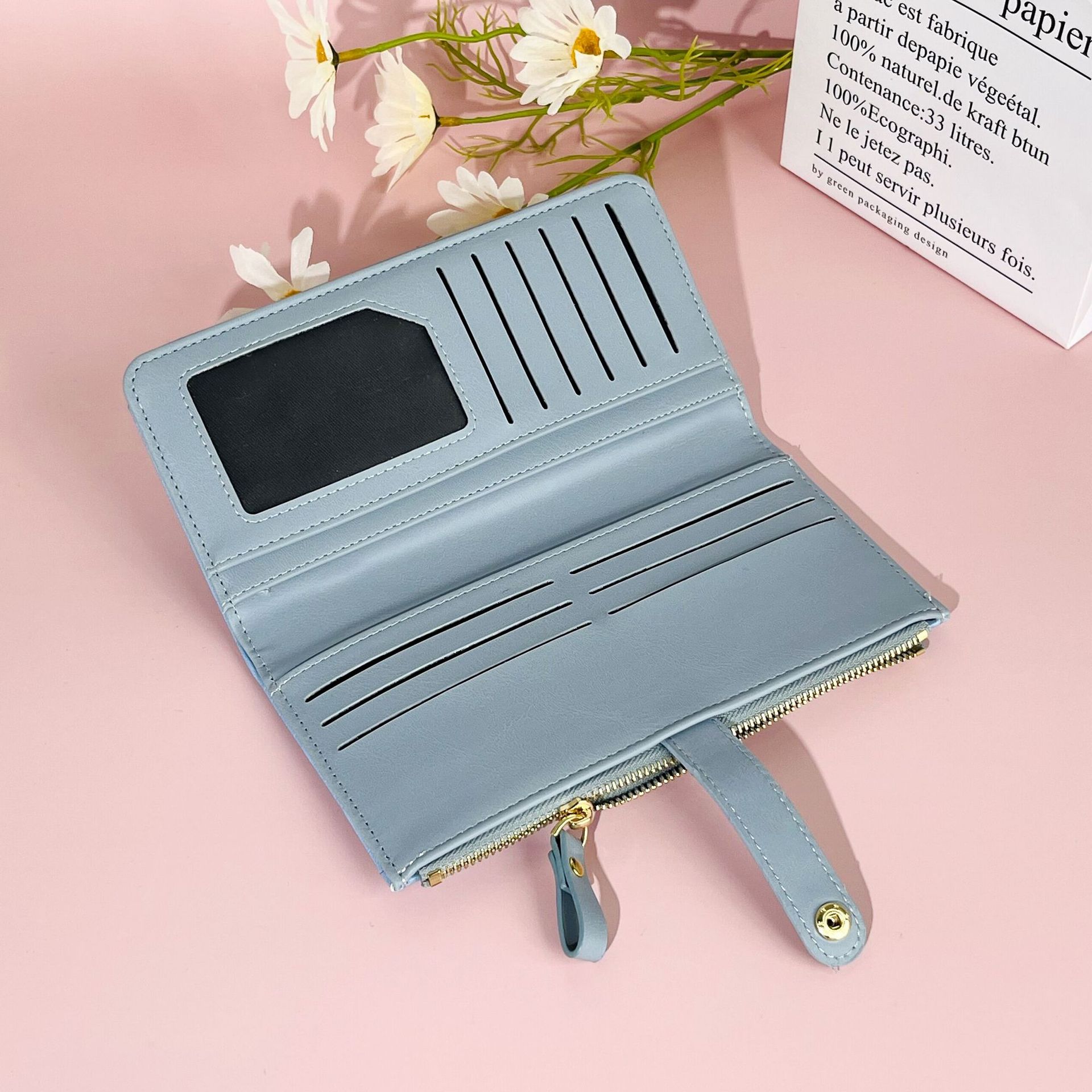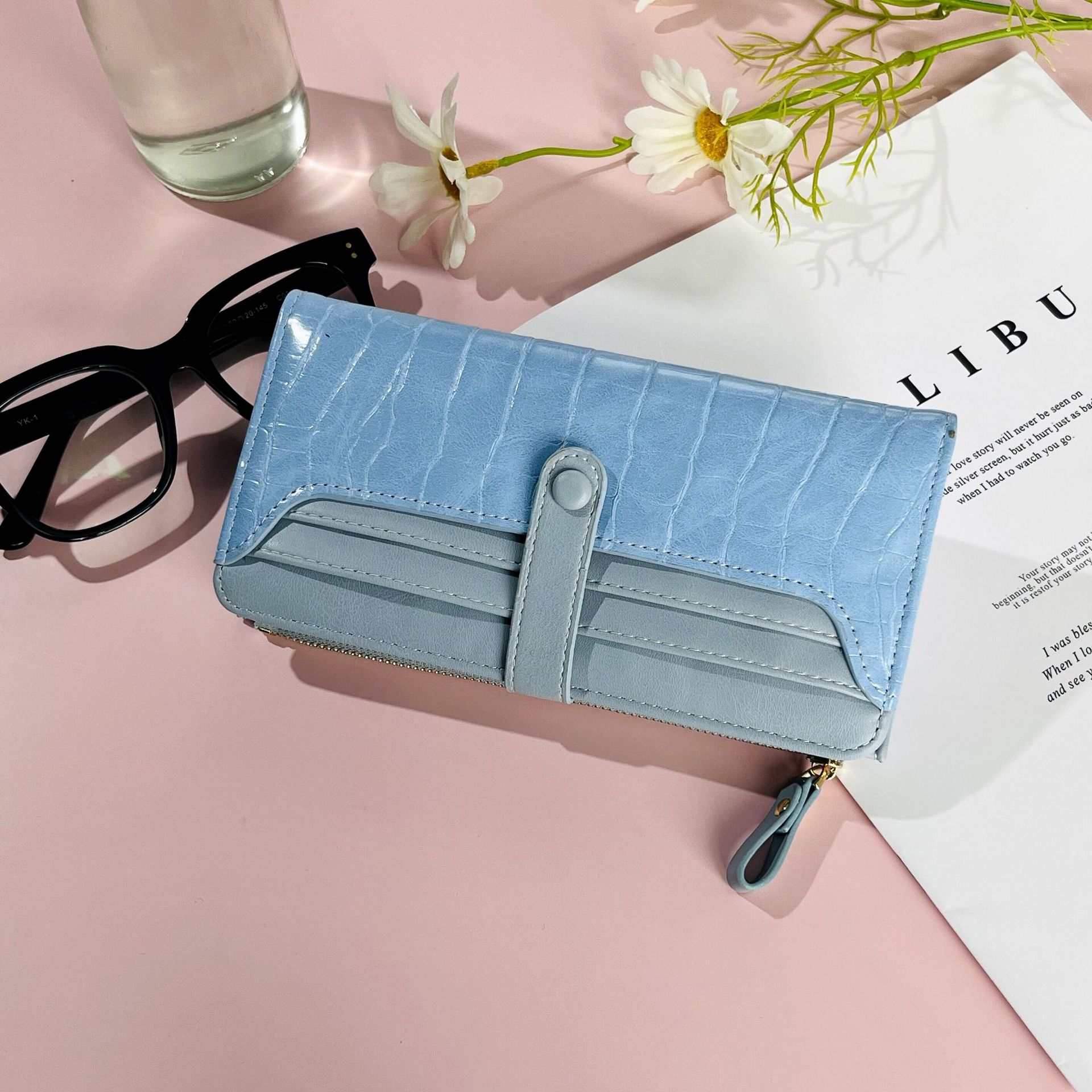 2023新款女士手拿包中长款石头纹搭扣钱包多卡位大容量卡包零钱包