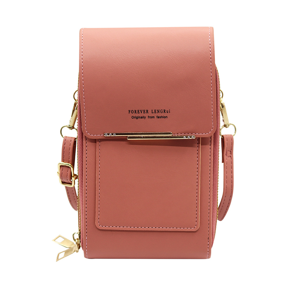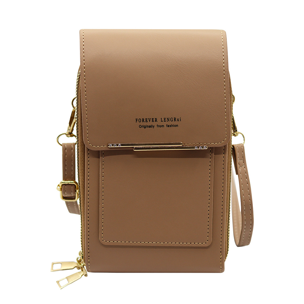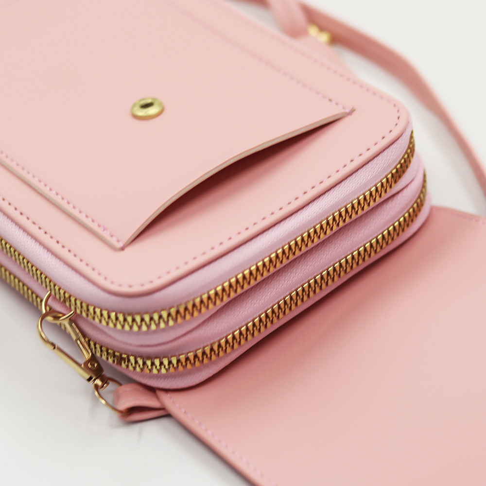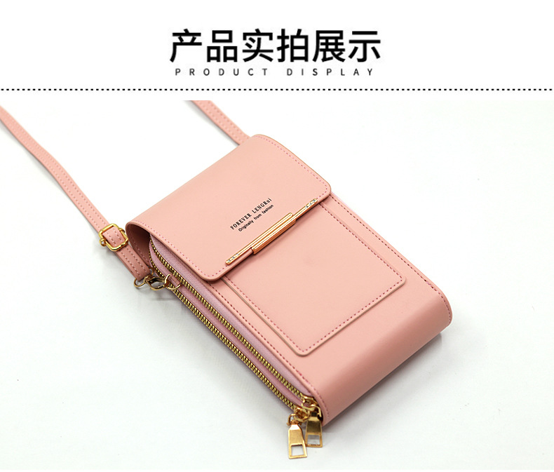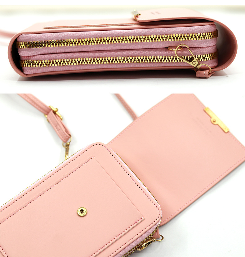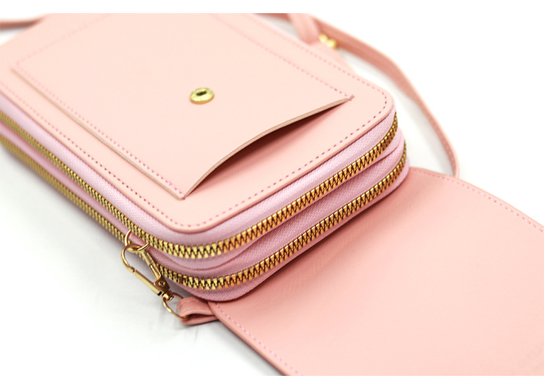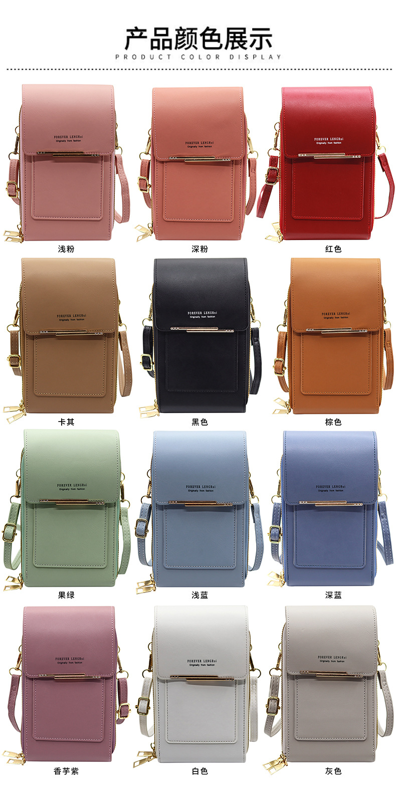 新款时尚百搭PU手机包女士纯色潮流斜挎包多层拉链单肩包现货批发