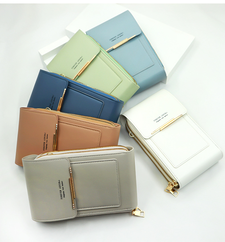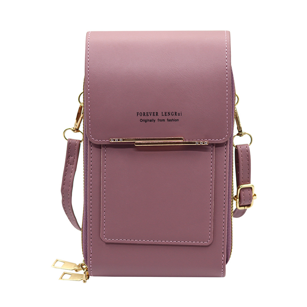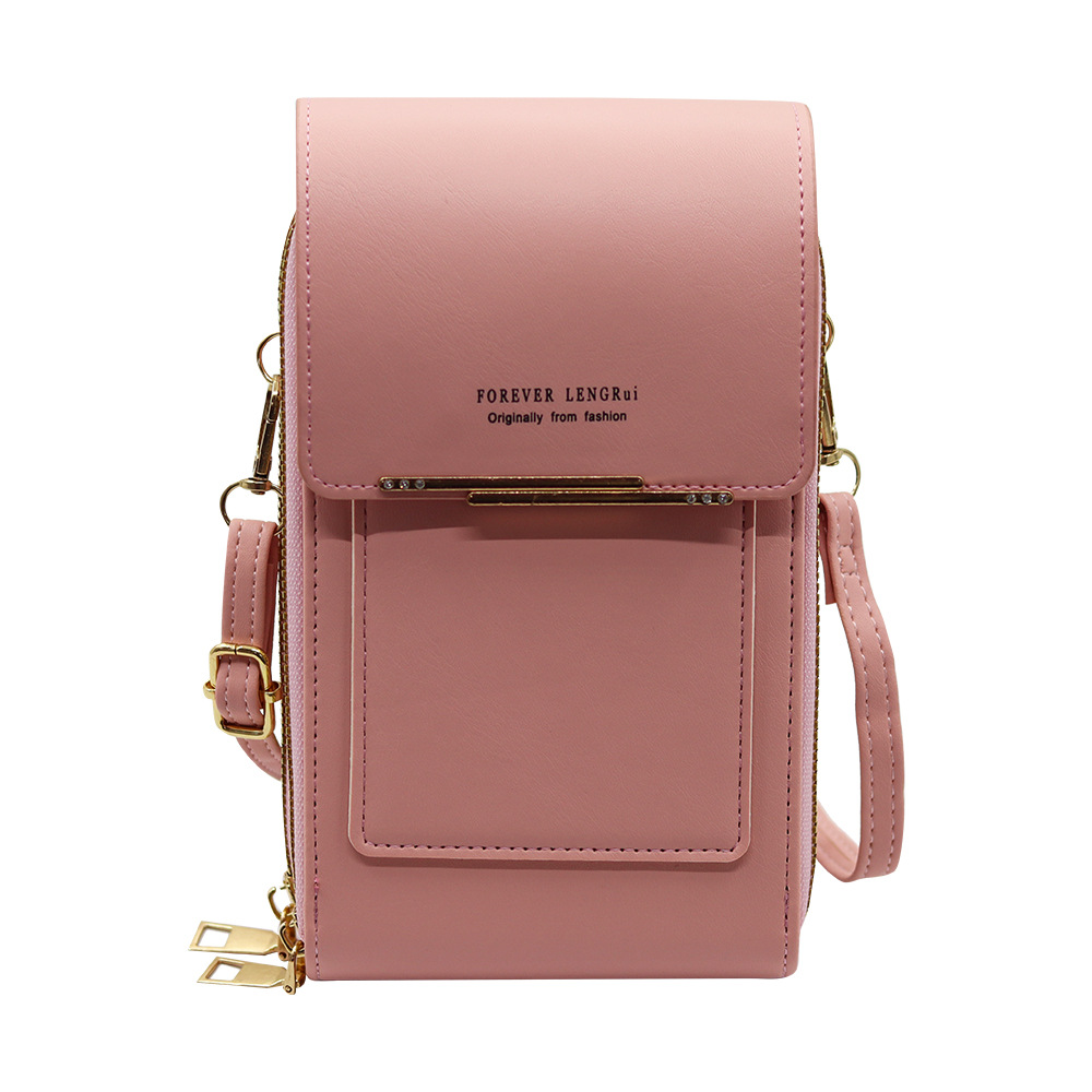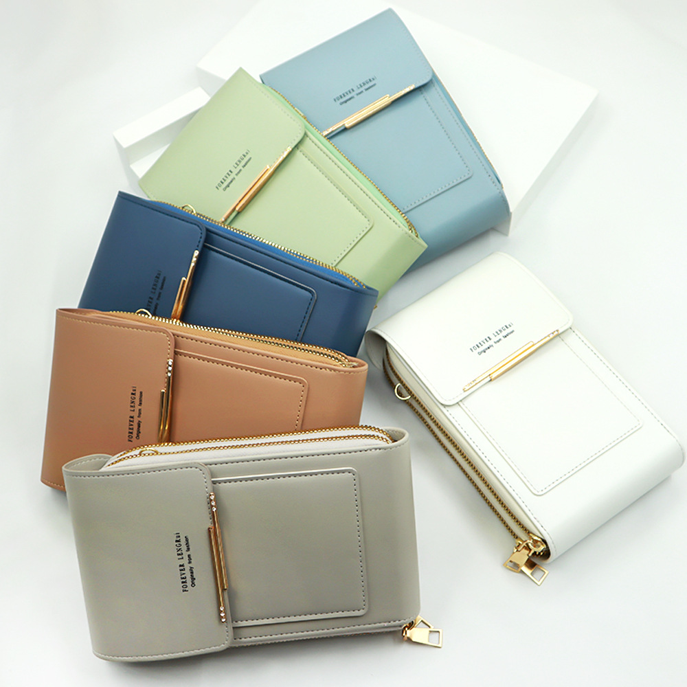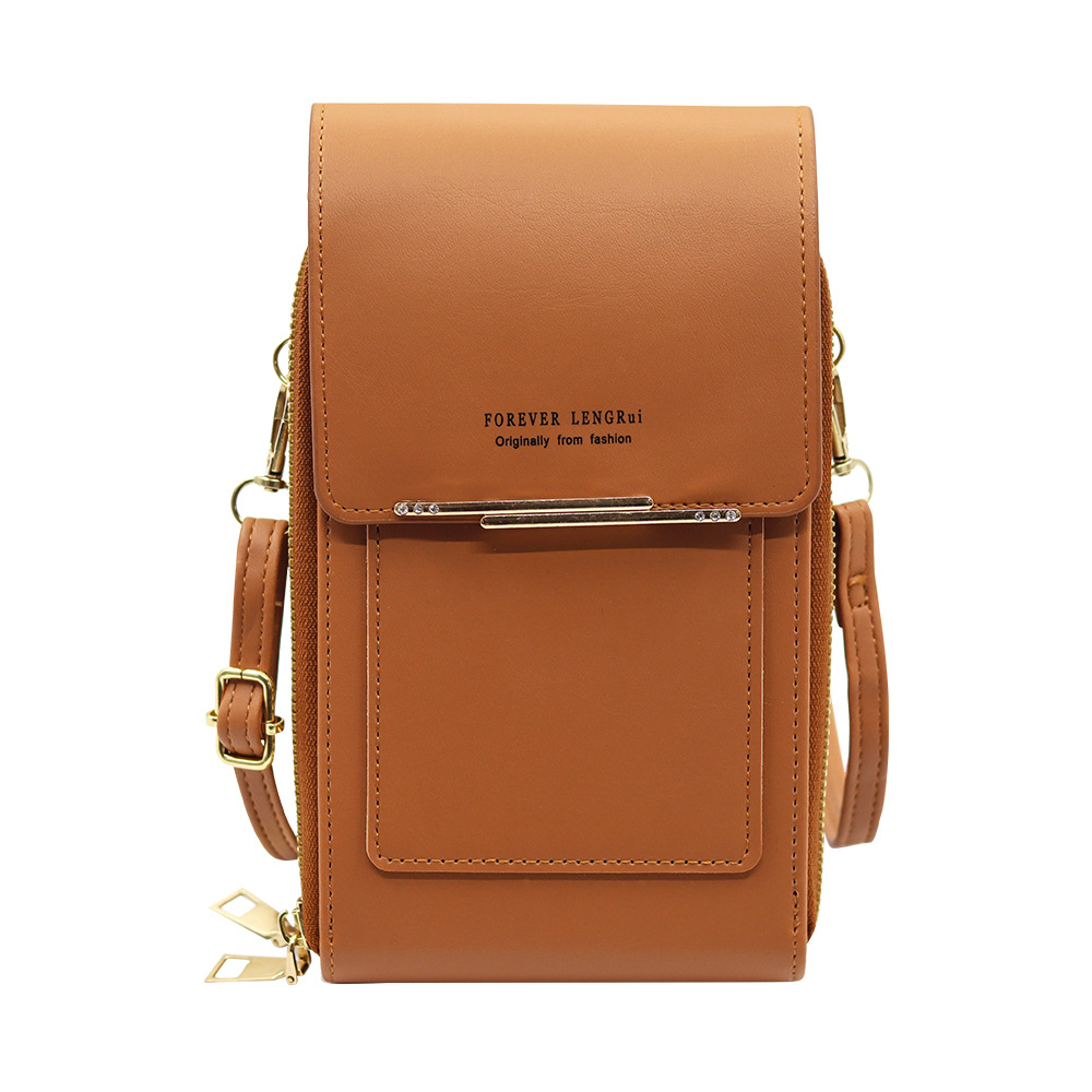 新款时尚百搭PU手机包女士纯色潮流斜挎包多层拉链单肩包现货批发