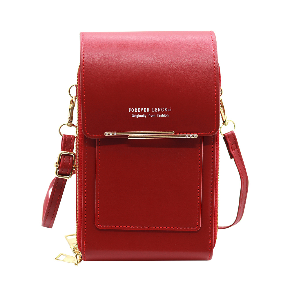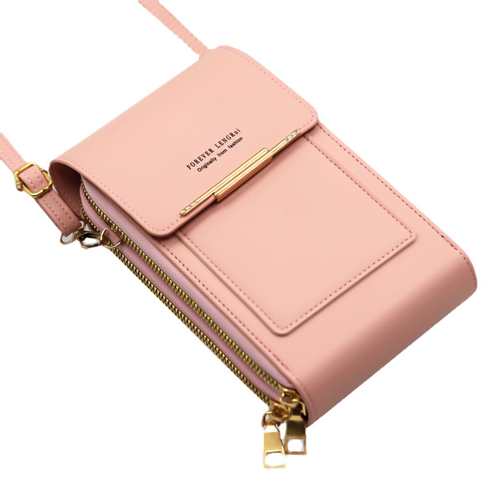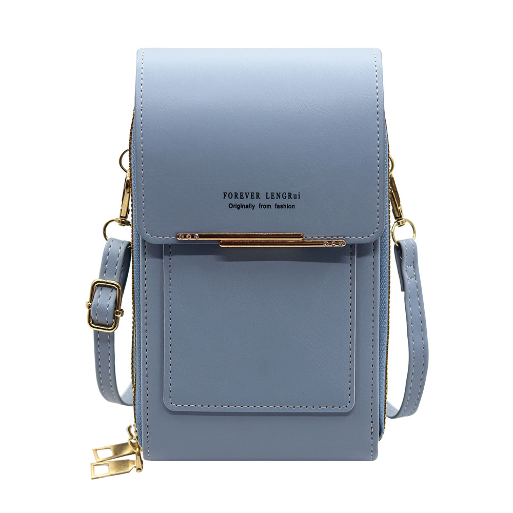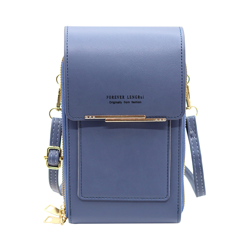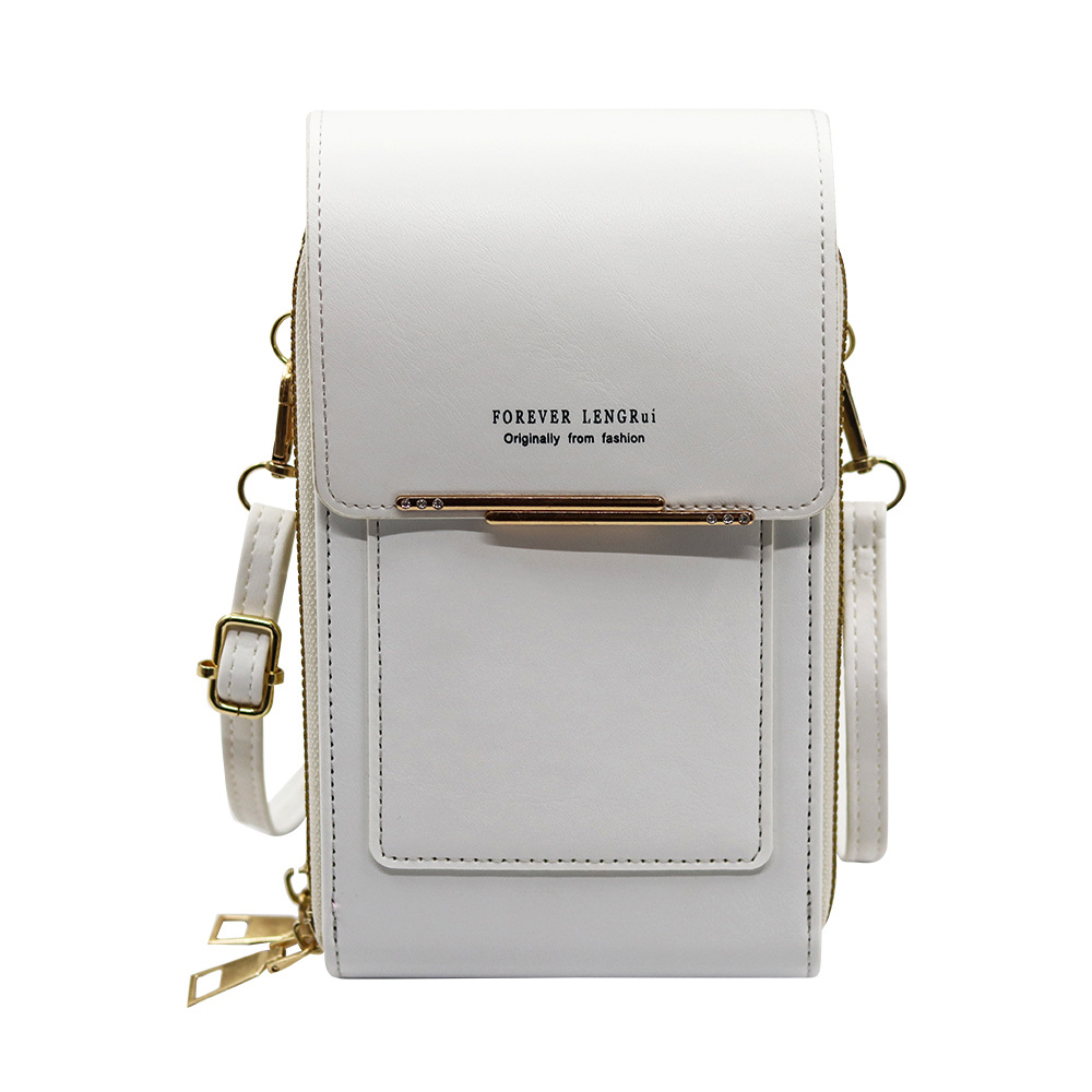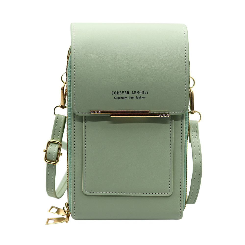 新款时尚百搭PU手机包女士纯色潮流斜挎包多层拉链单肩包现货批发