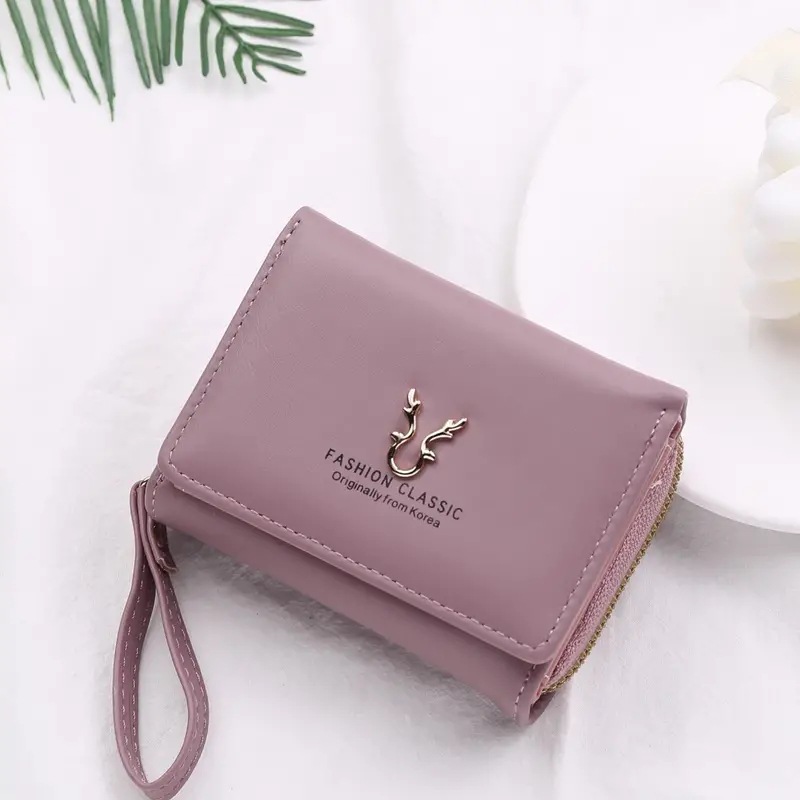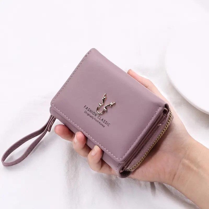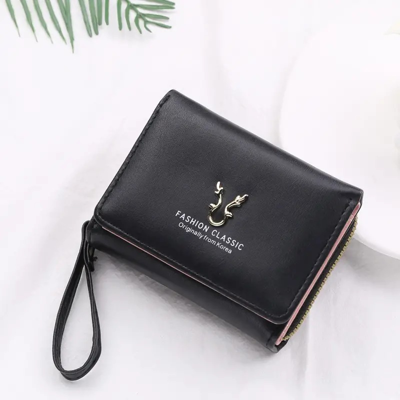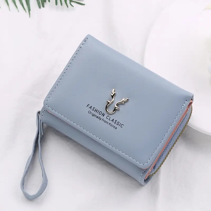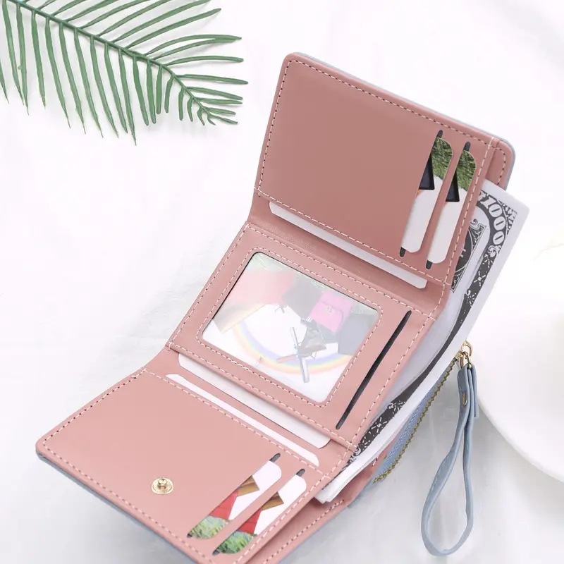2023新款女士钱包短款PU皮拉链零钱包女迷你卡通三折搭扣卡包批发